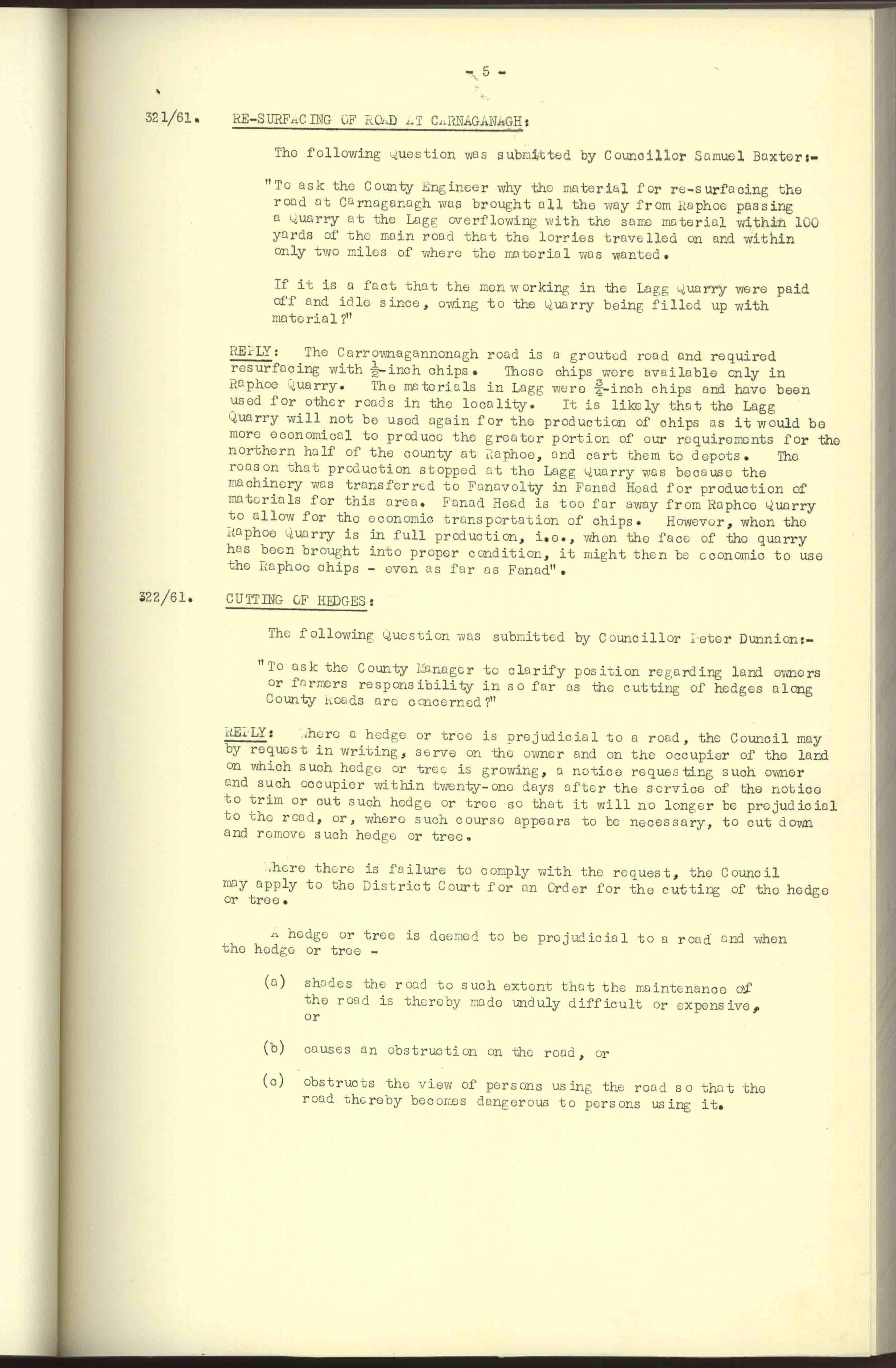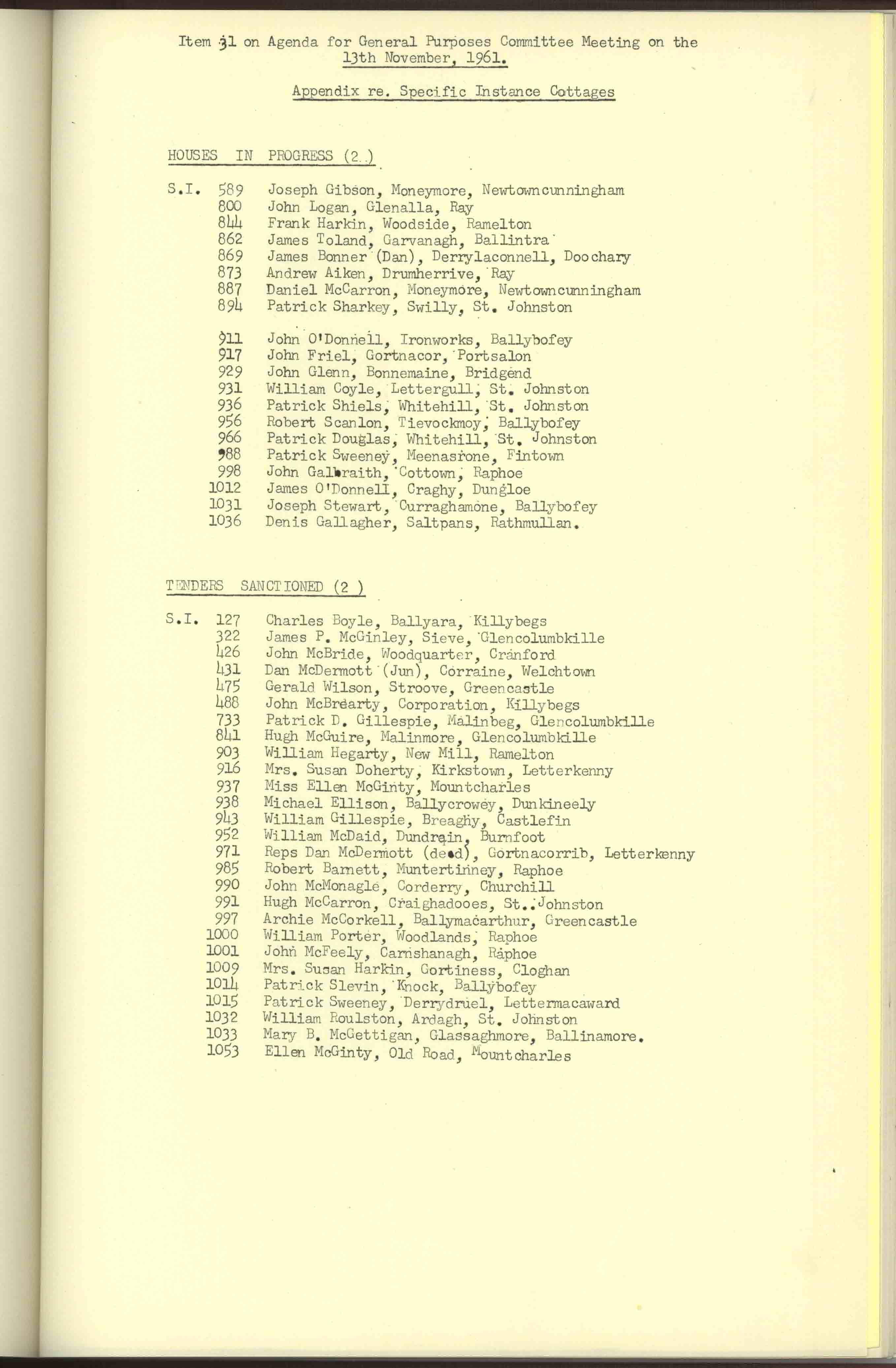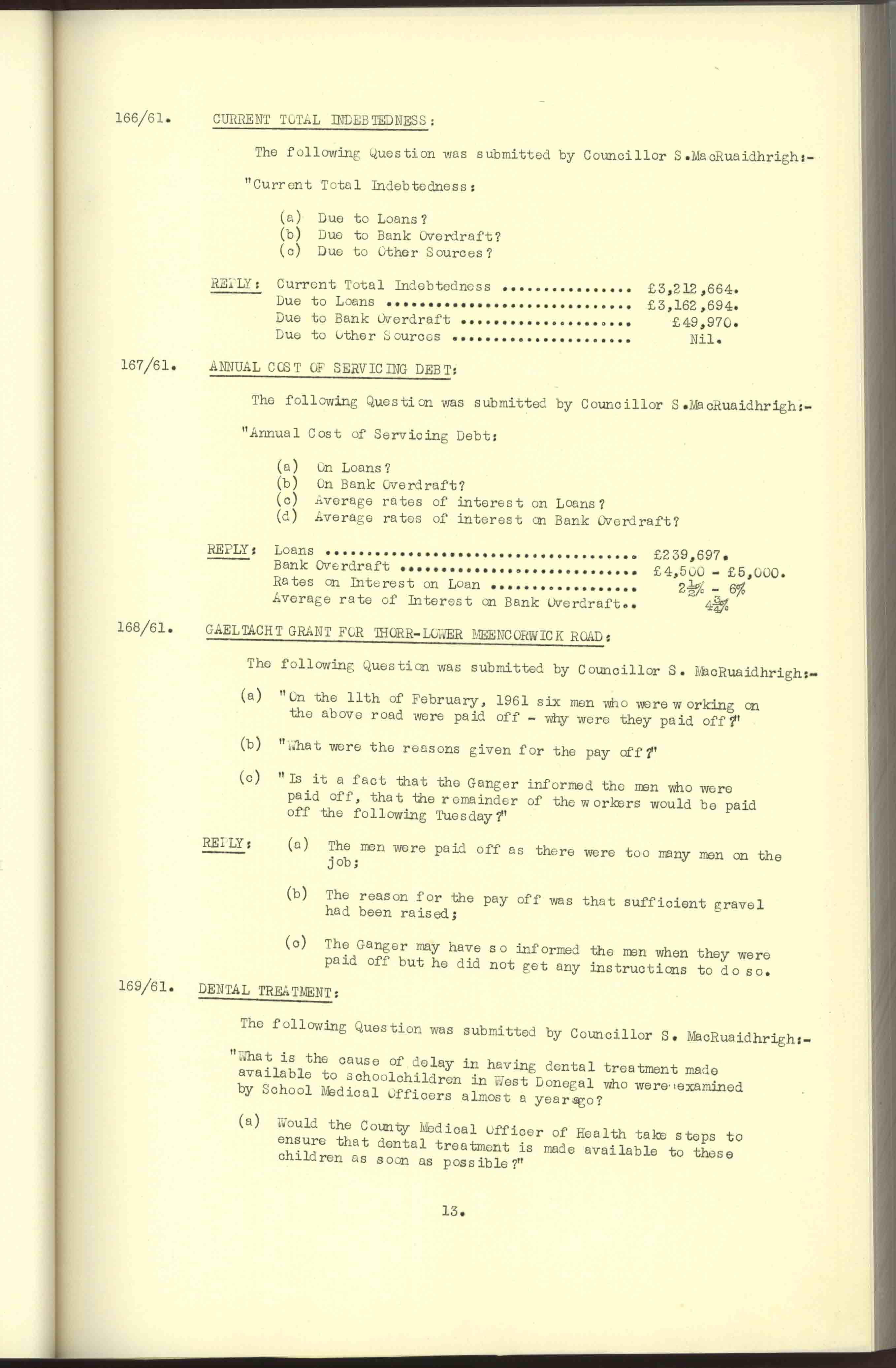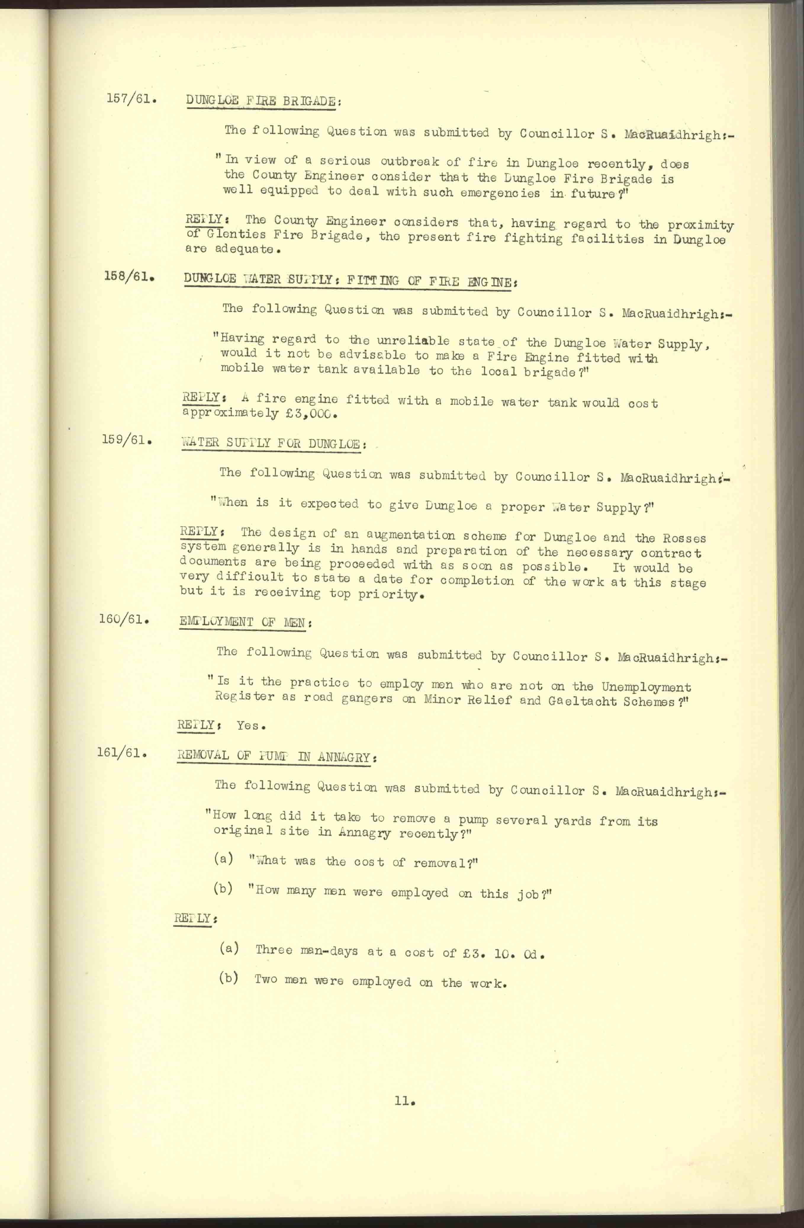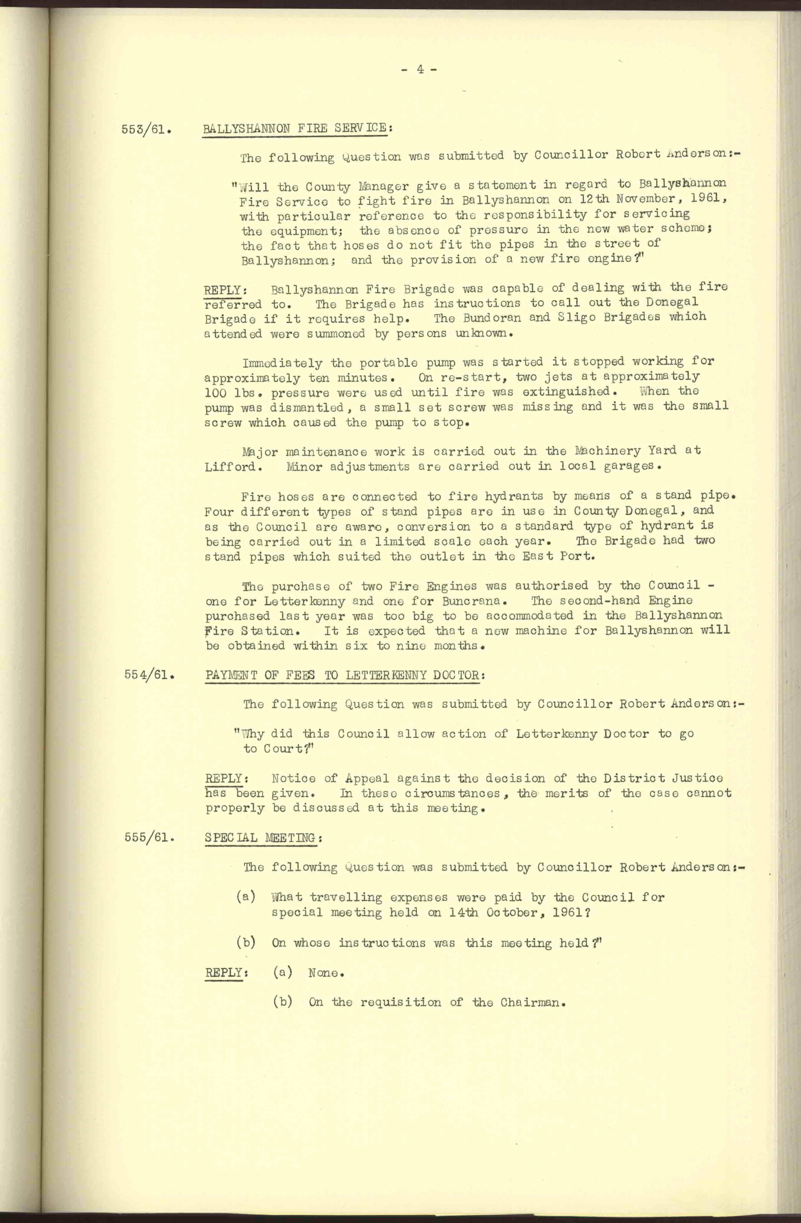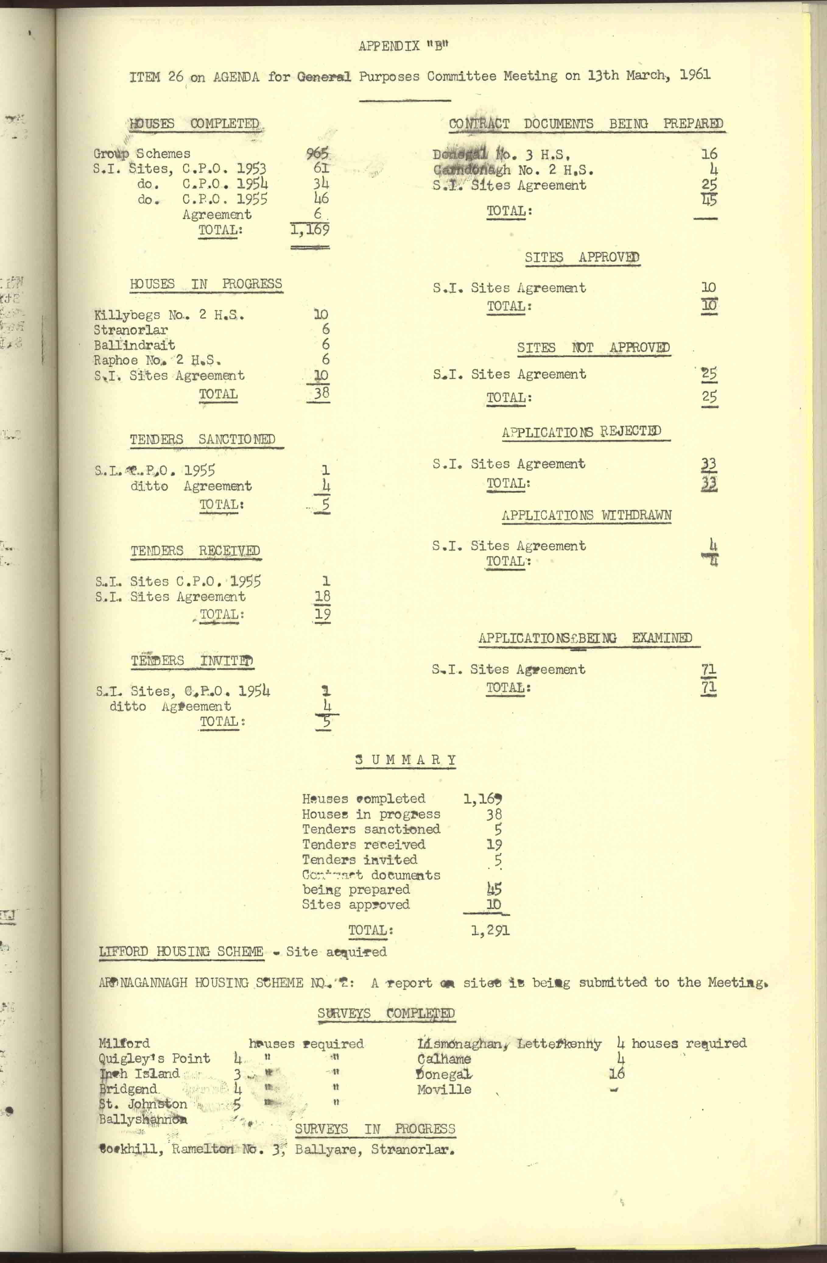 Donegal County Council Minutes, 1961
