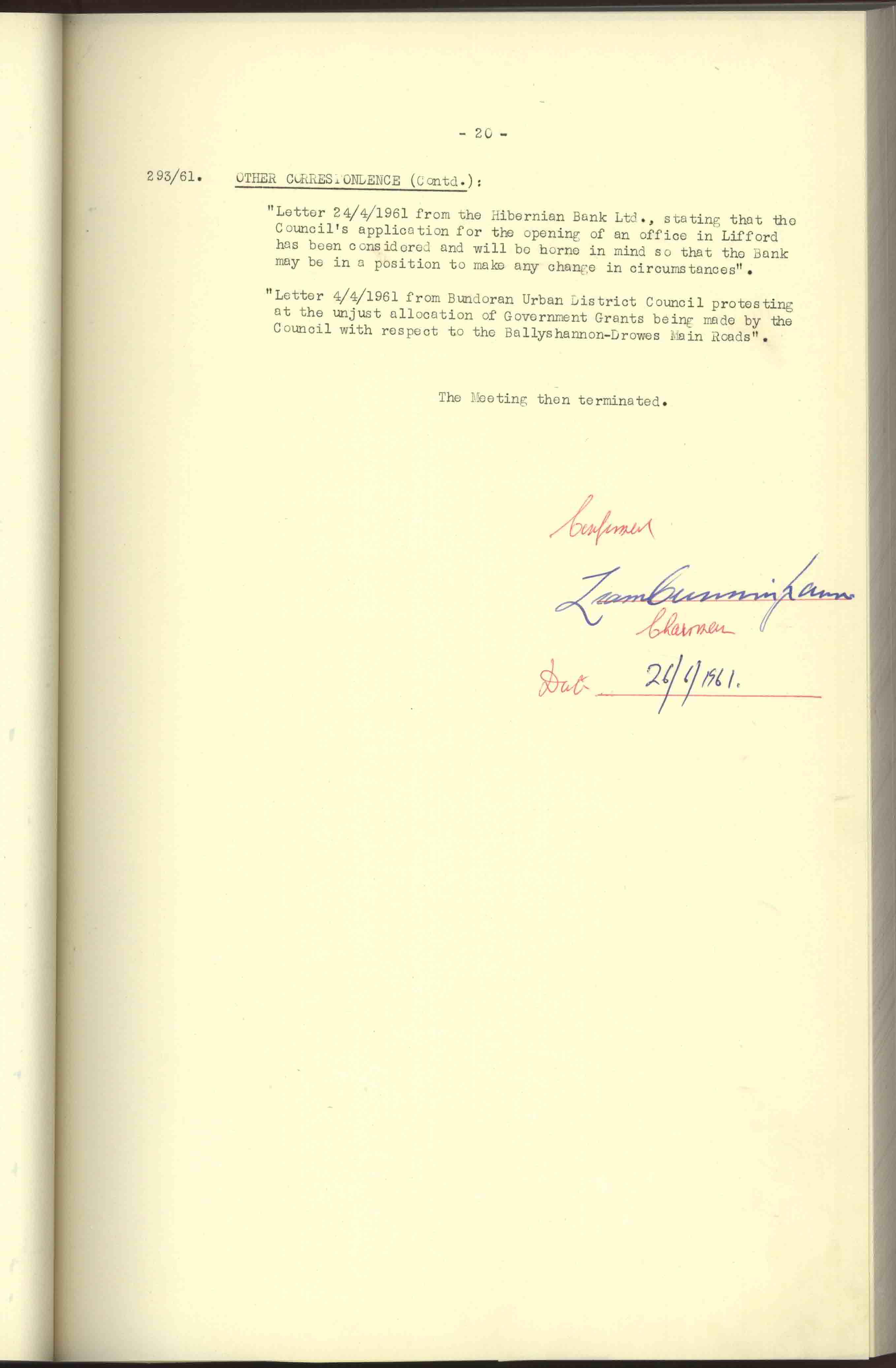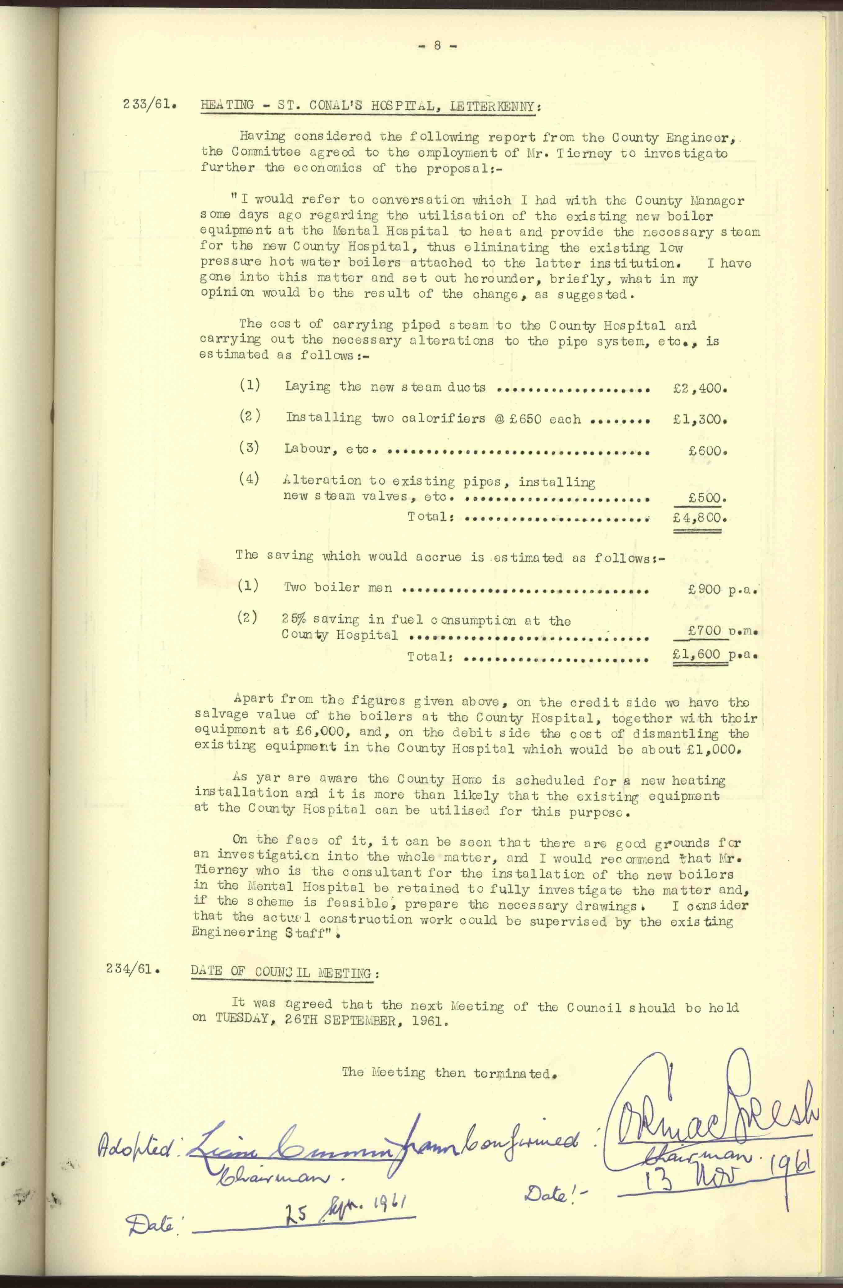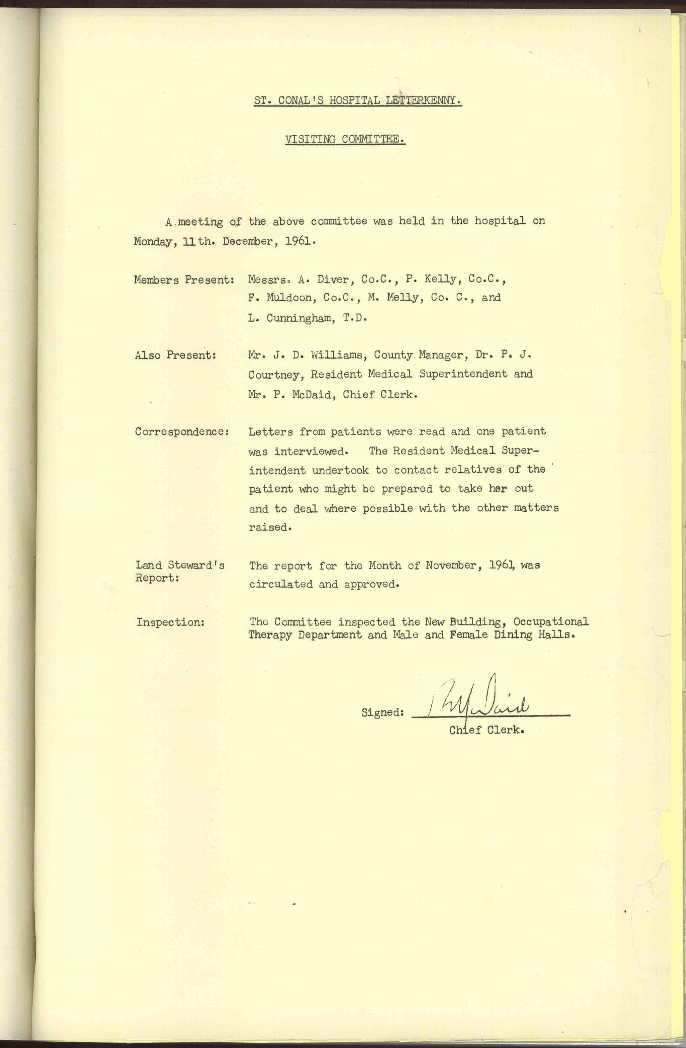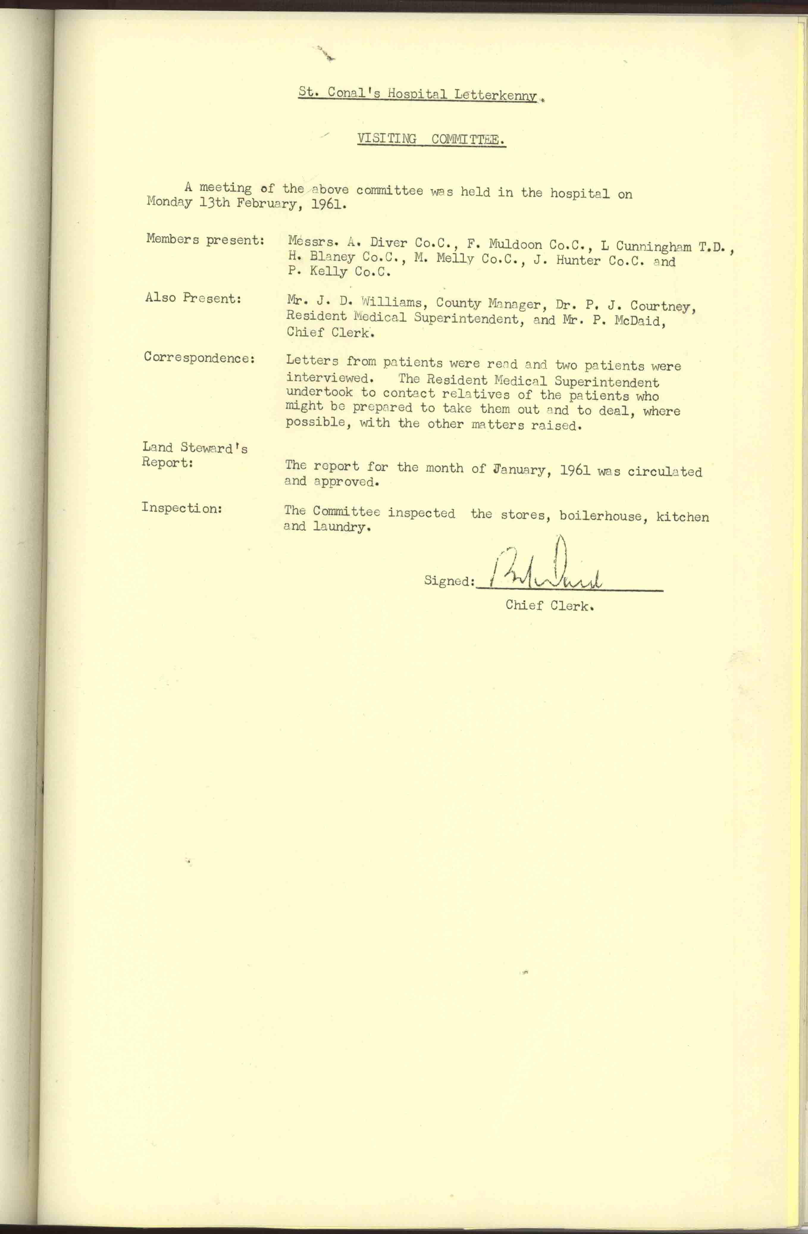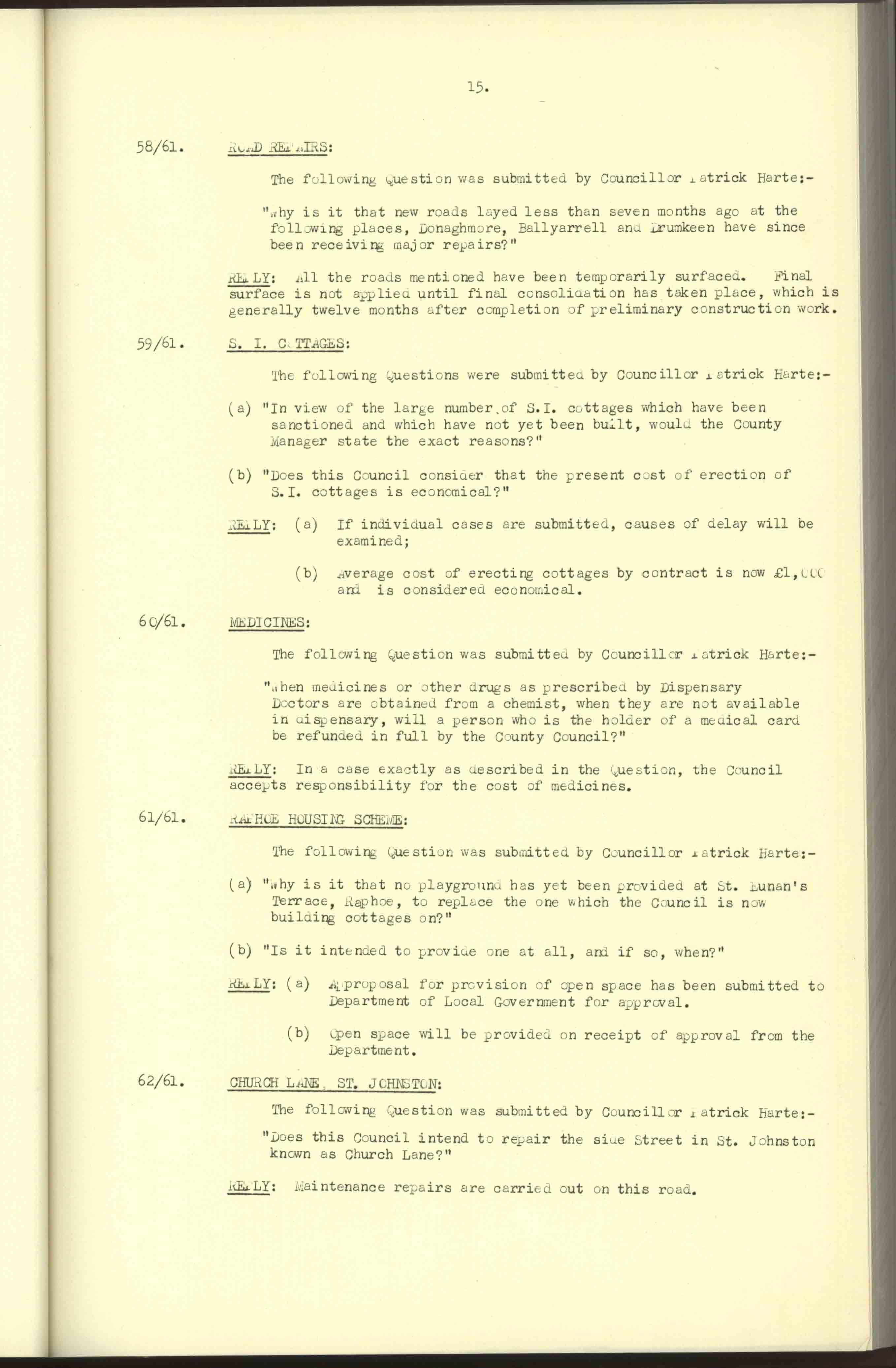Donegal County Council Minutes, 1961