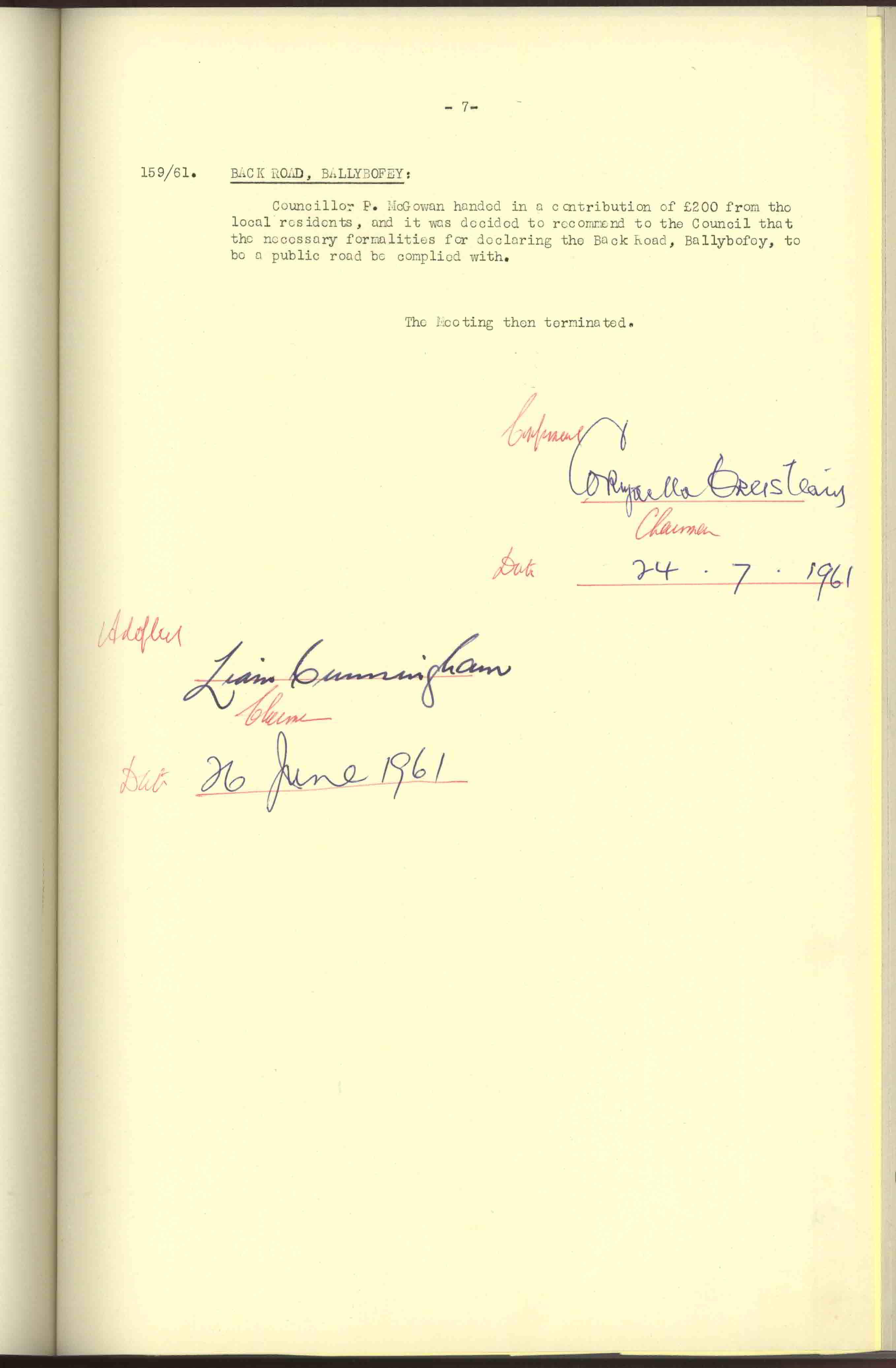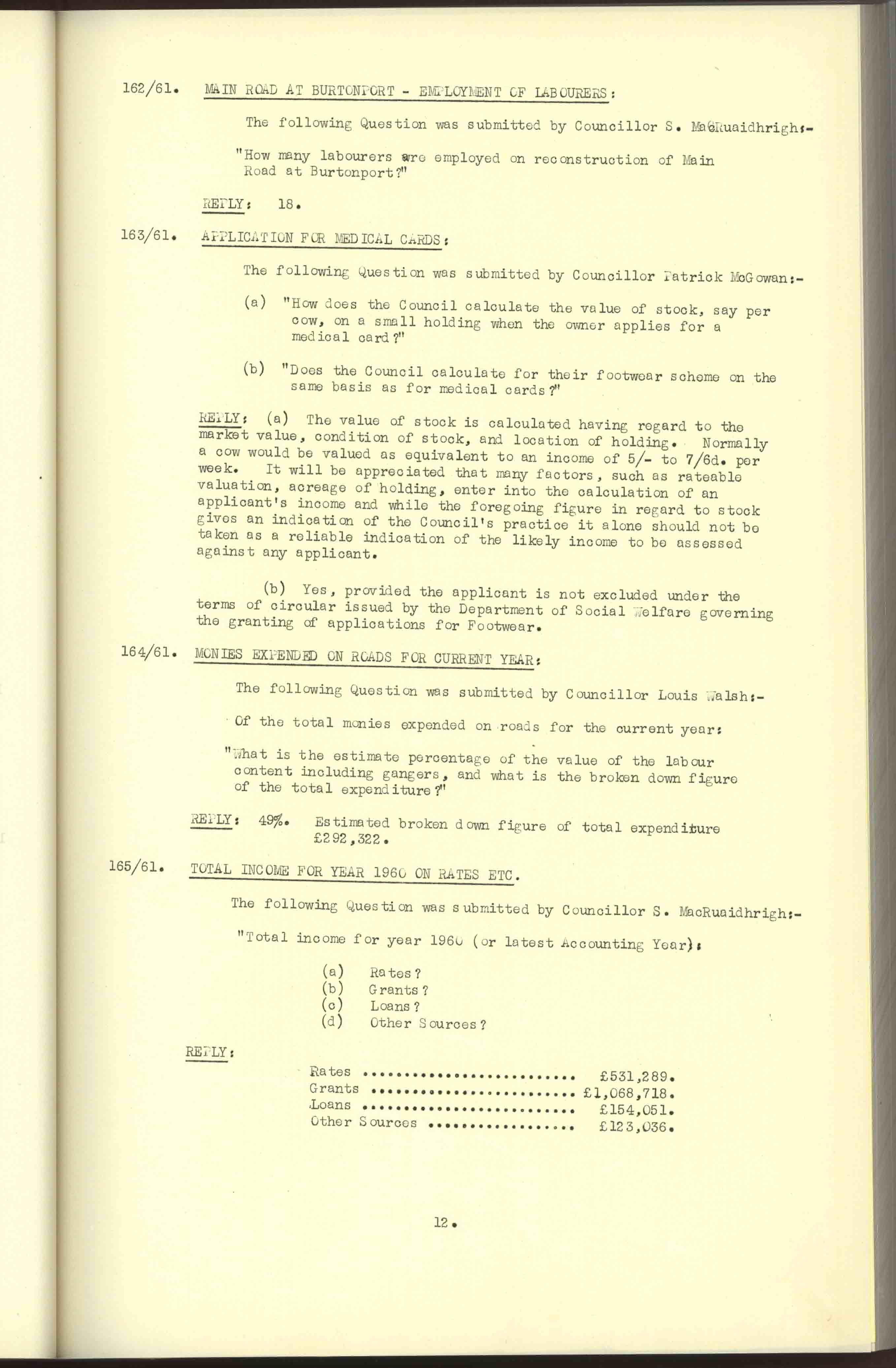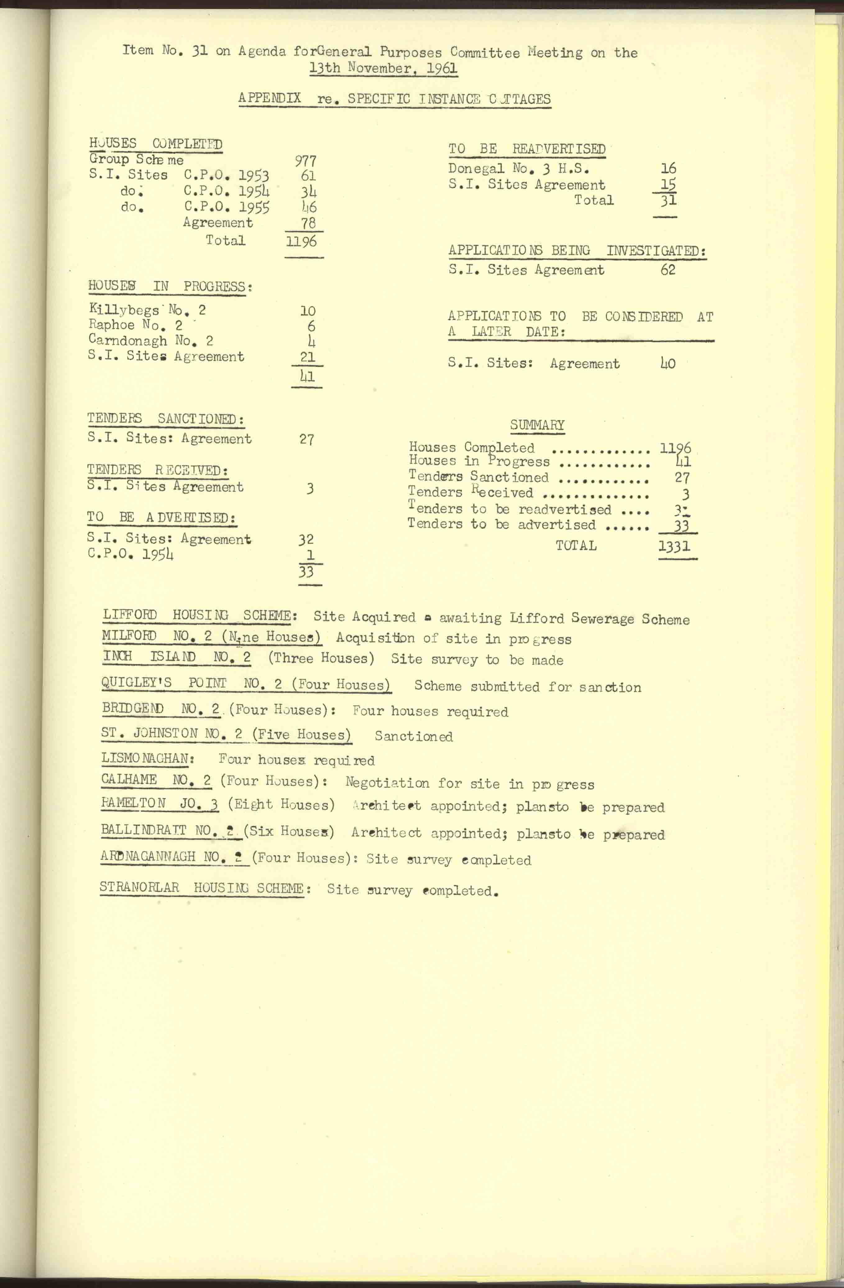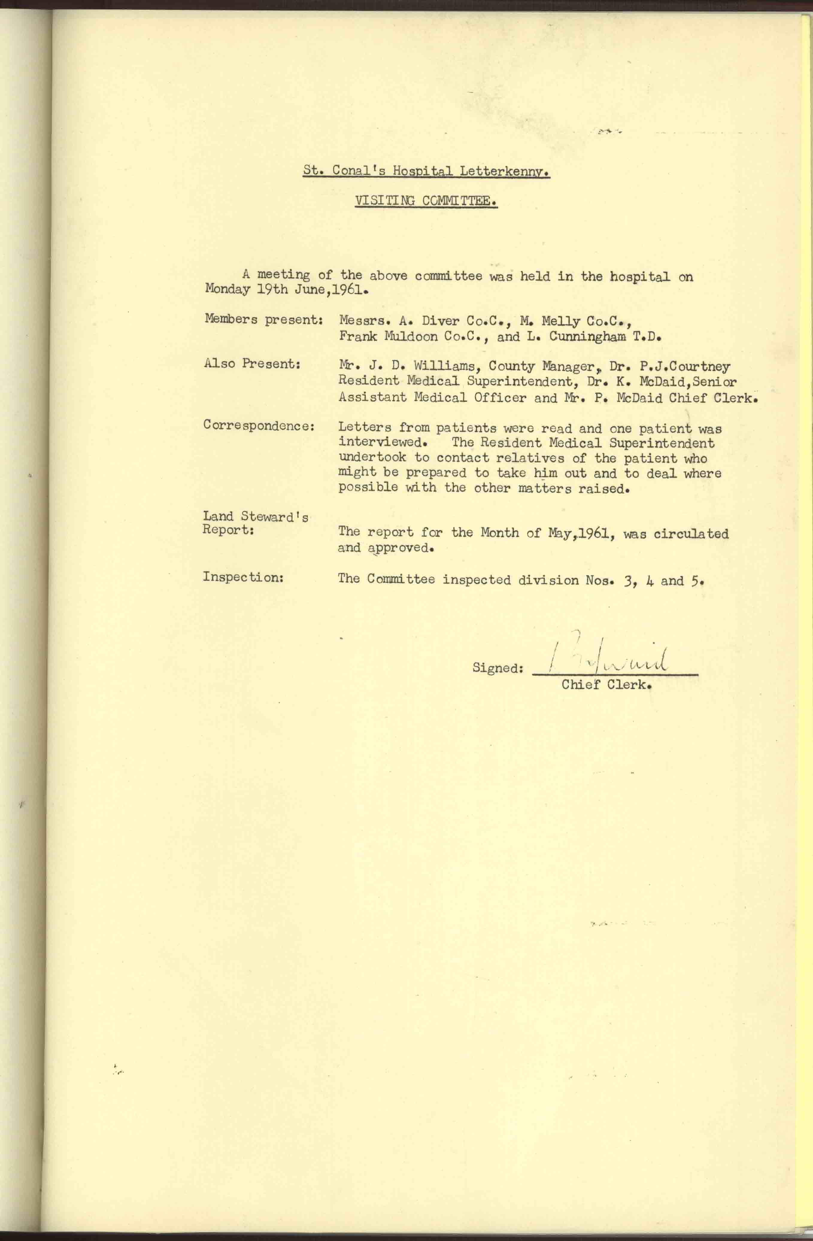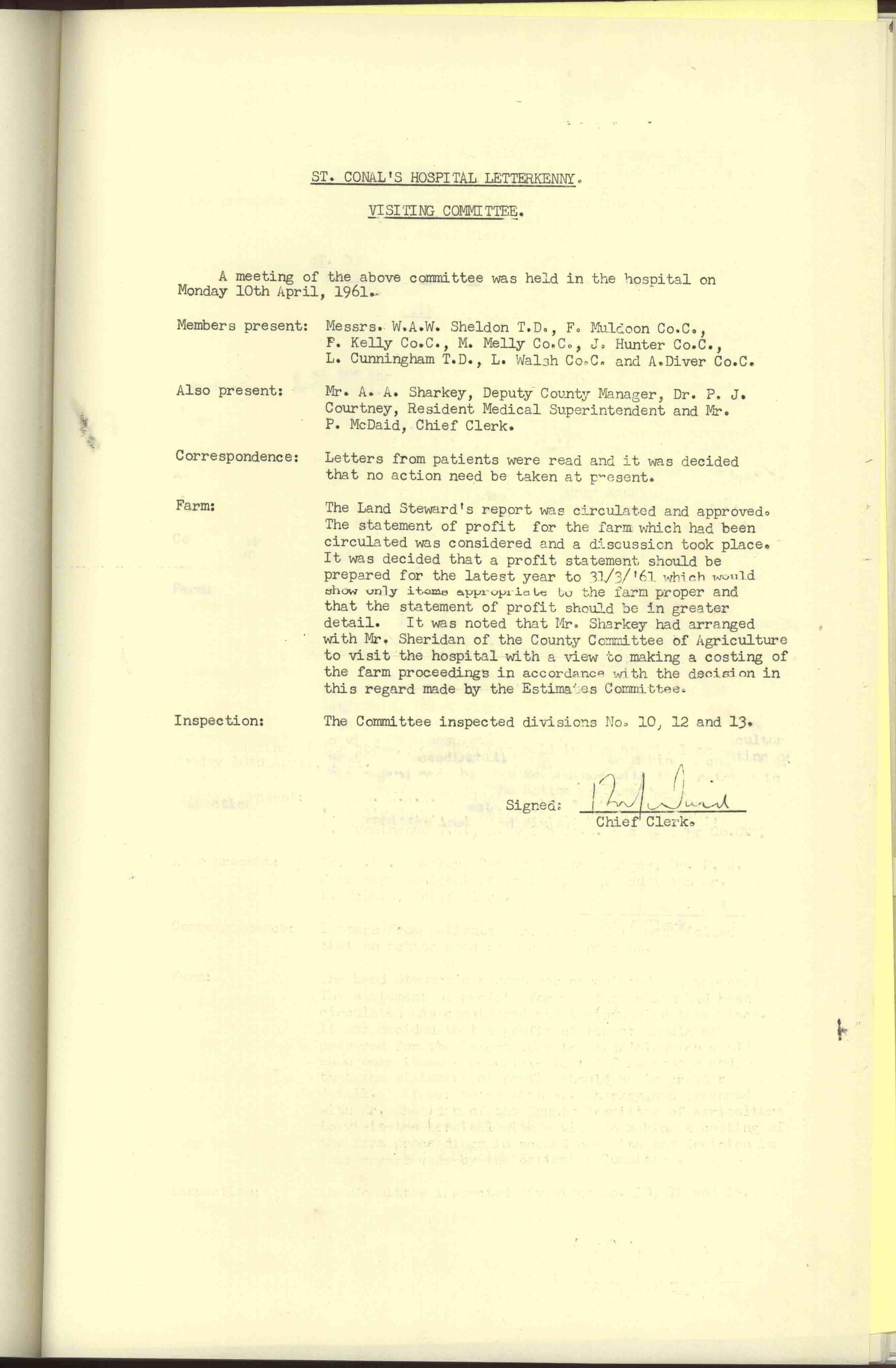 Donegal County Council Minutes, 1961
