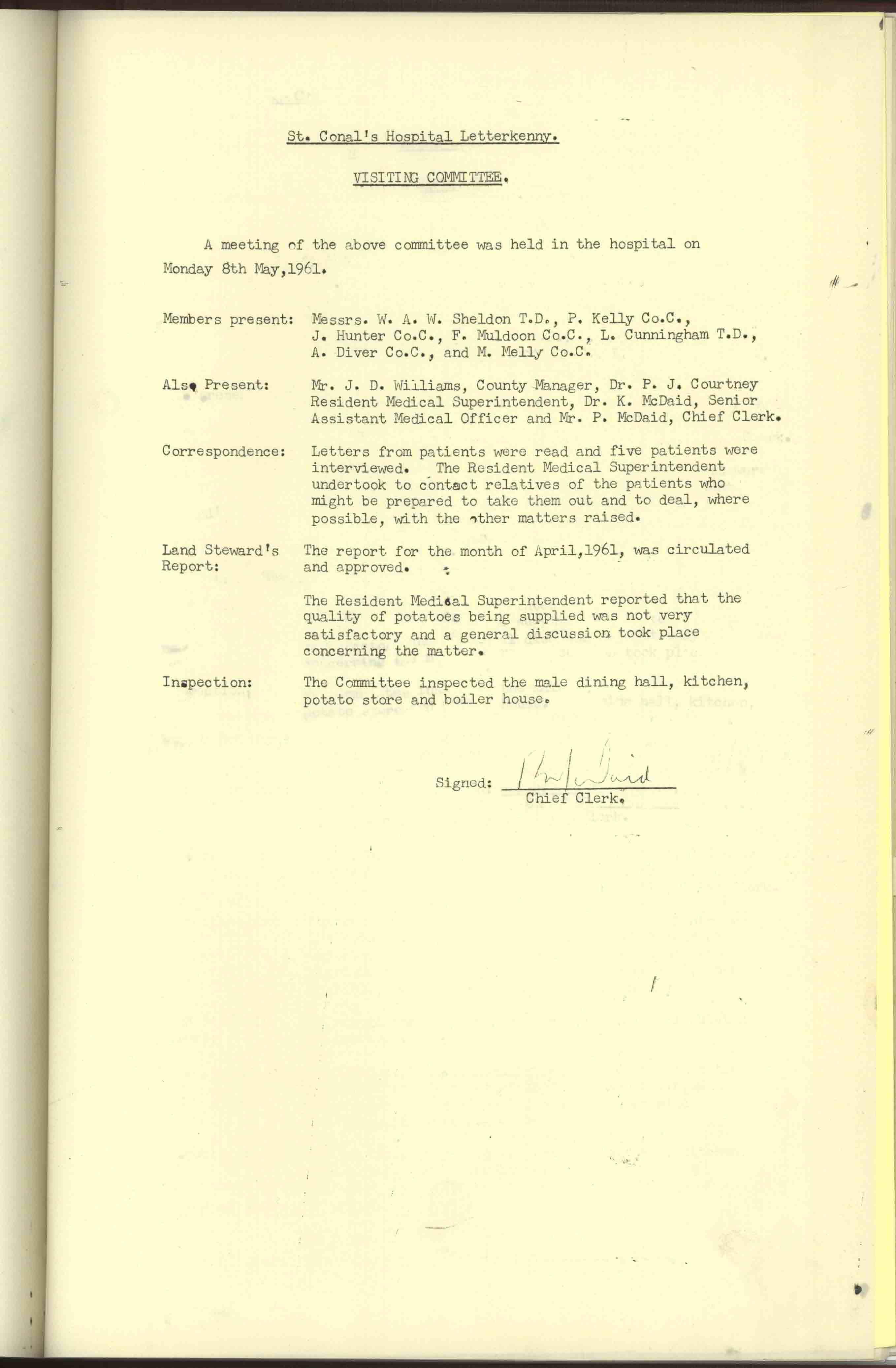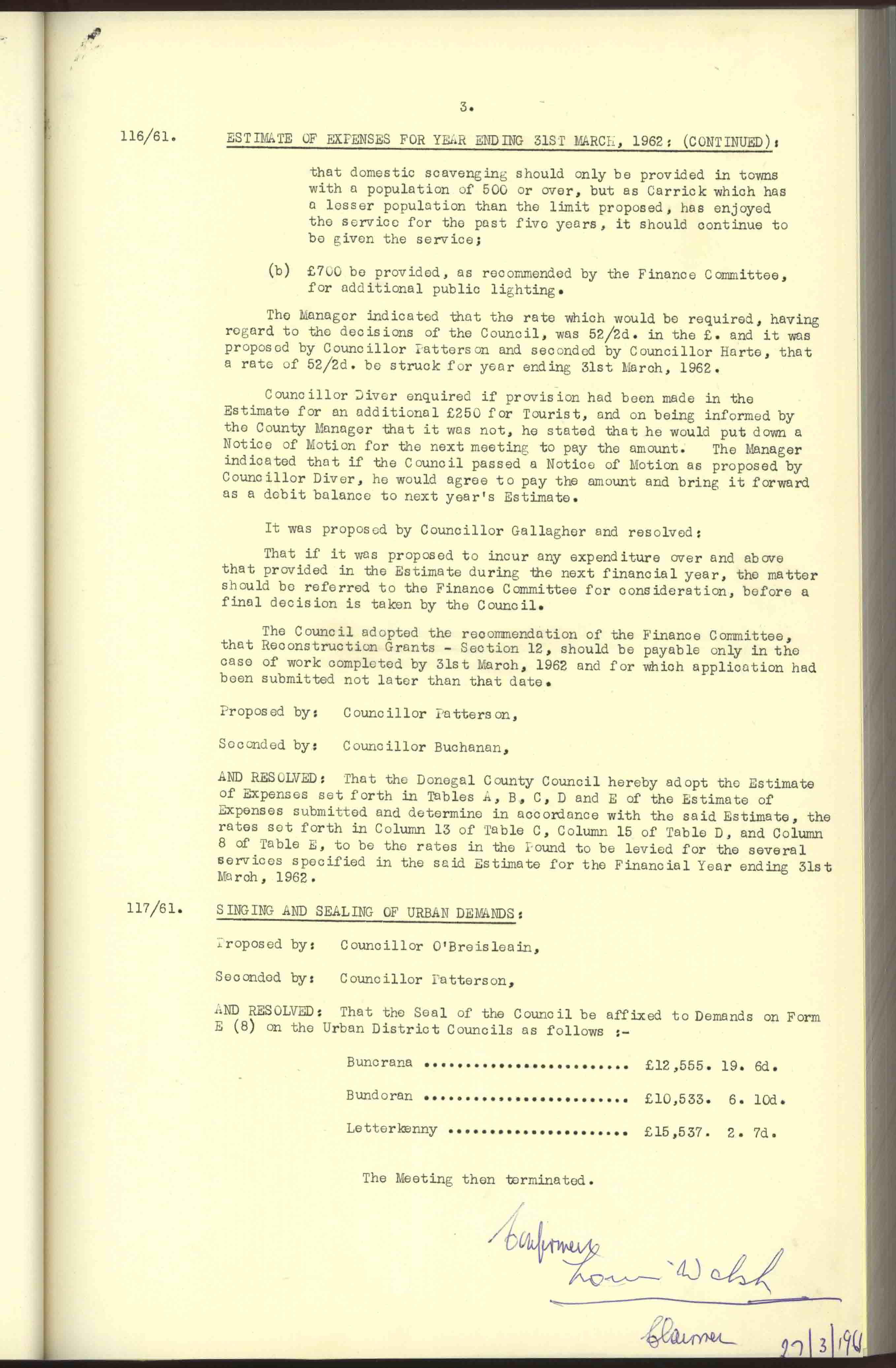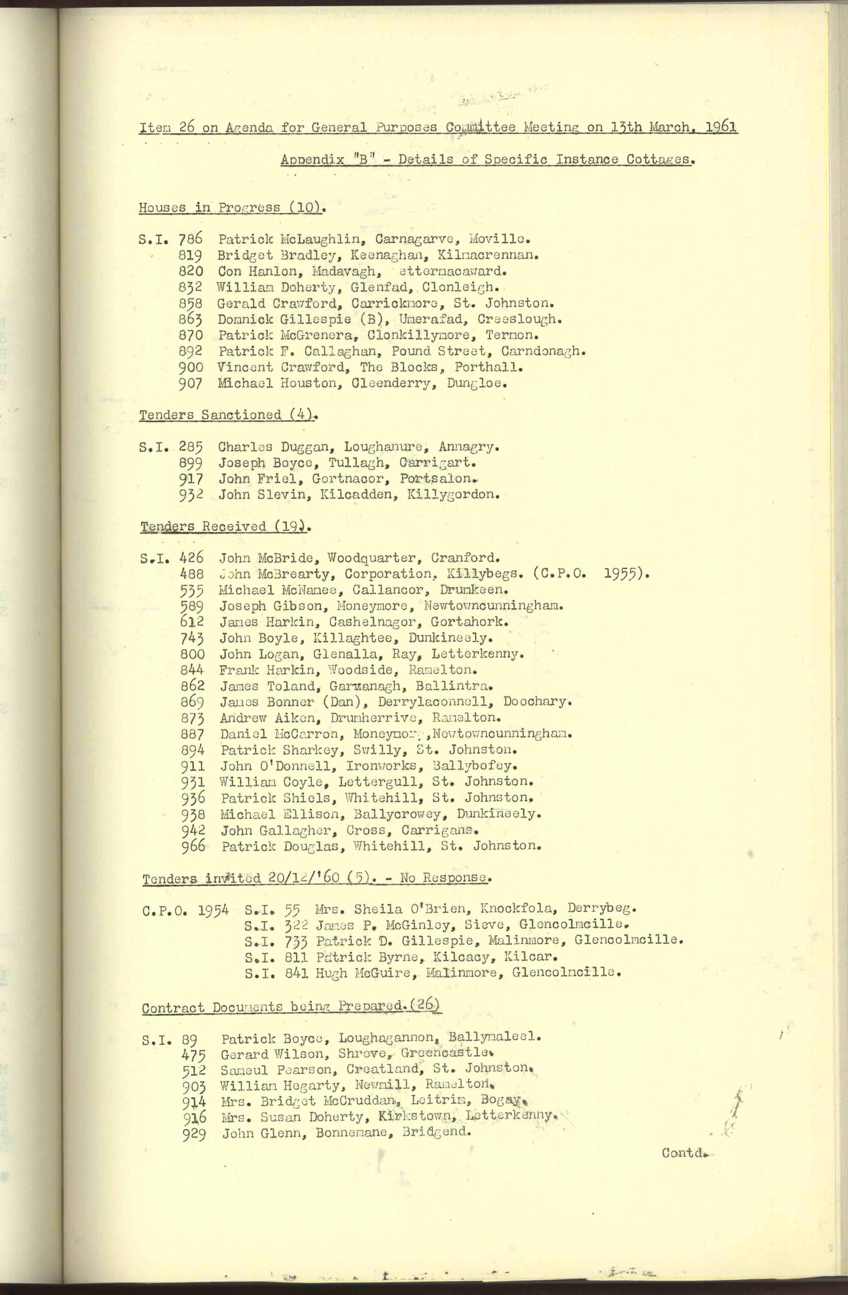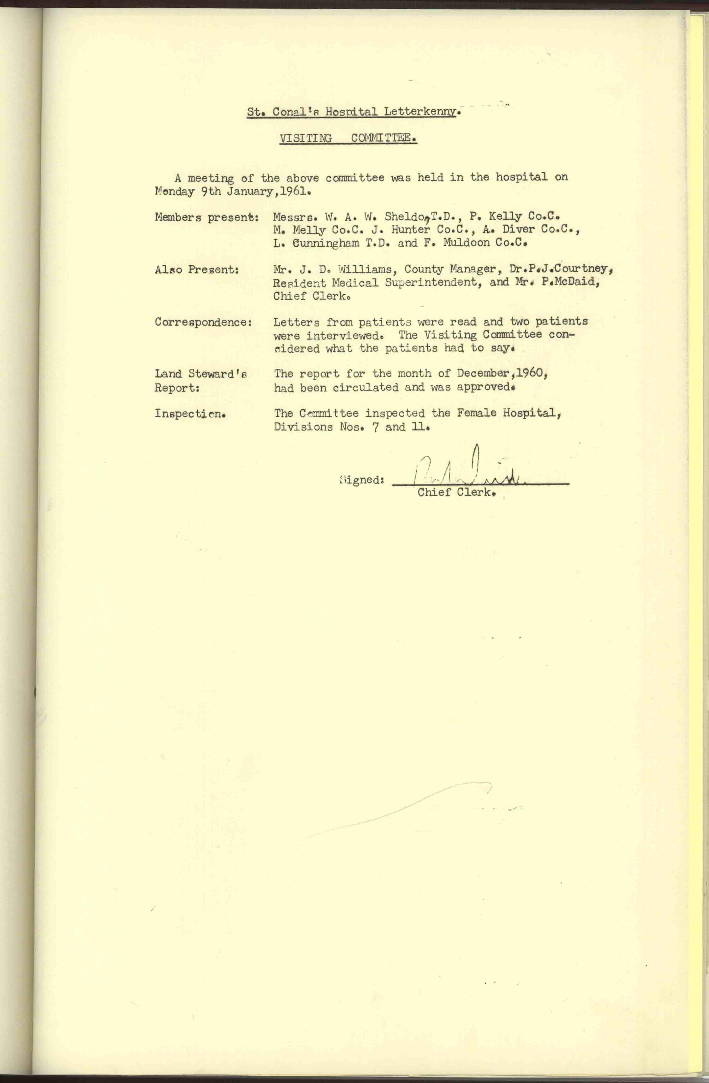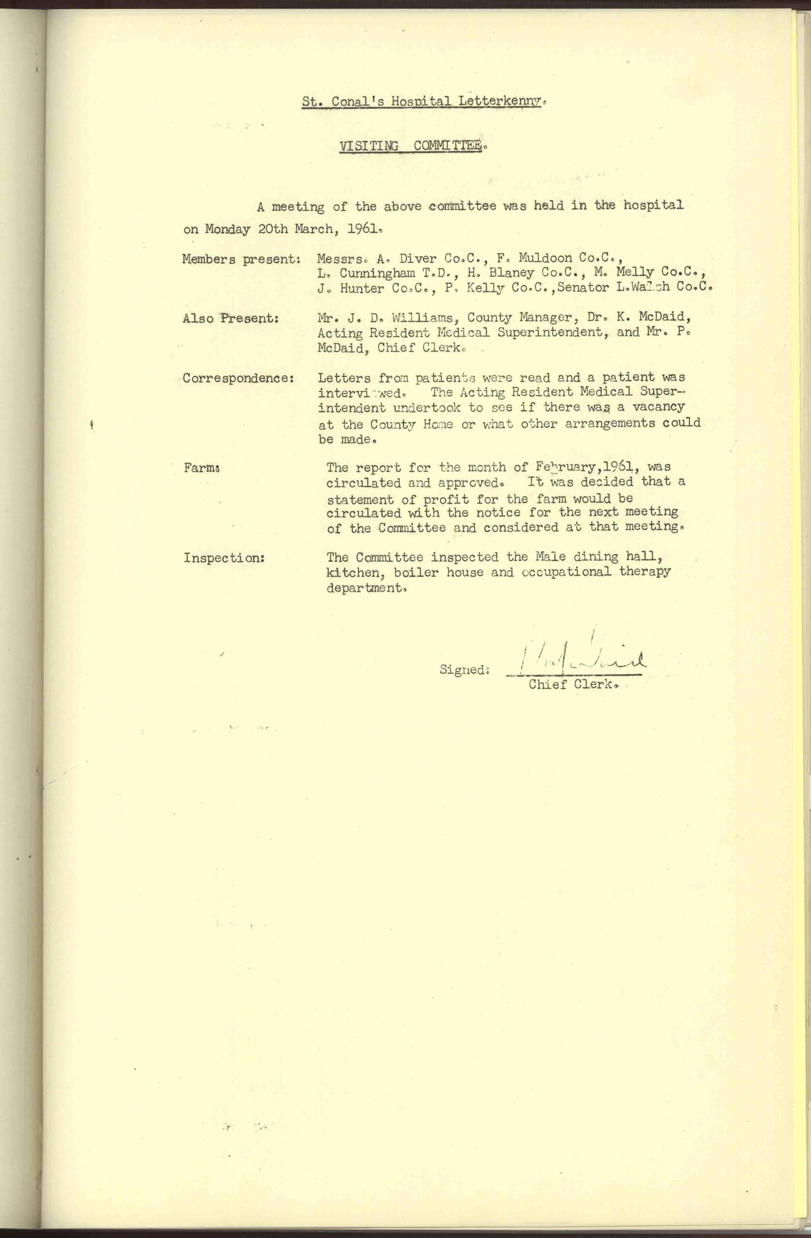 Donegal County Council Minutes, 1961