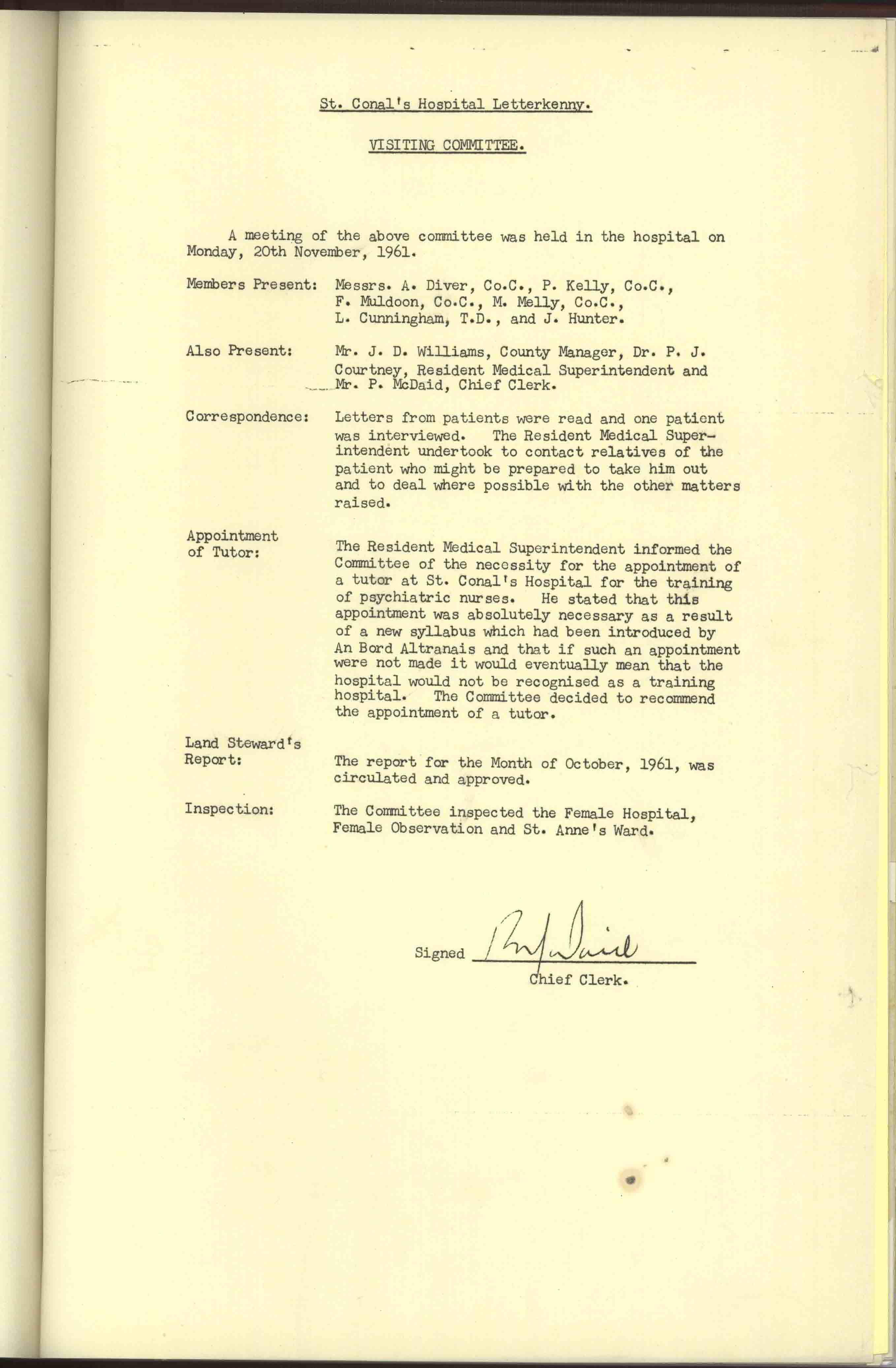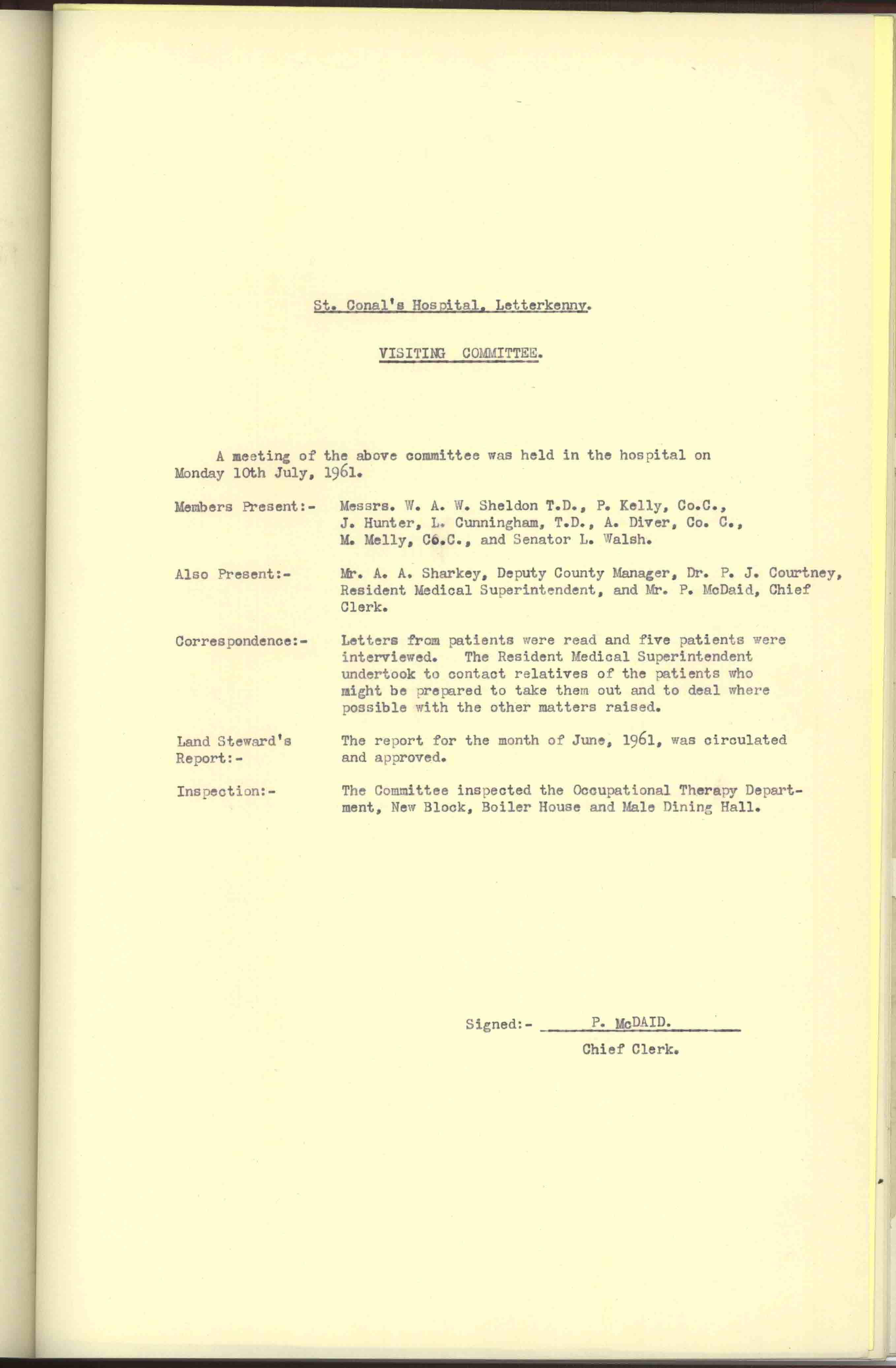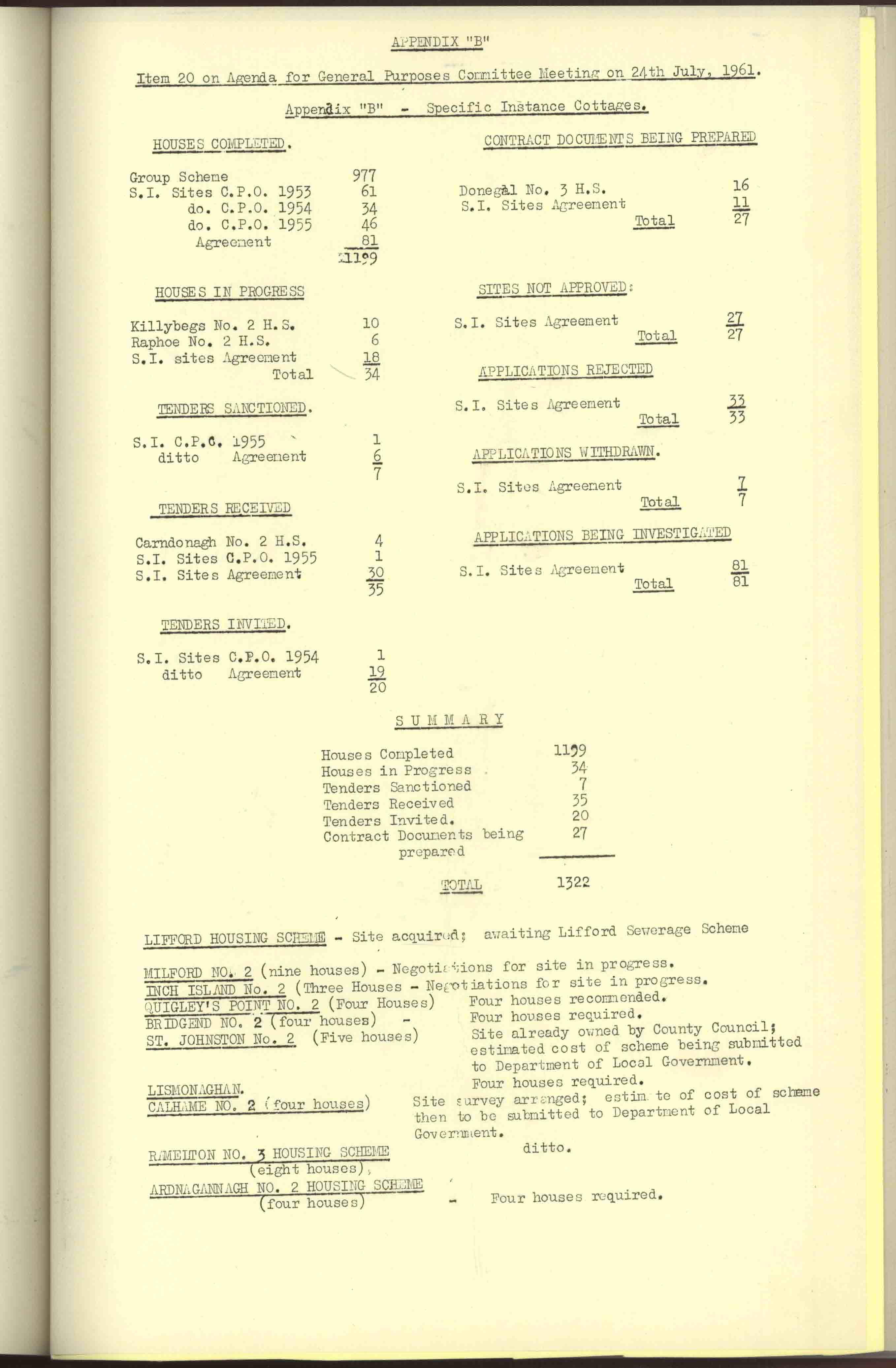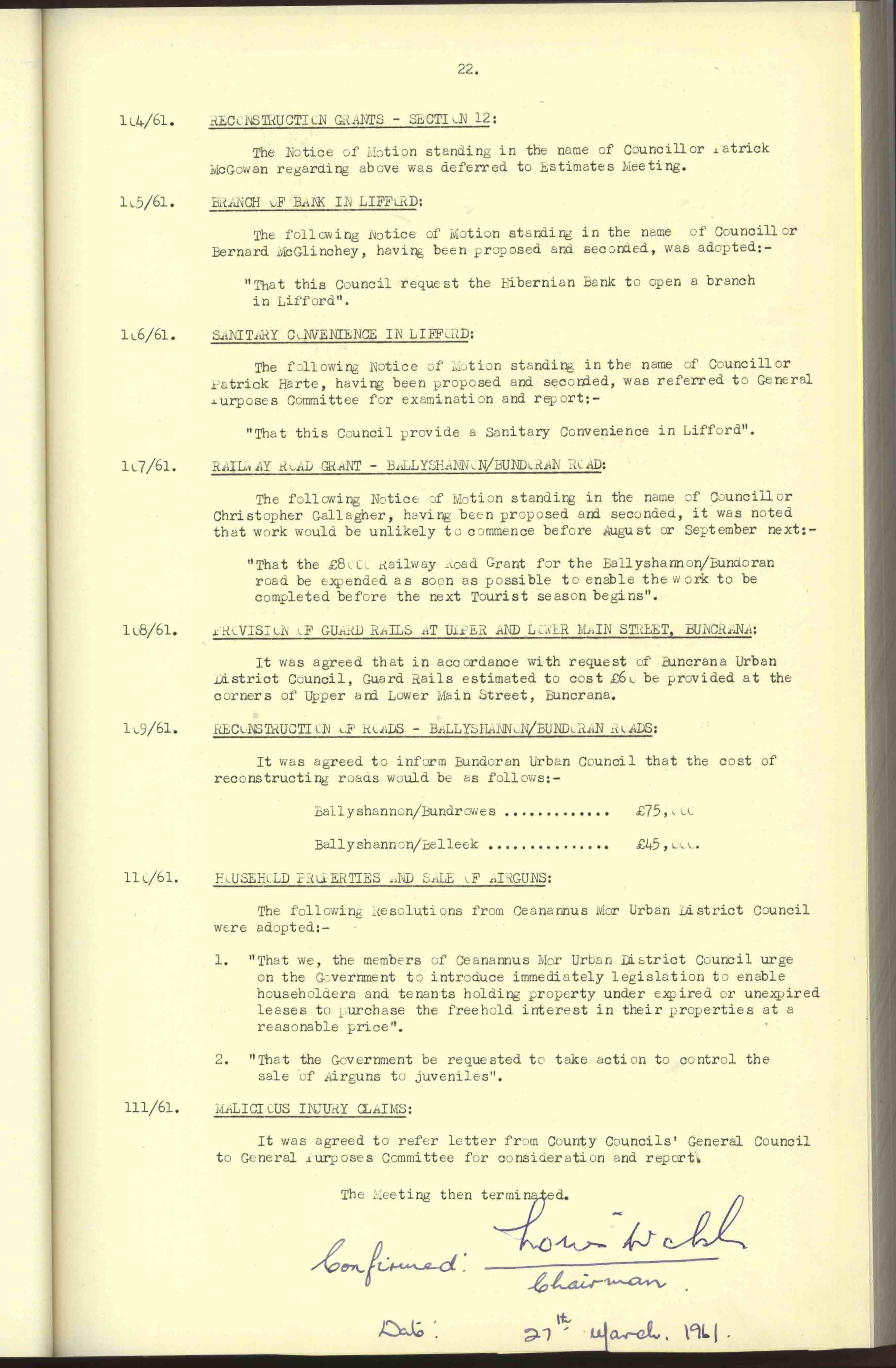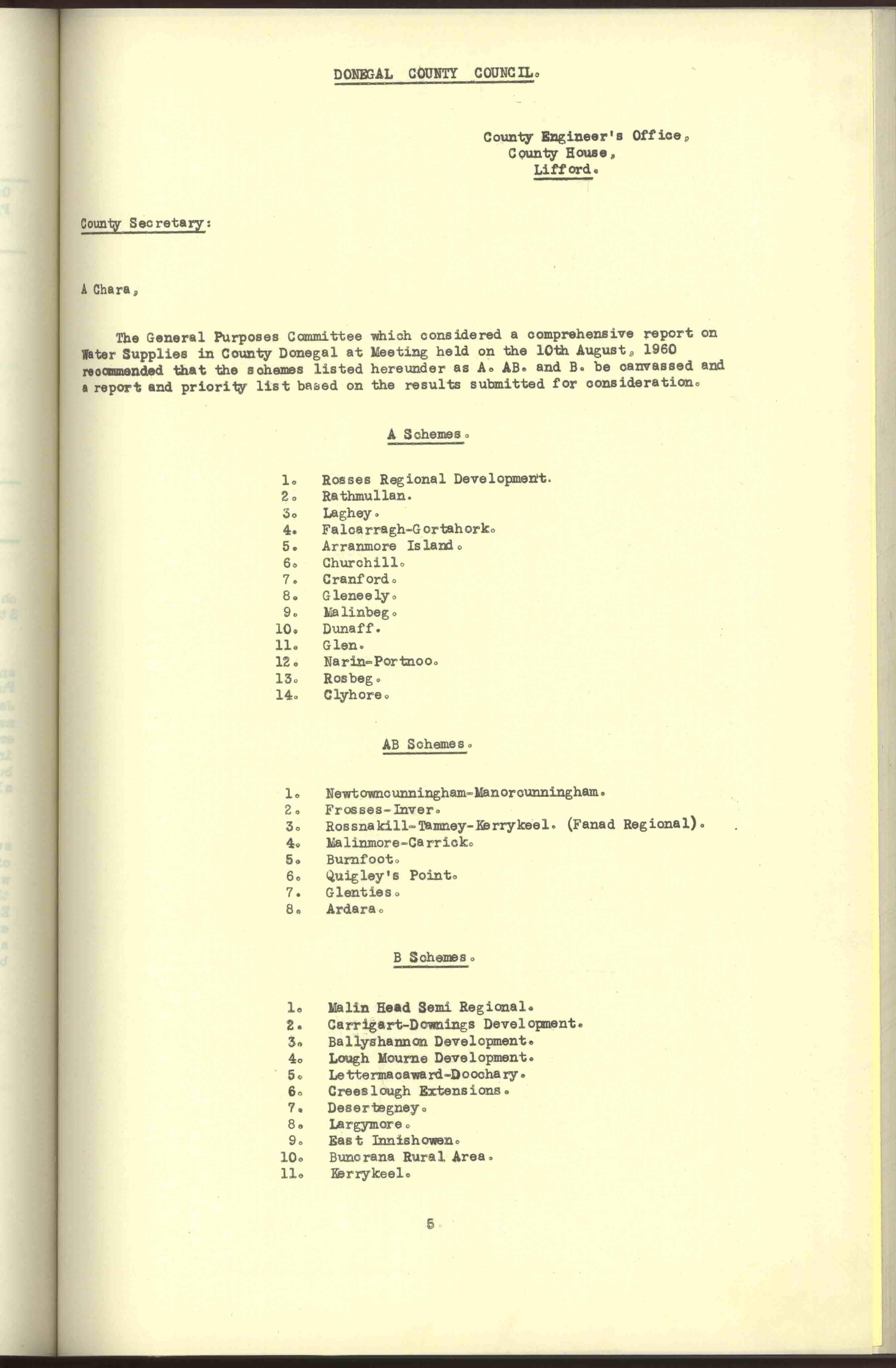 Donegal County Council Minutes, 1961