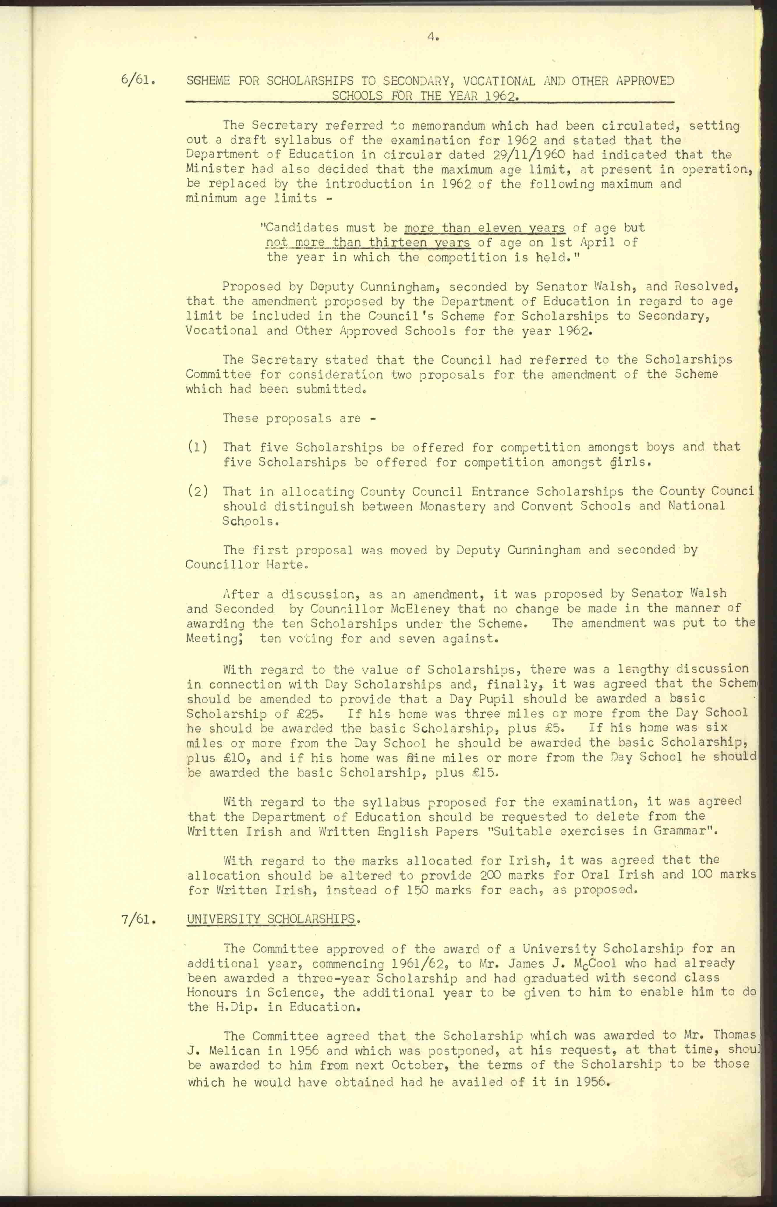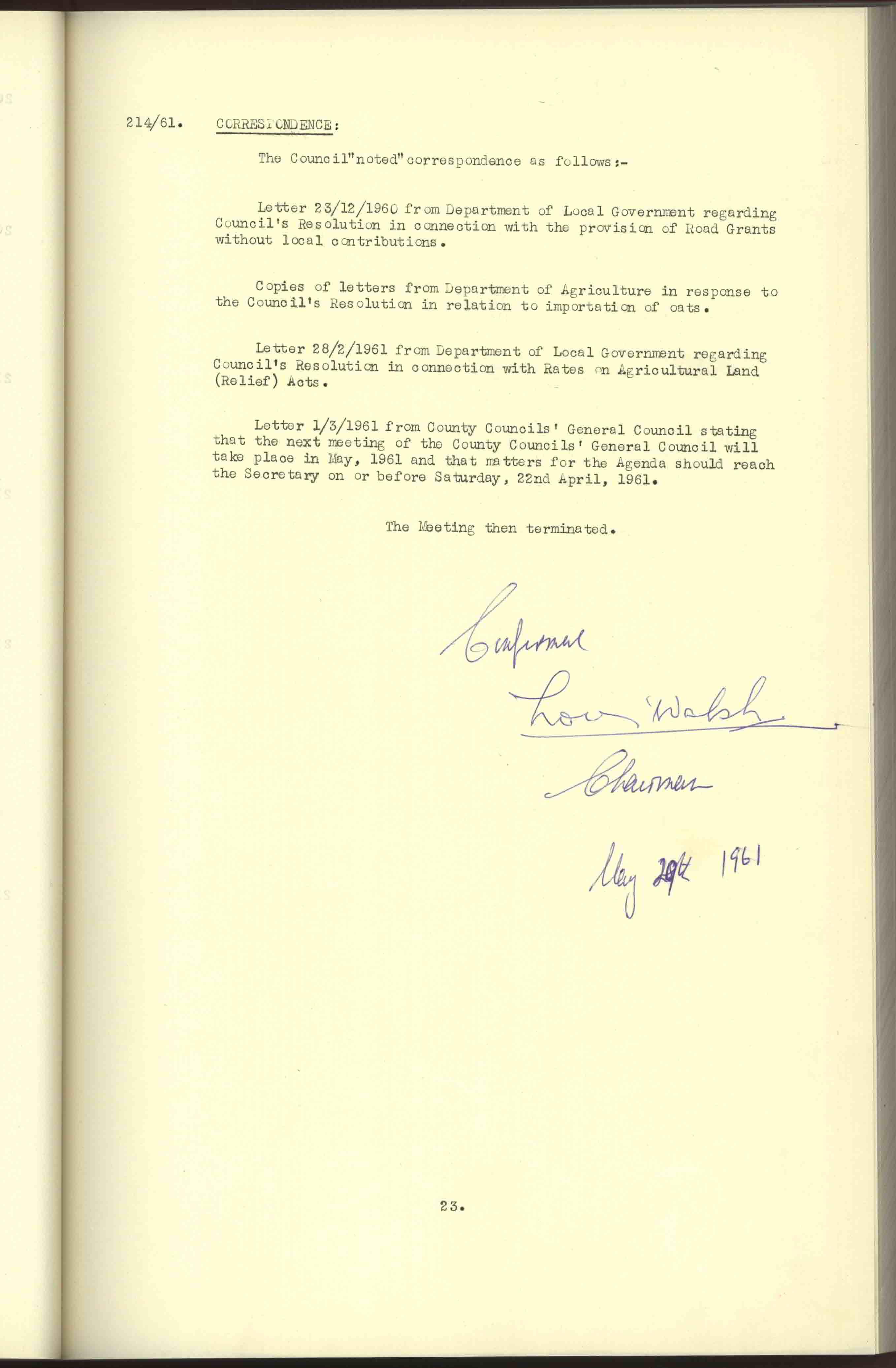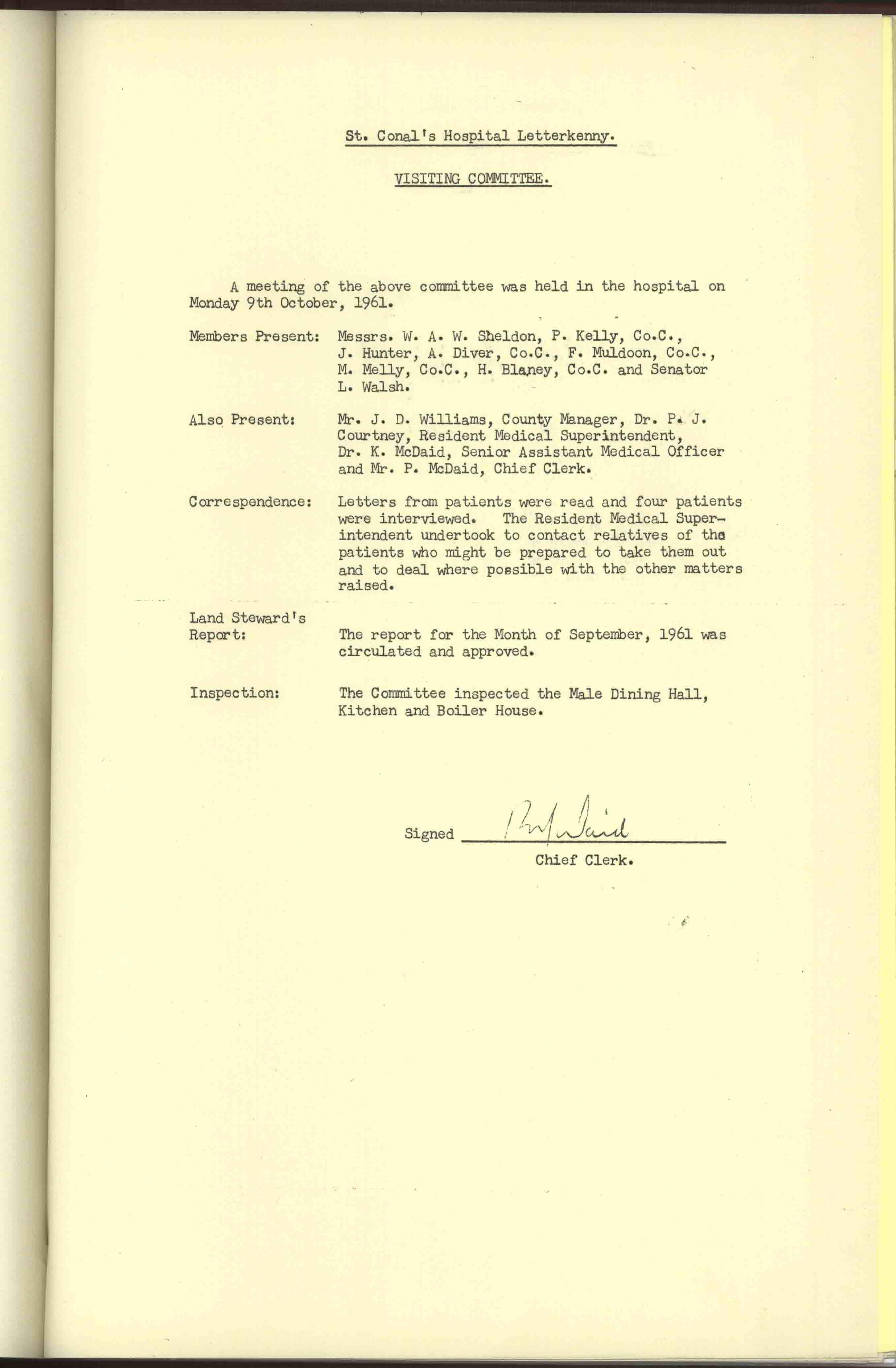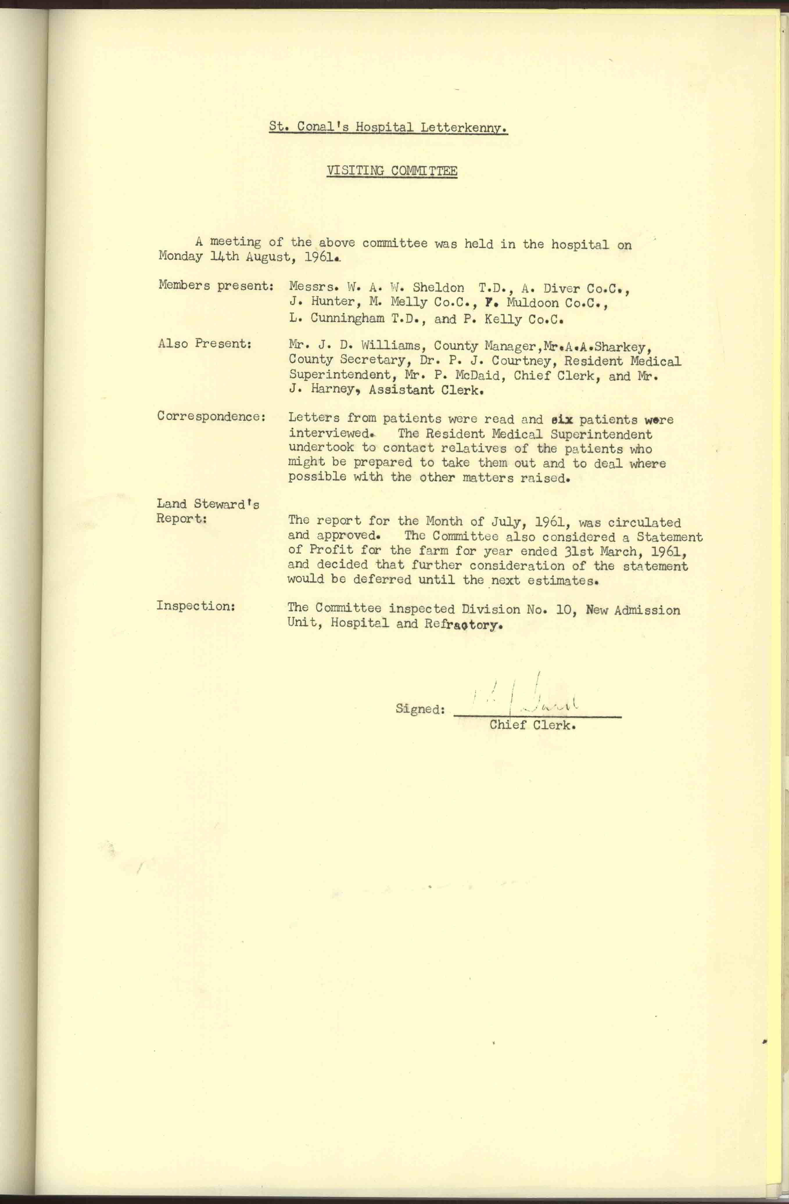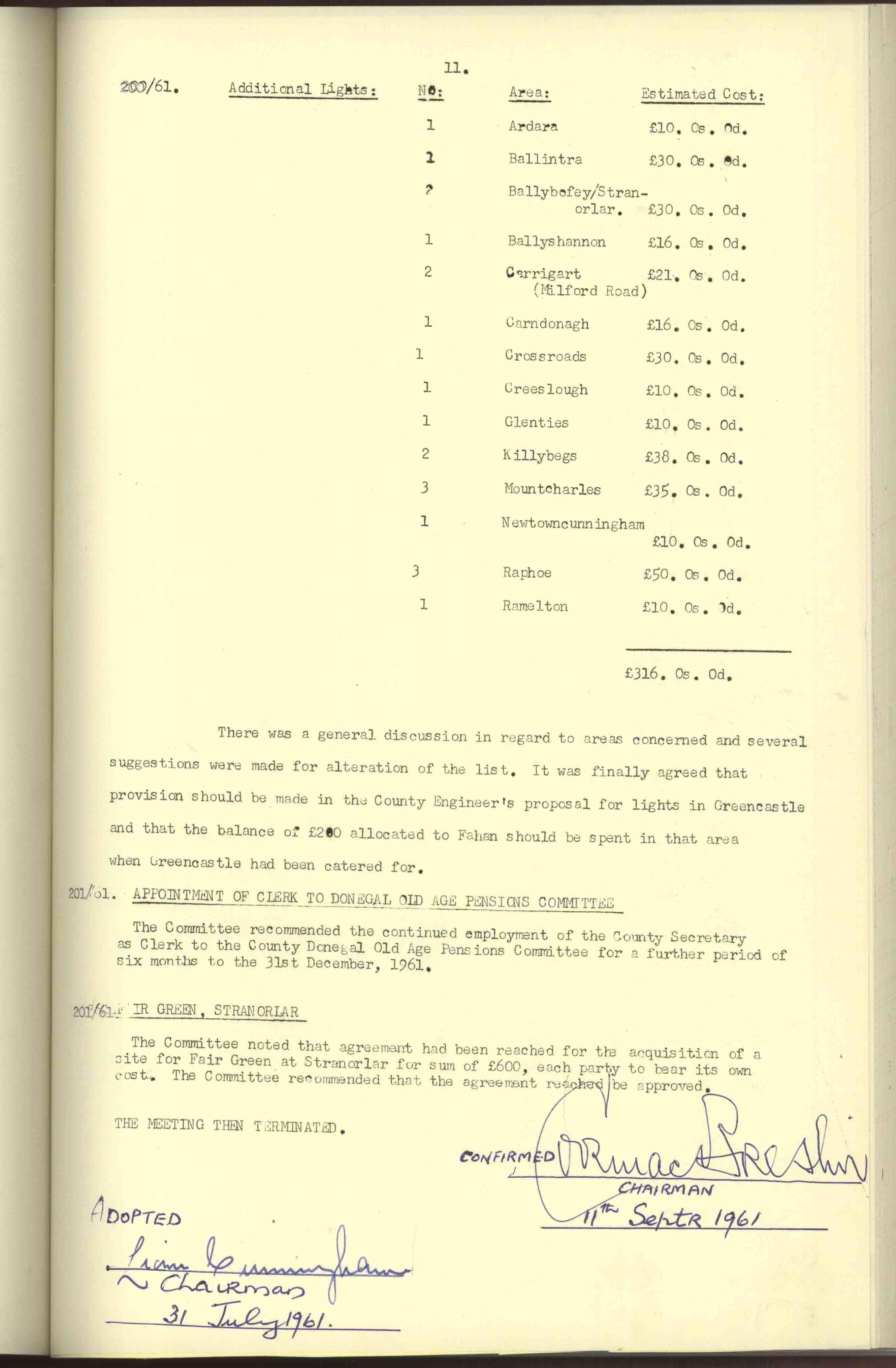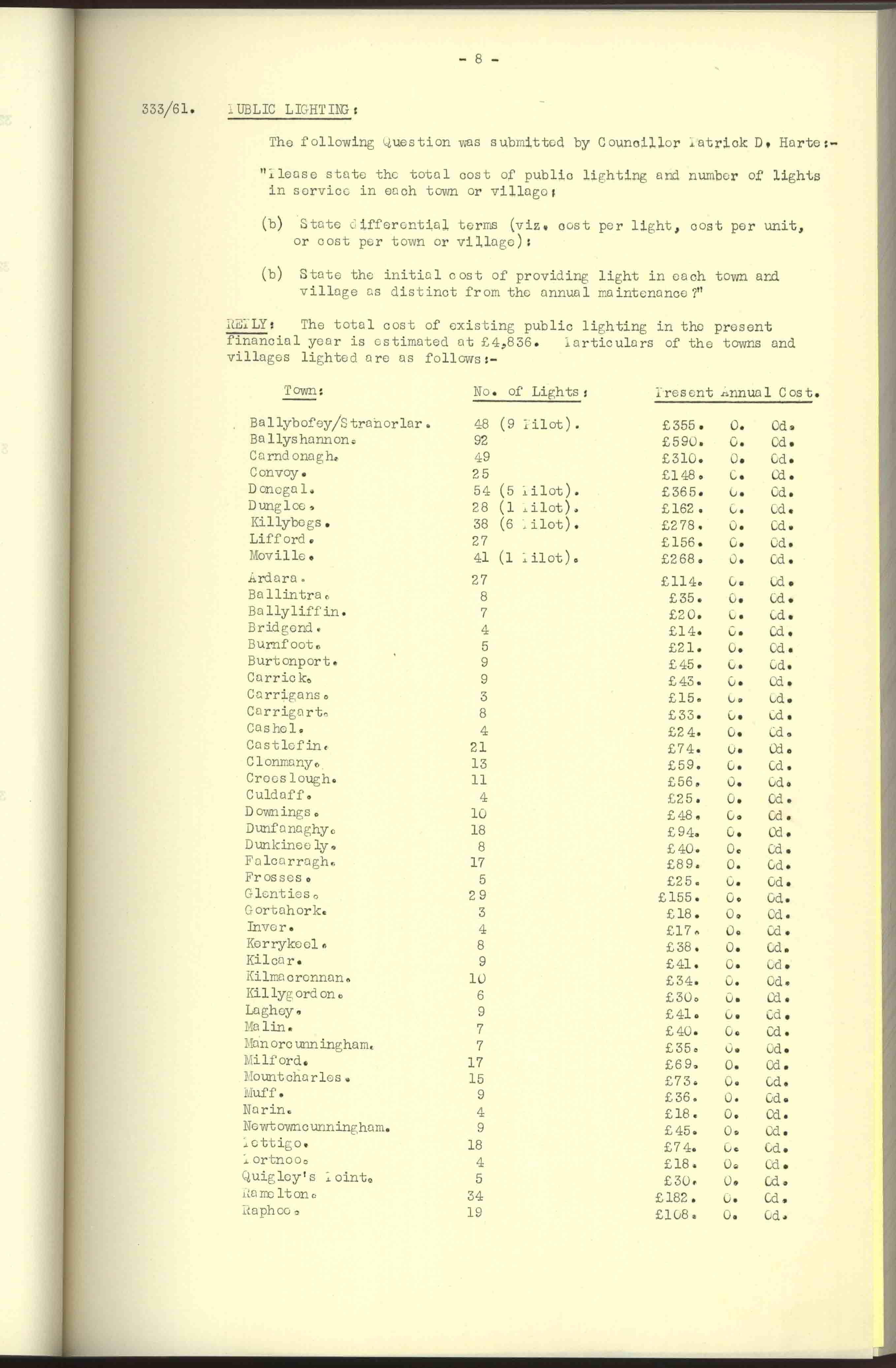 Donegal County Council Minutes, 1961