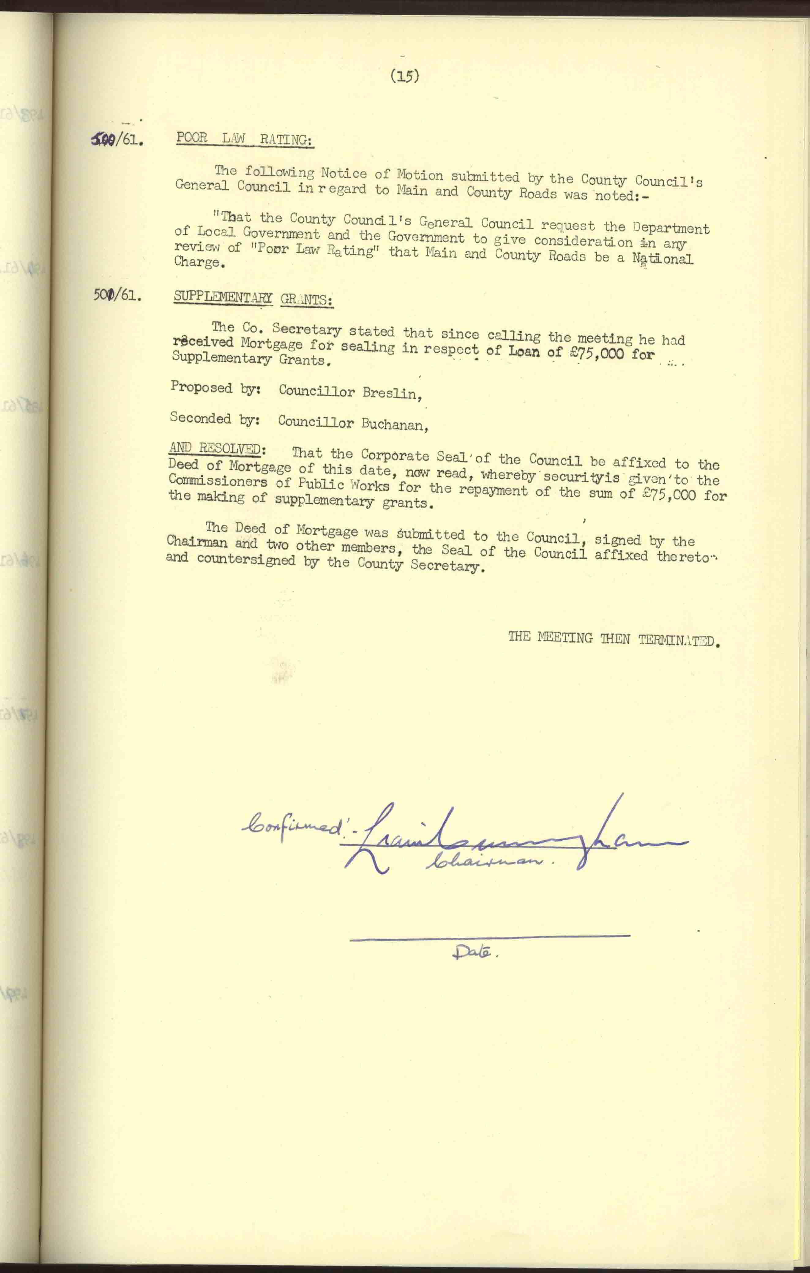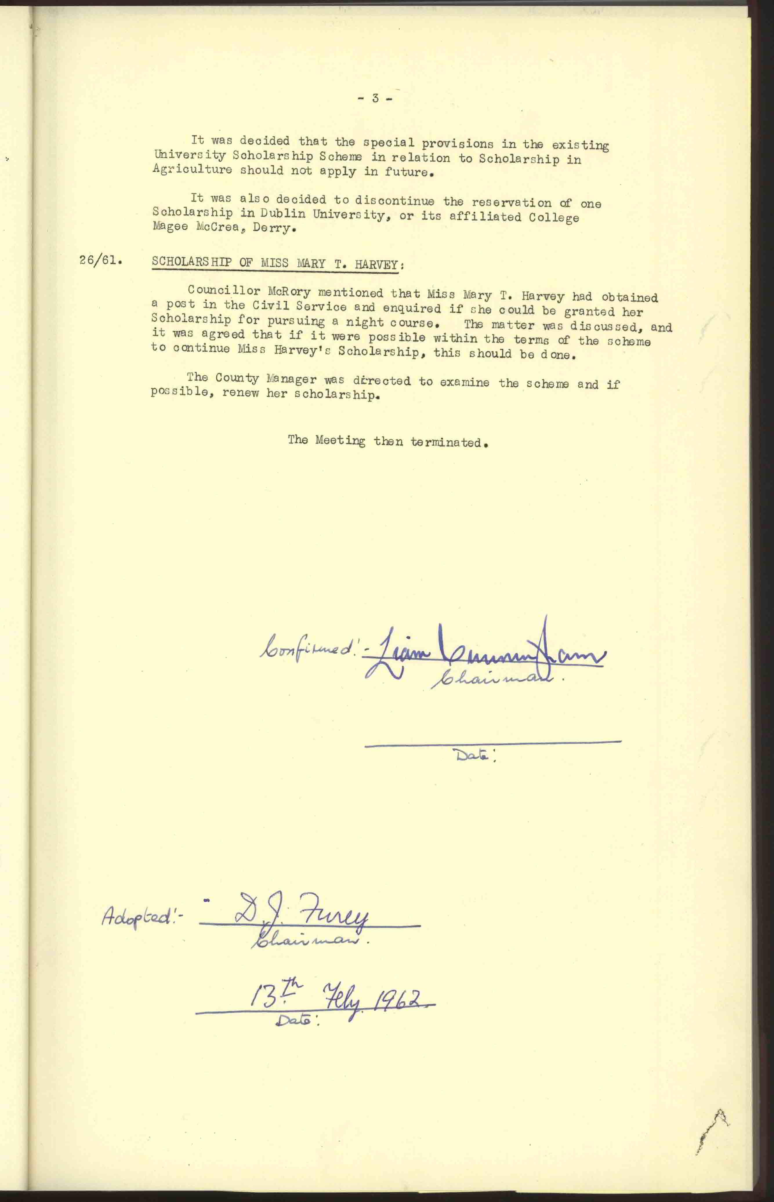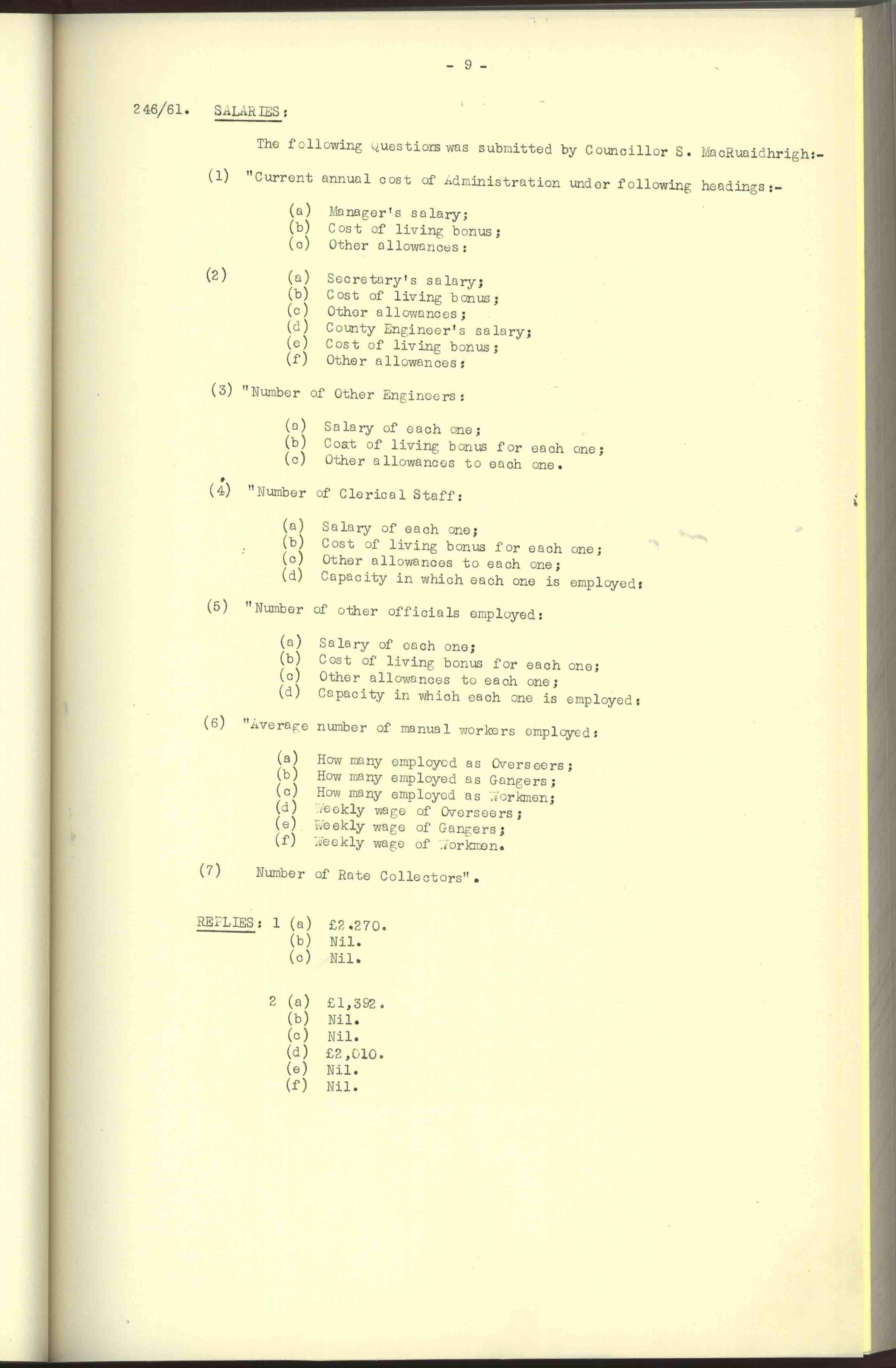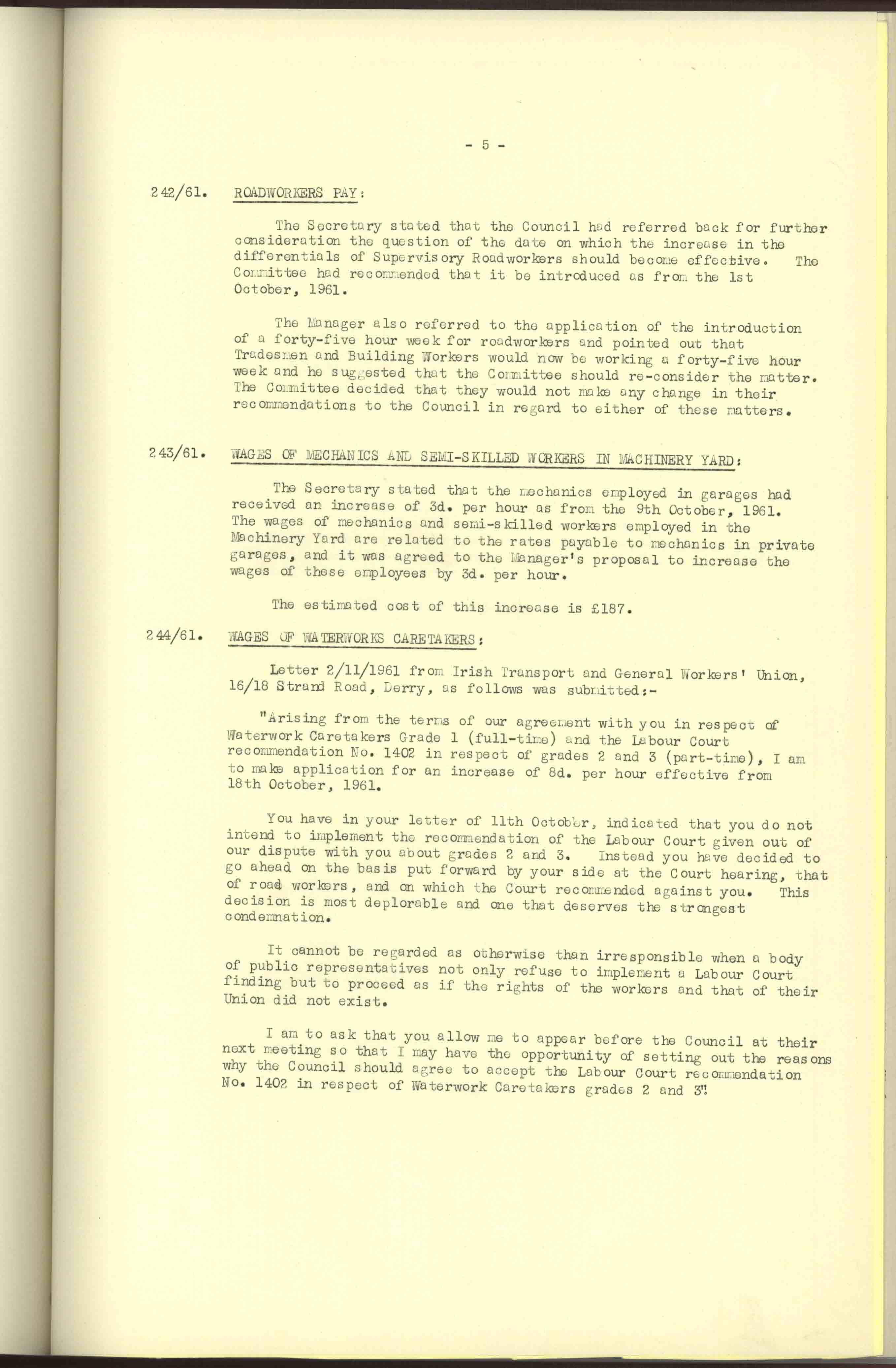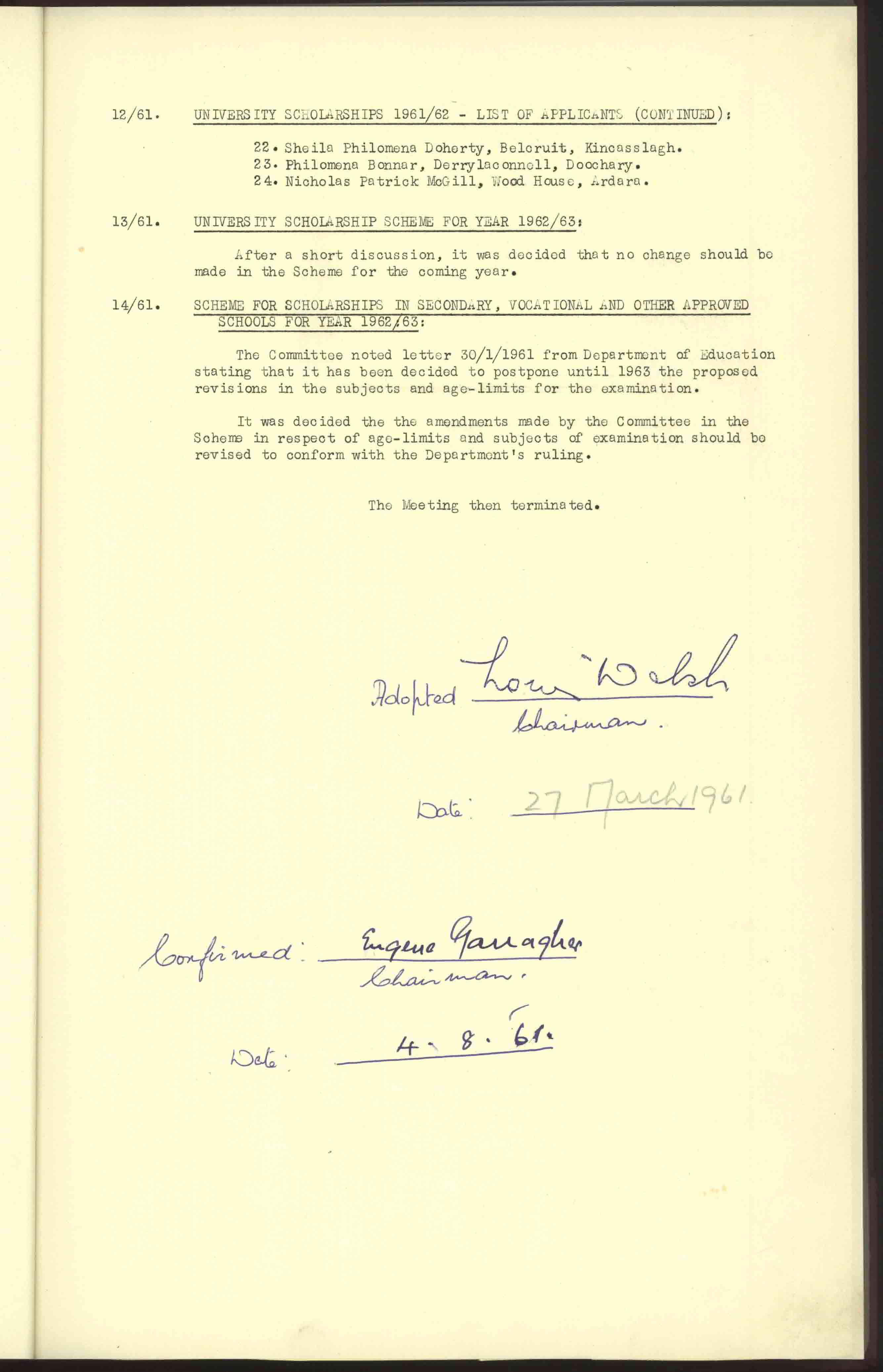Donegal County Council Minutes, 1961