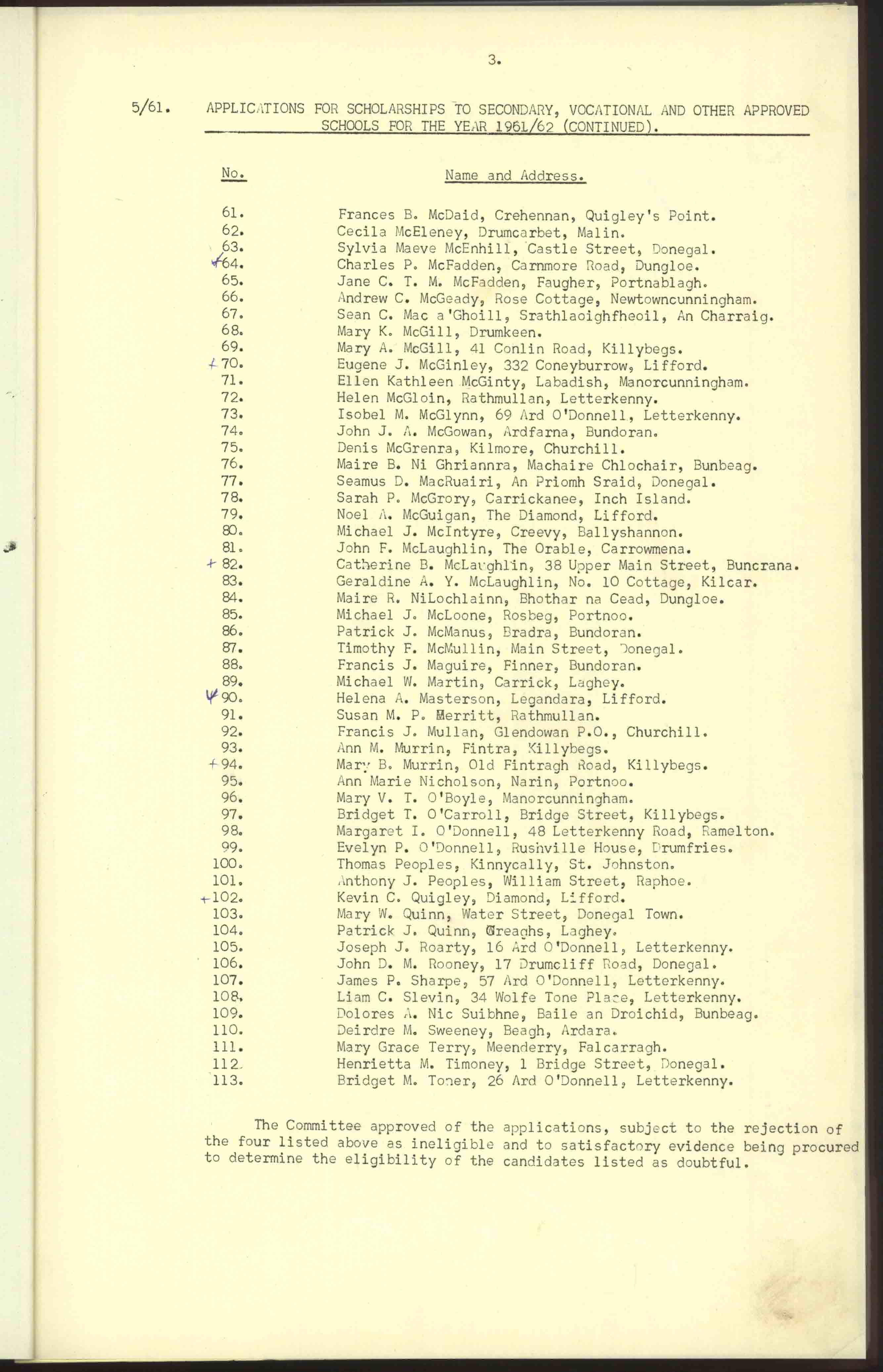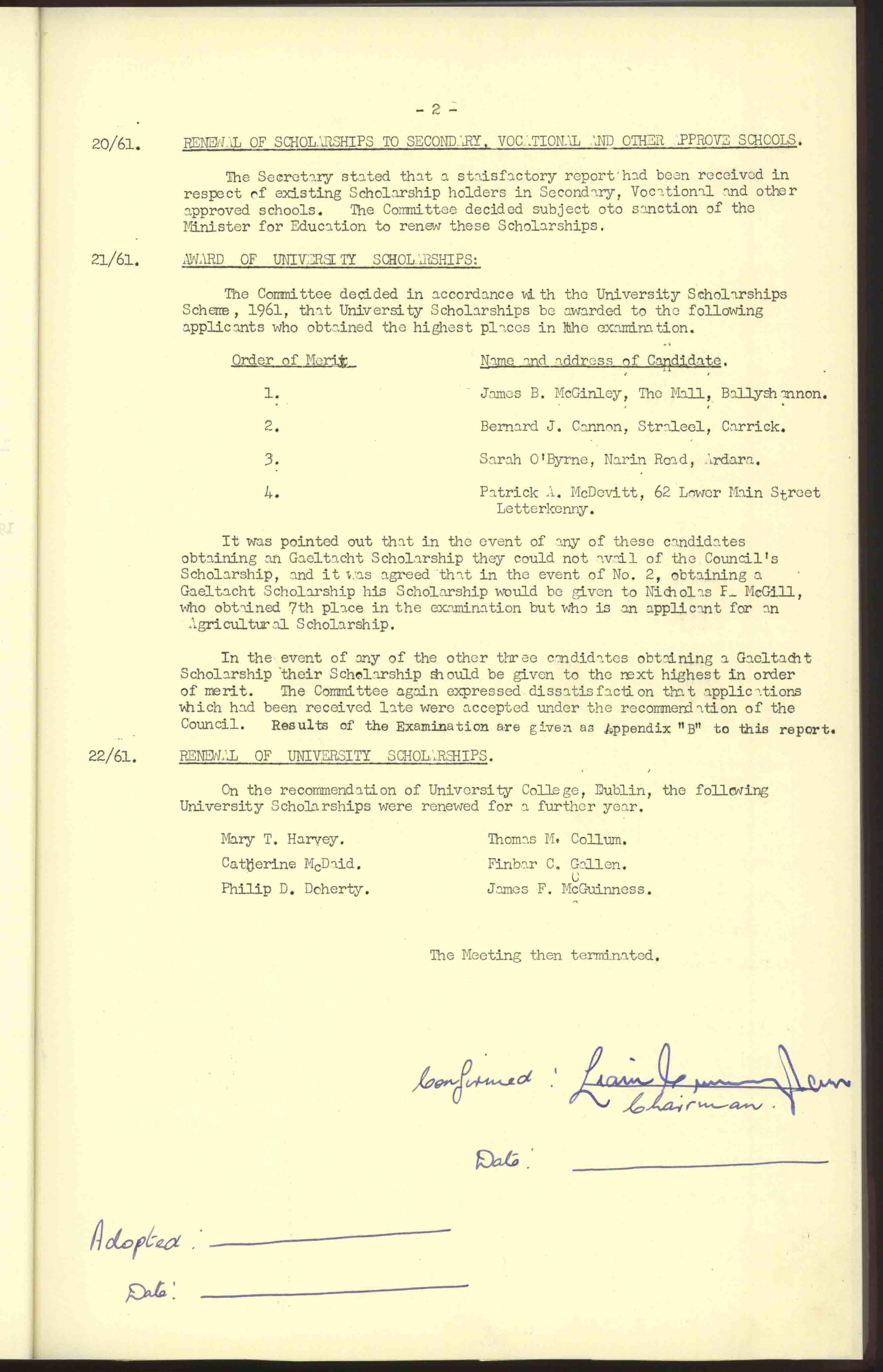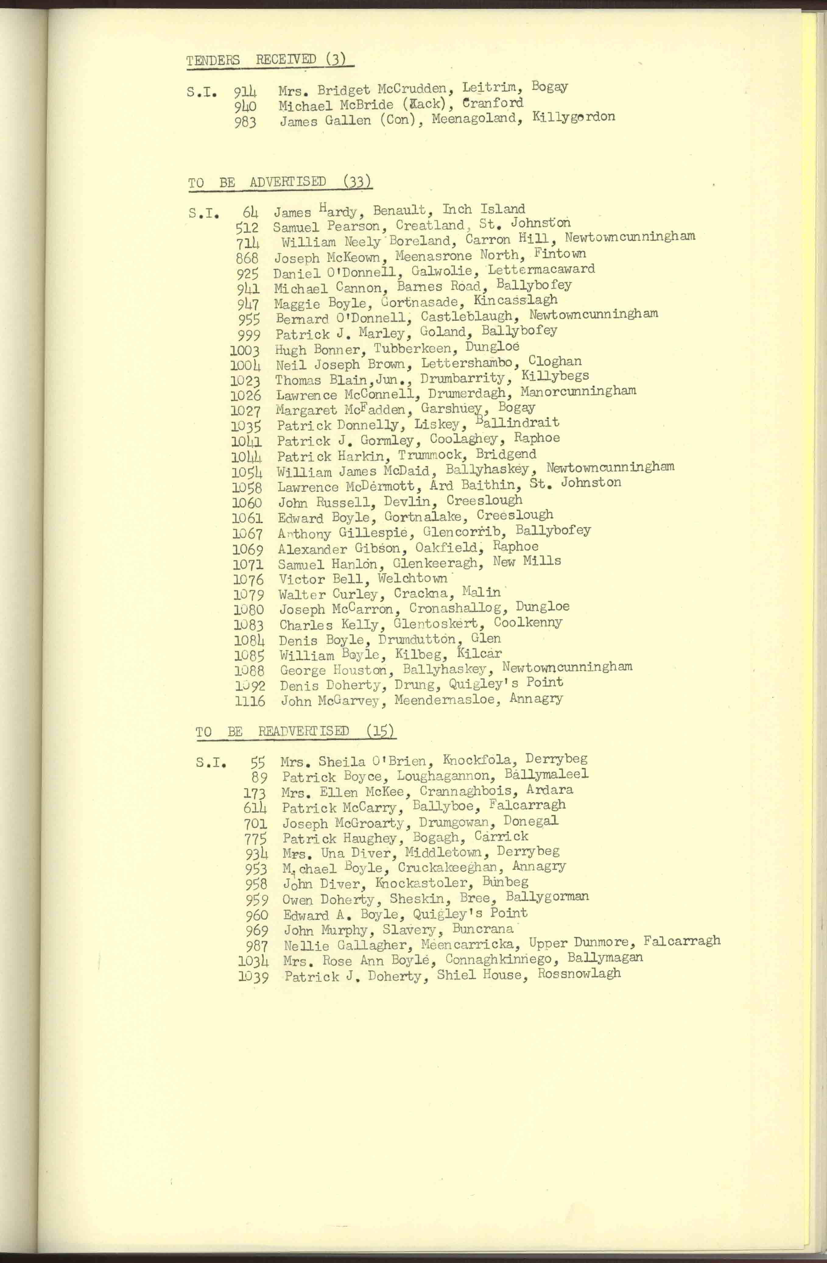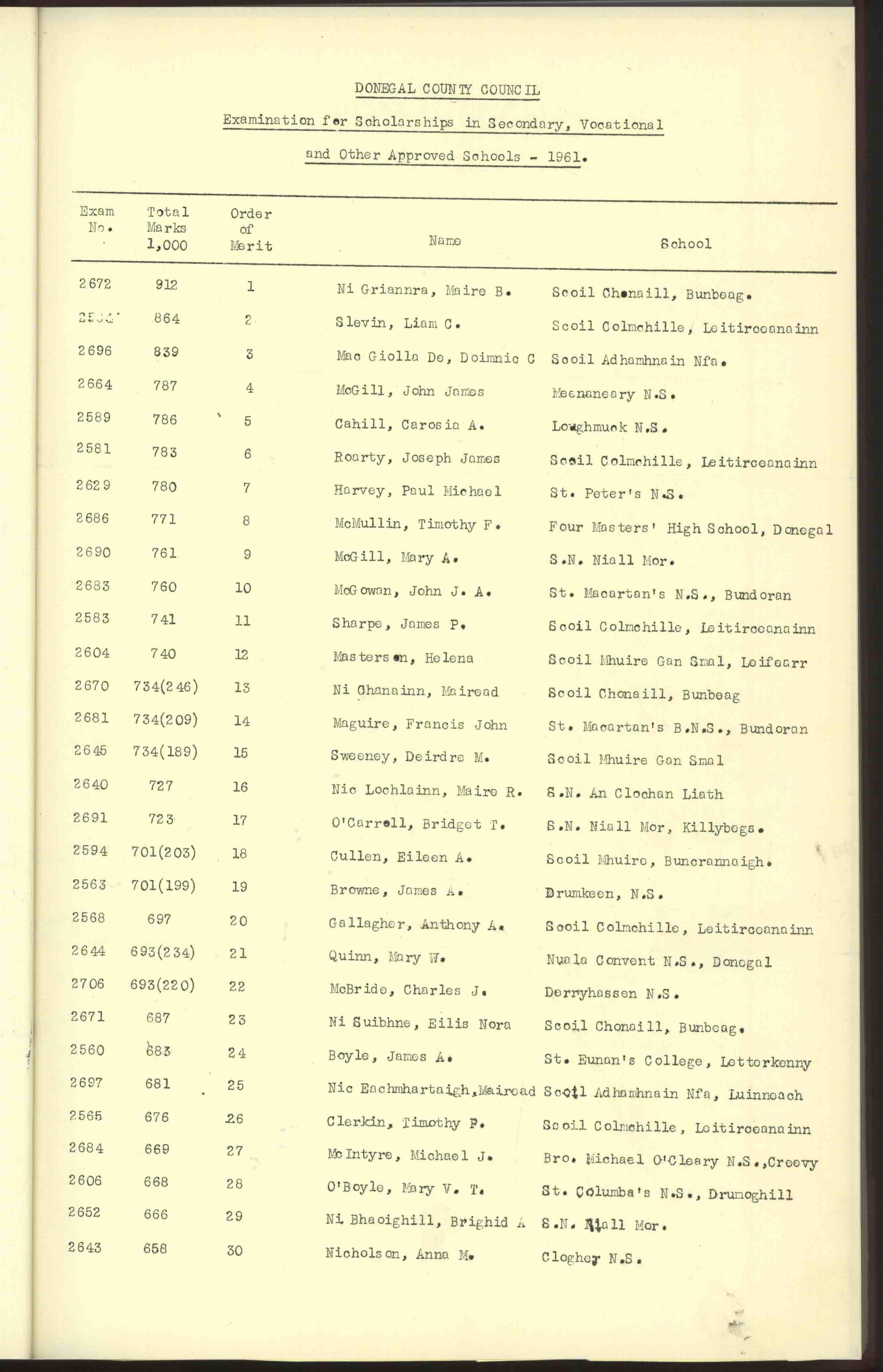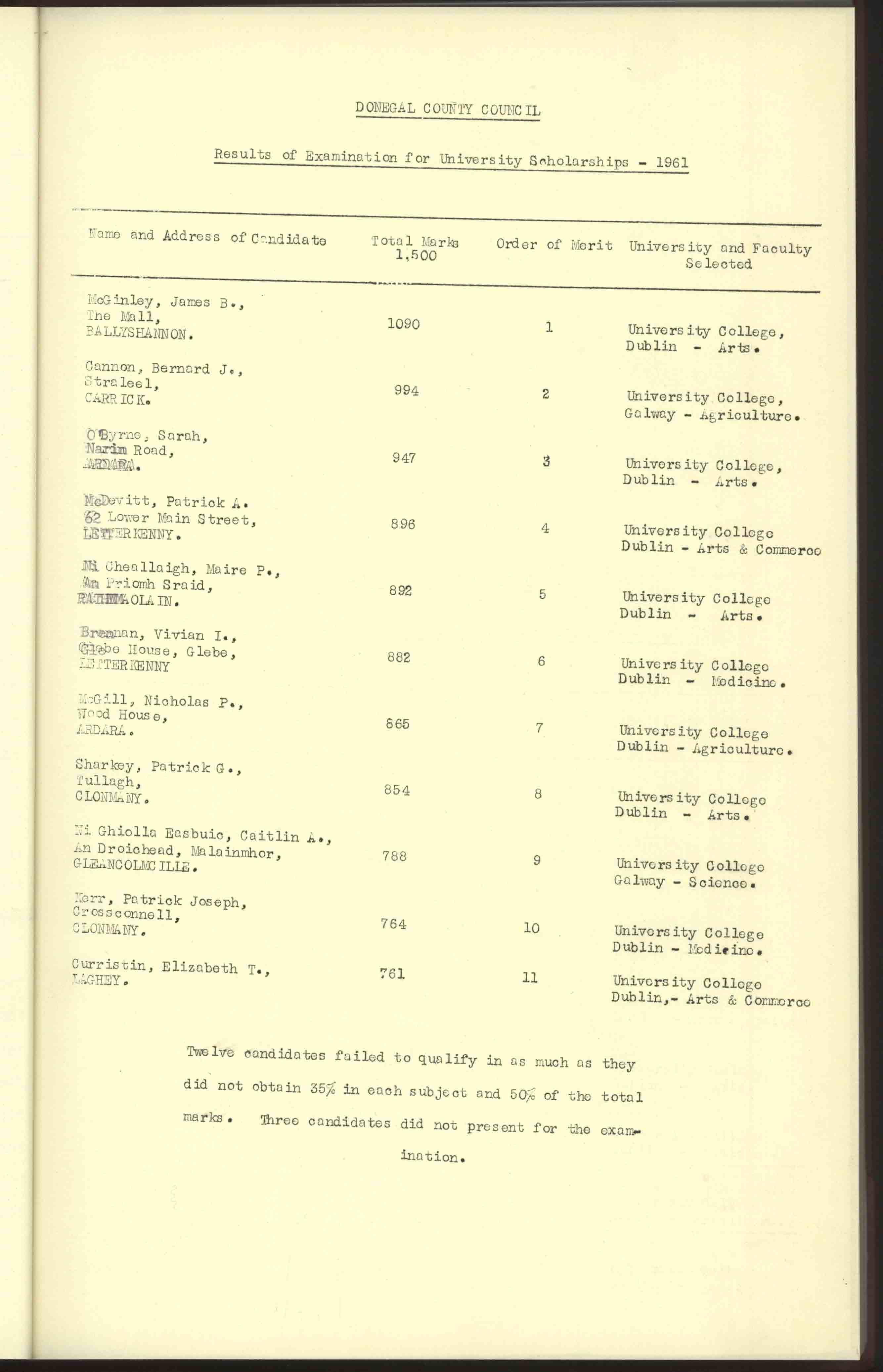 Donegal County Council Minutes, 1961