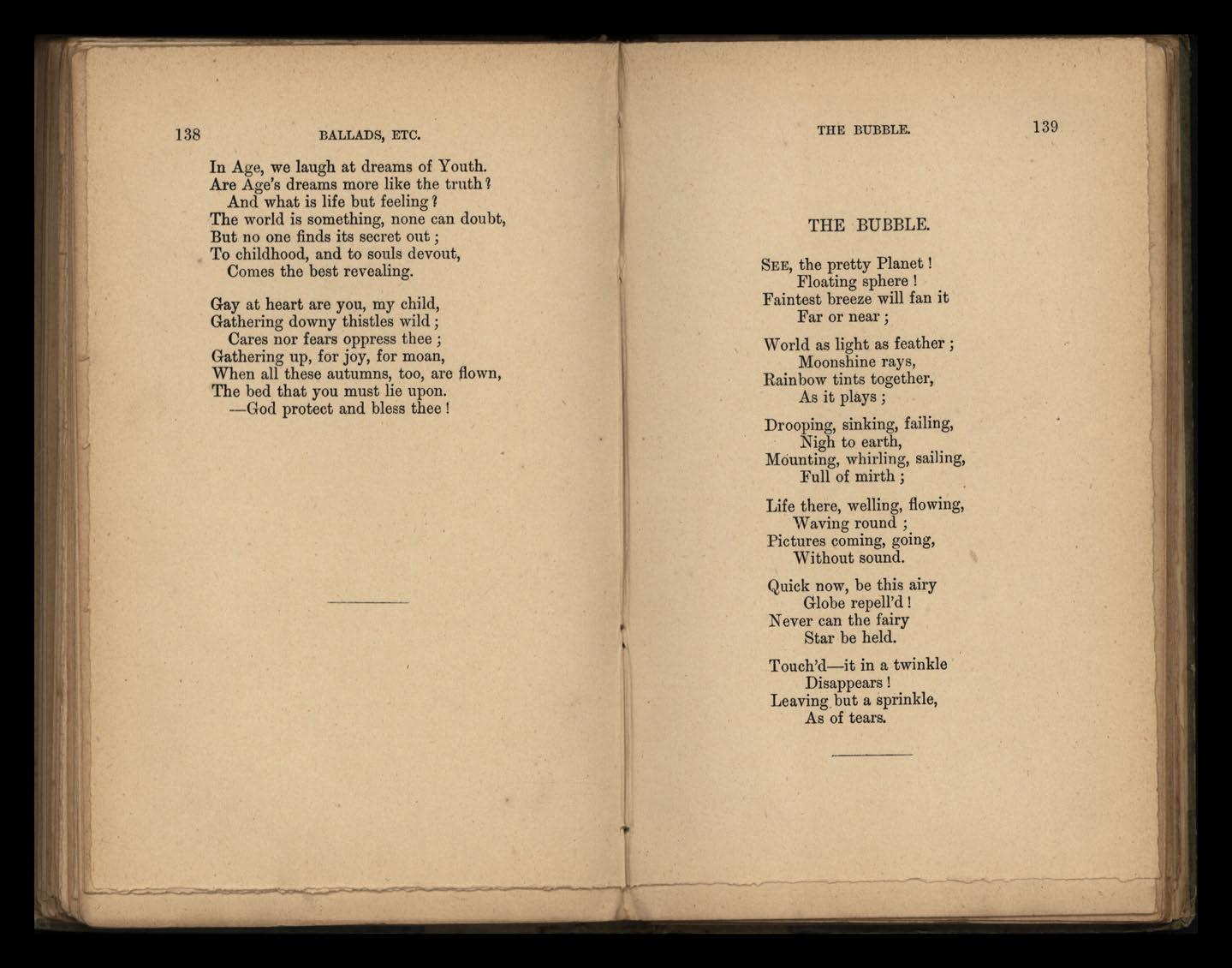 She sung to him, she spake to him: 'Why lure my brood away, By human skill, and human fraud, Up to the burning day Oh, happy live the little fish! So happy-might'st thou know This moment 'twere thine only wish To come to us below.