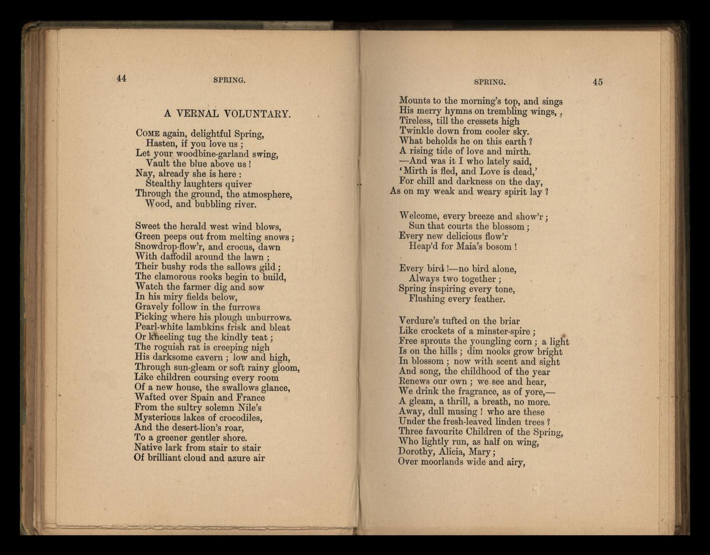 THE LOVER AND BIRDS A HOLIDAY - IN A SPRING GROVE THE LITfLE DELLA SEED A VERNAL VOLUNTARY SPRING. BY THE MORNING SEA 'FOUR DUCKS ON A POND' WINDLASS SONG THE FIELDS IN MAY SPRING IS COME A RAINBOW ACROSS THE SEA THE ON THE SUNNY SHORE THE WAYSIDE WELL HALF-DREAMING EVEY