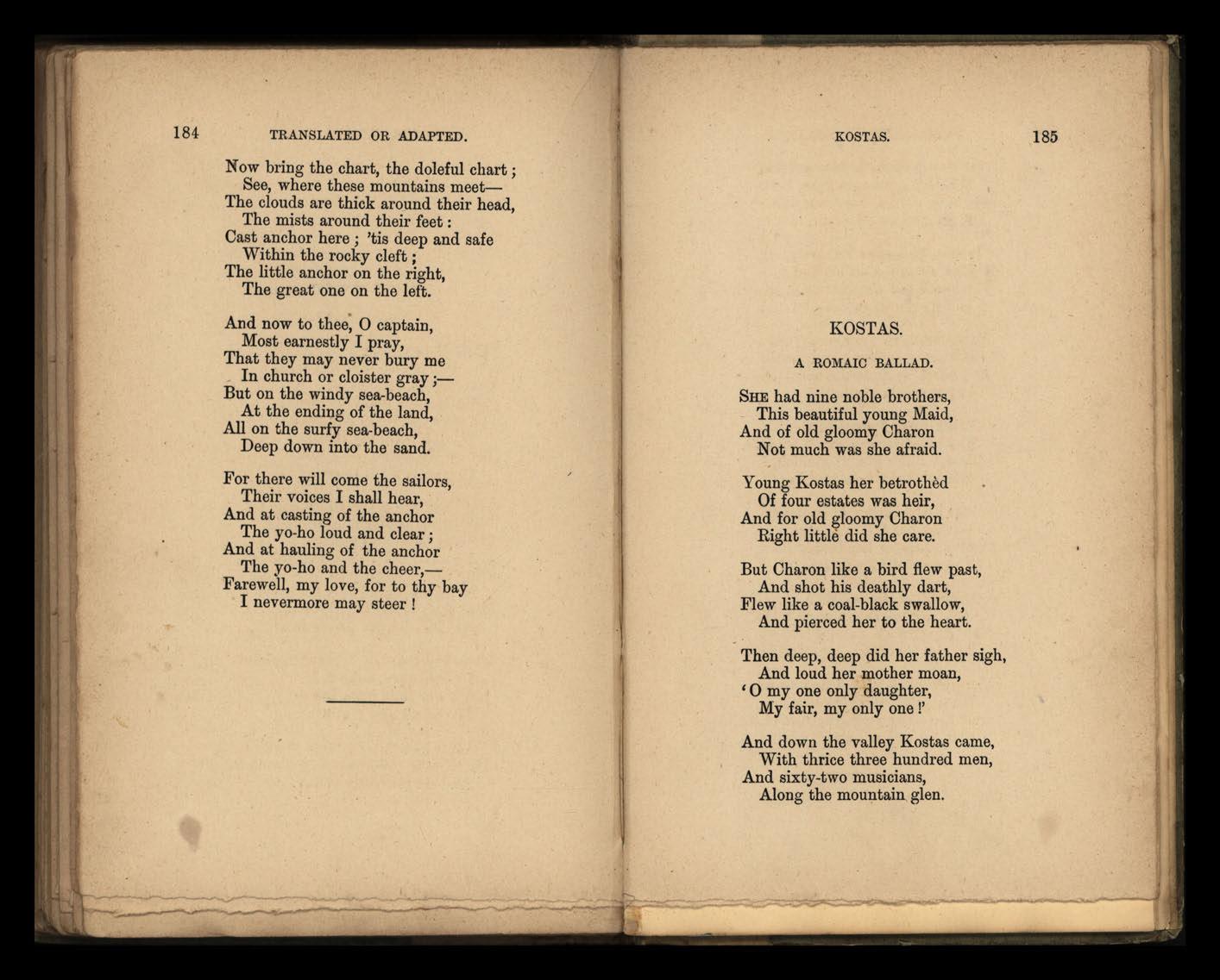 Young Kostas her betrothed Of four estates was heir, And for old gloomy Charon Right little did she care.