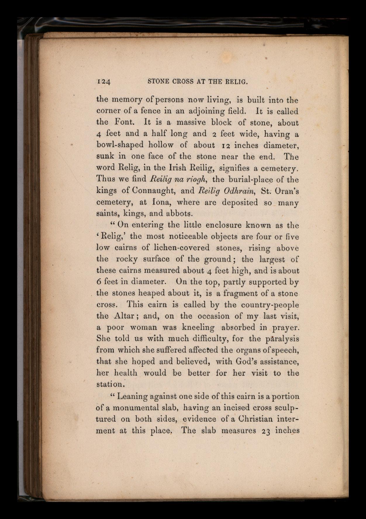 da:ff; the numerous cromleachs; the fine old stone crosses, since the days of St. Patrick and St. Columbkill; and the holy wells, which are to be found in almost every parish, dedicated to some favourite saint.