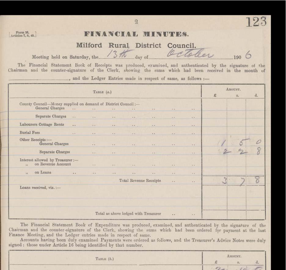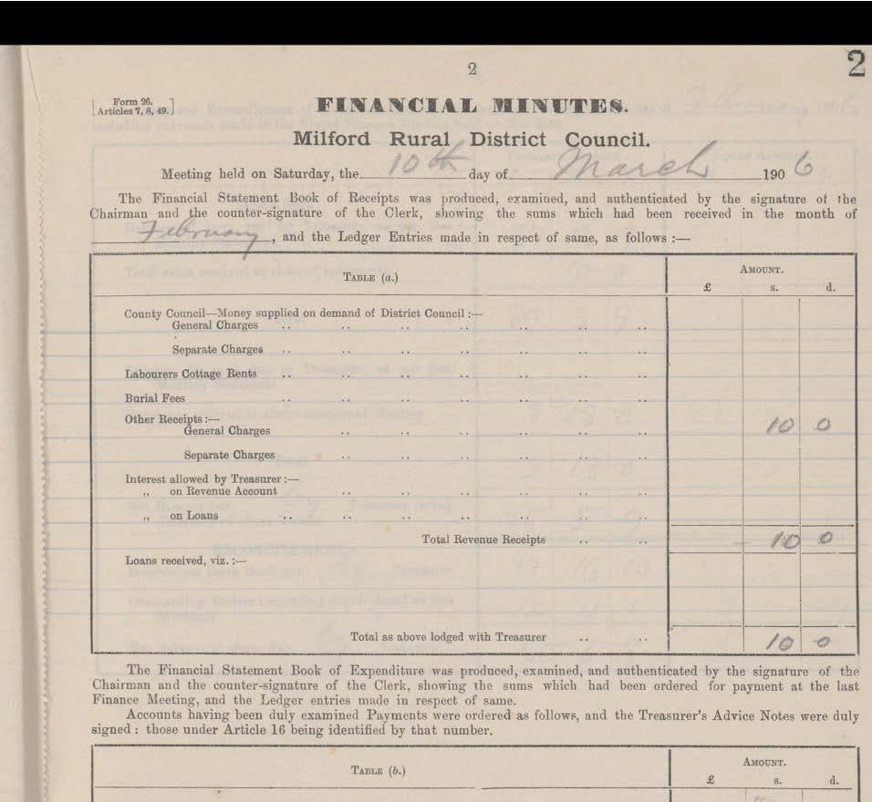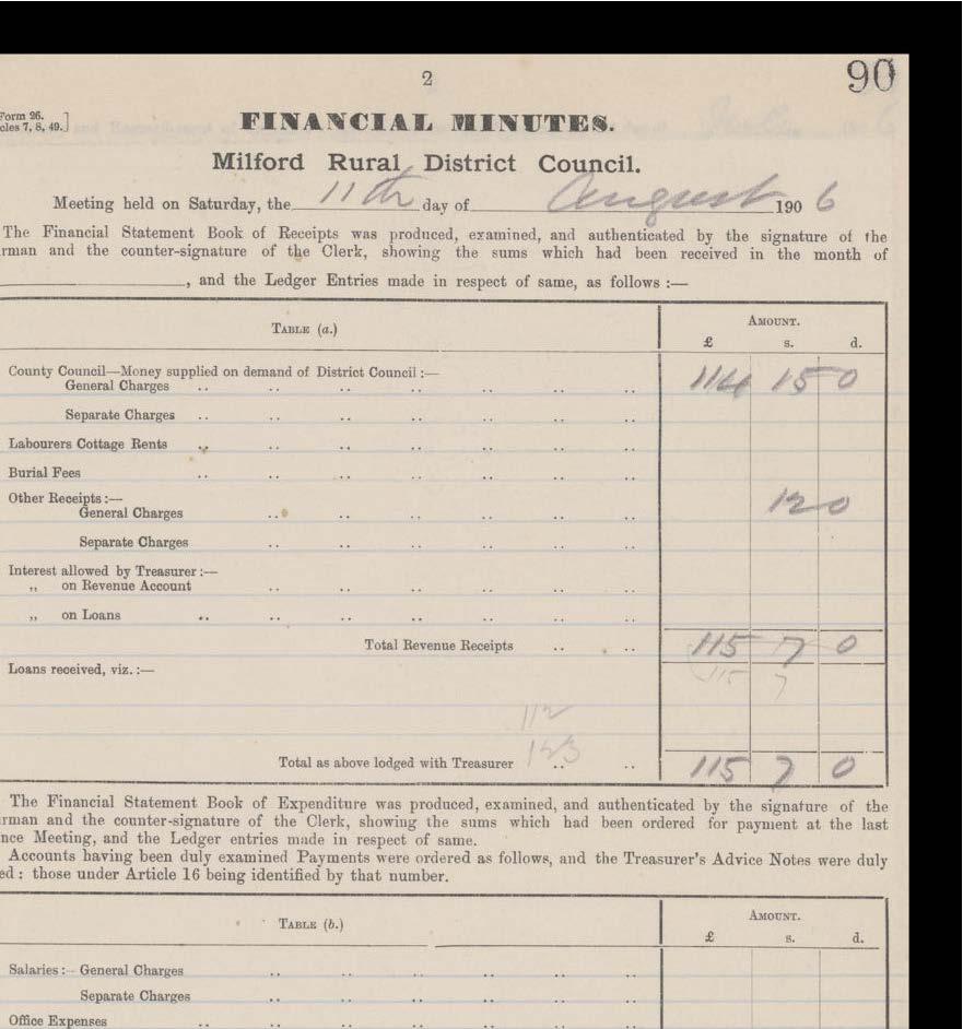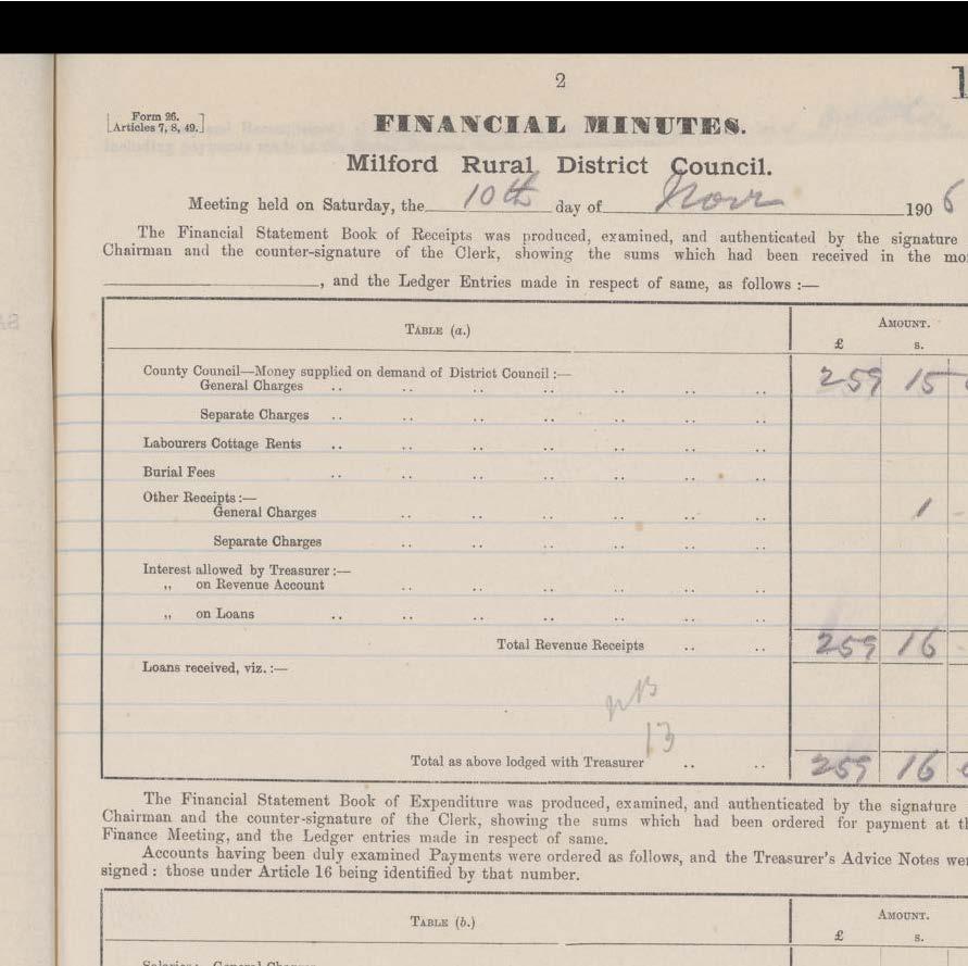 Milford Rural District Council Minutes, March 1906 - Nov 1906