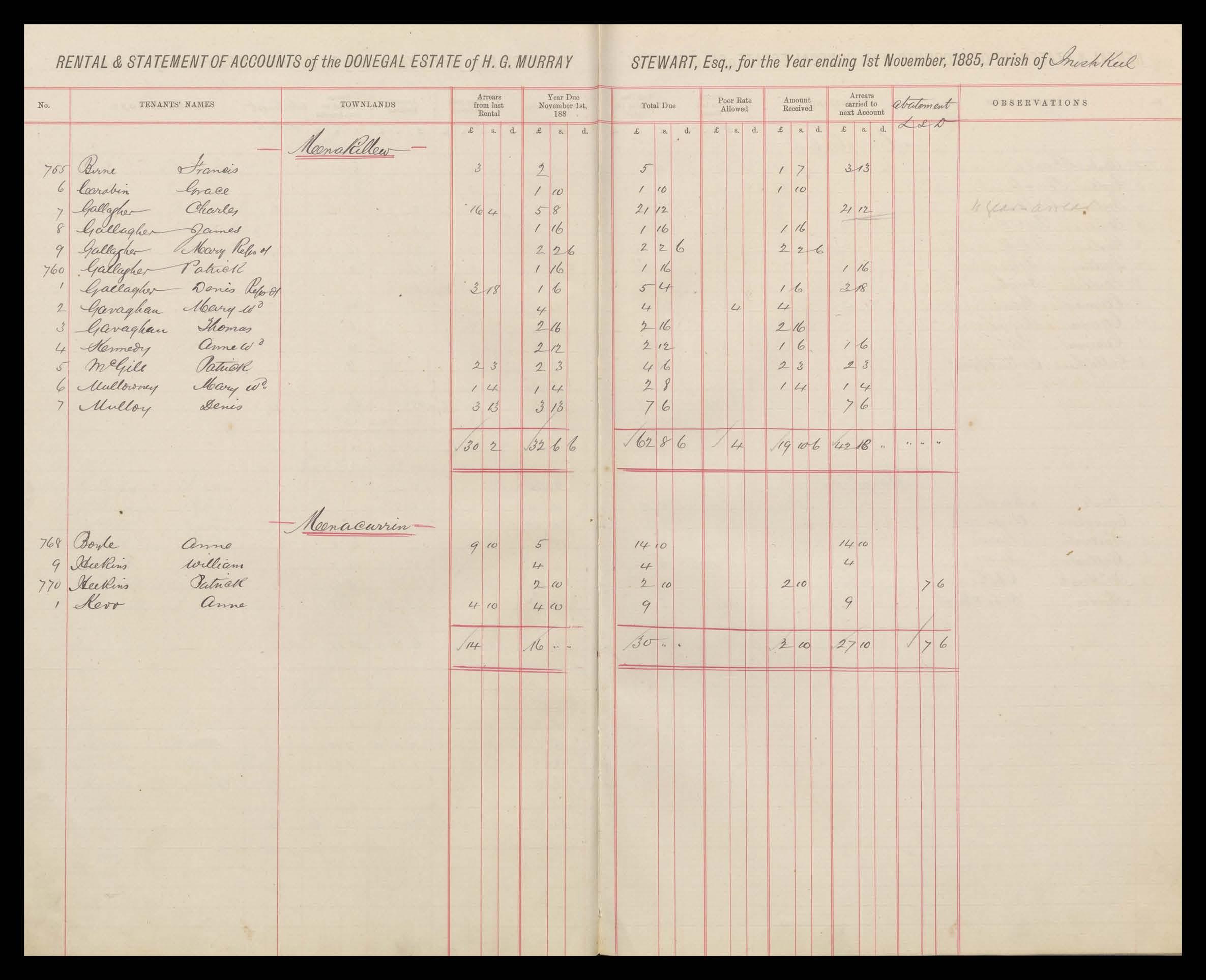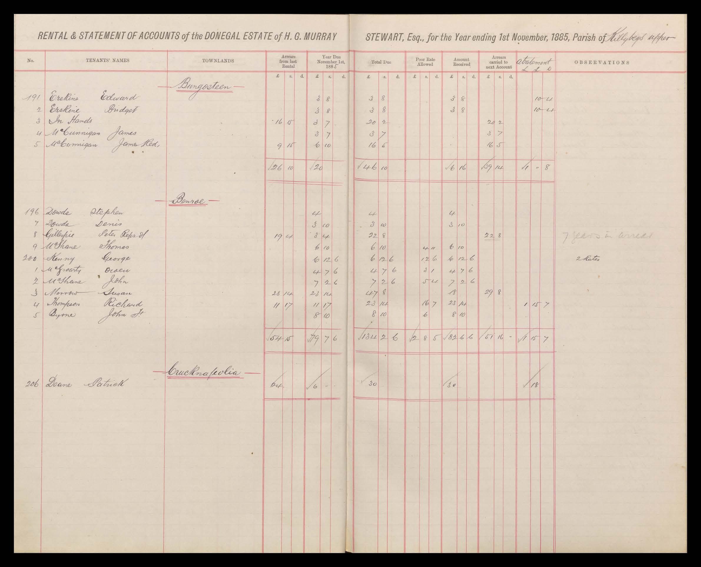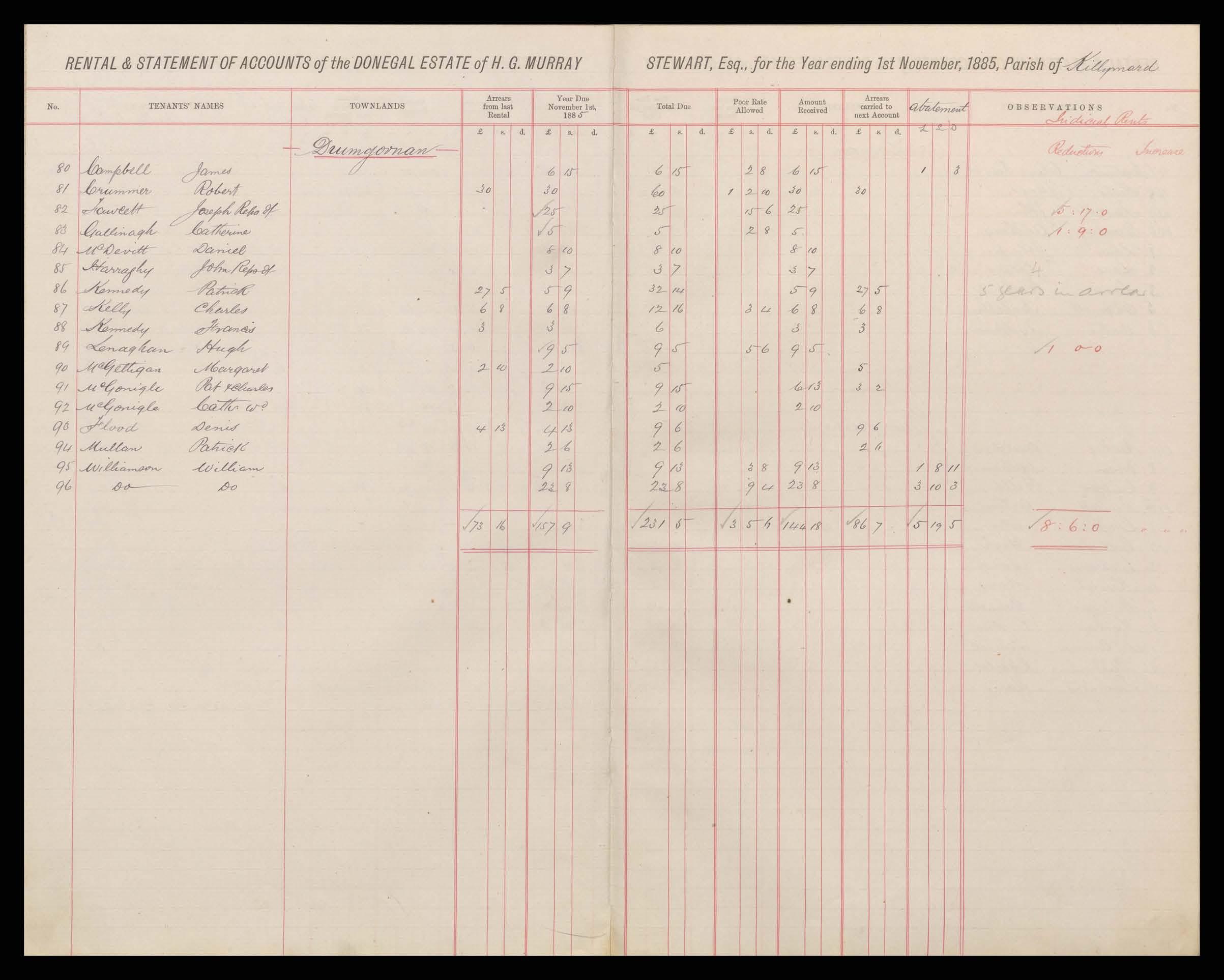 Murray Stewart Rental 1885 - 86