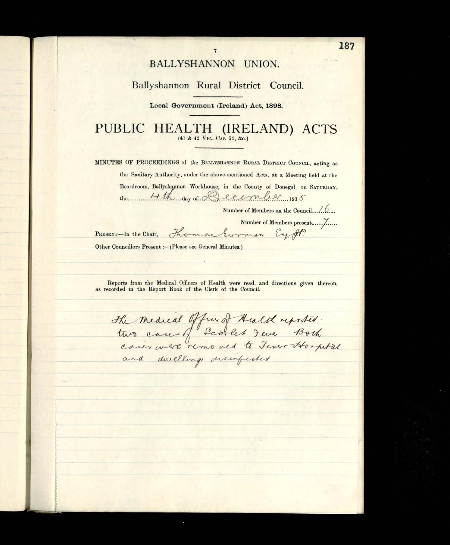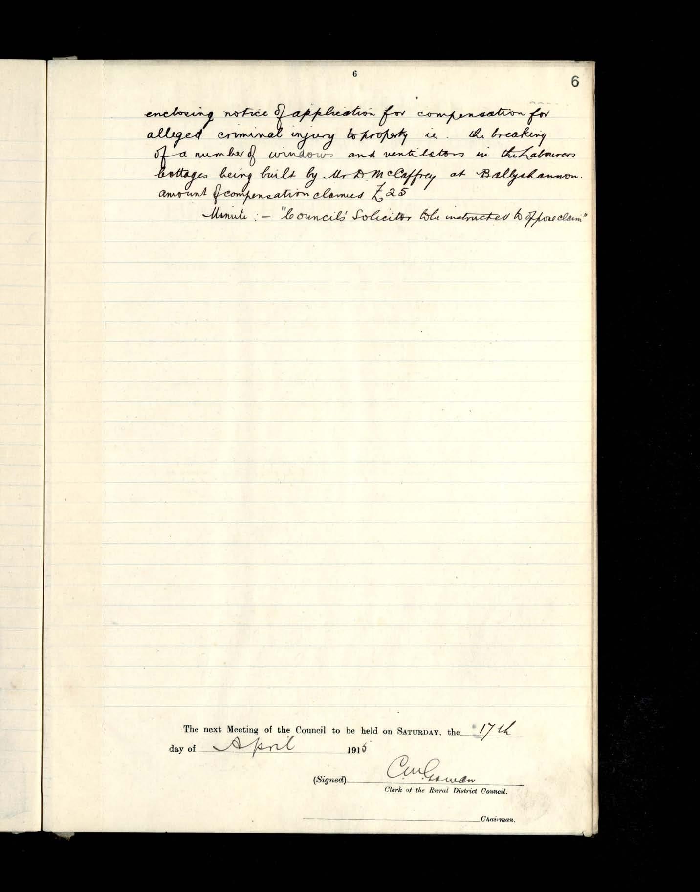 RDC_1_1_12 - Ballyshannon Rural District Council - Minutes of Meetings - 3 April 1915 to 3 June 1916