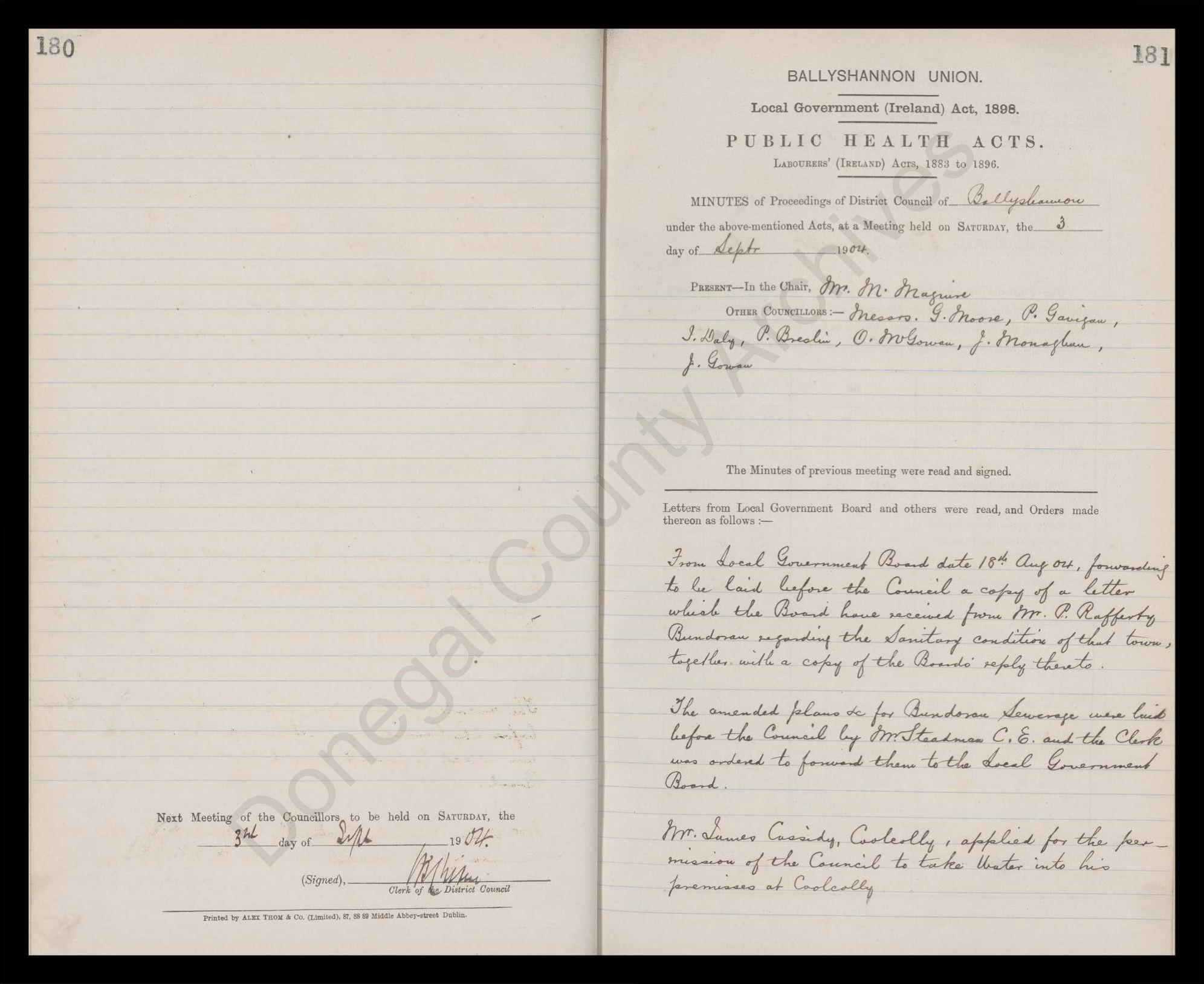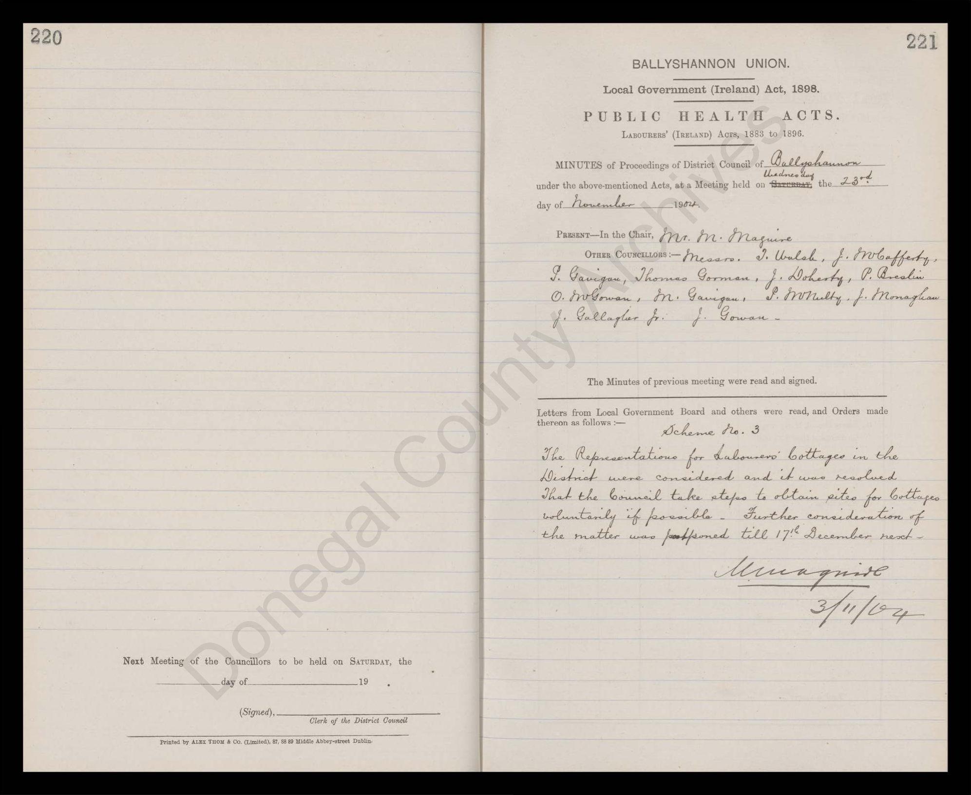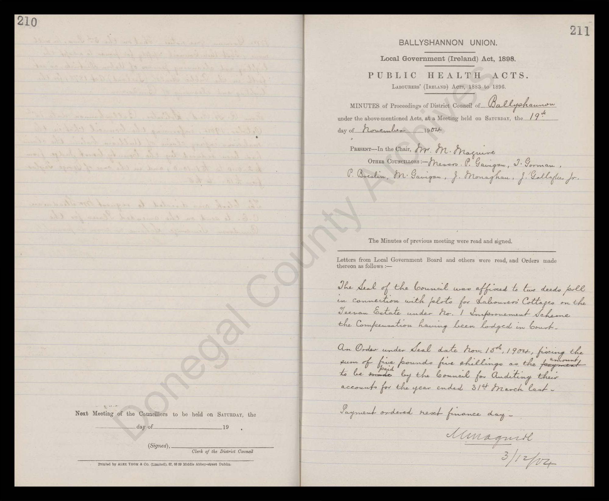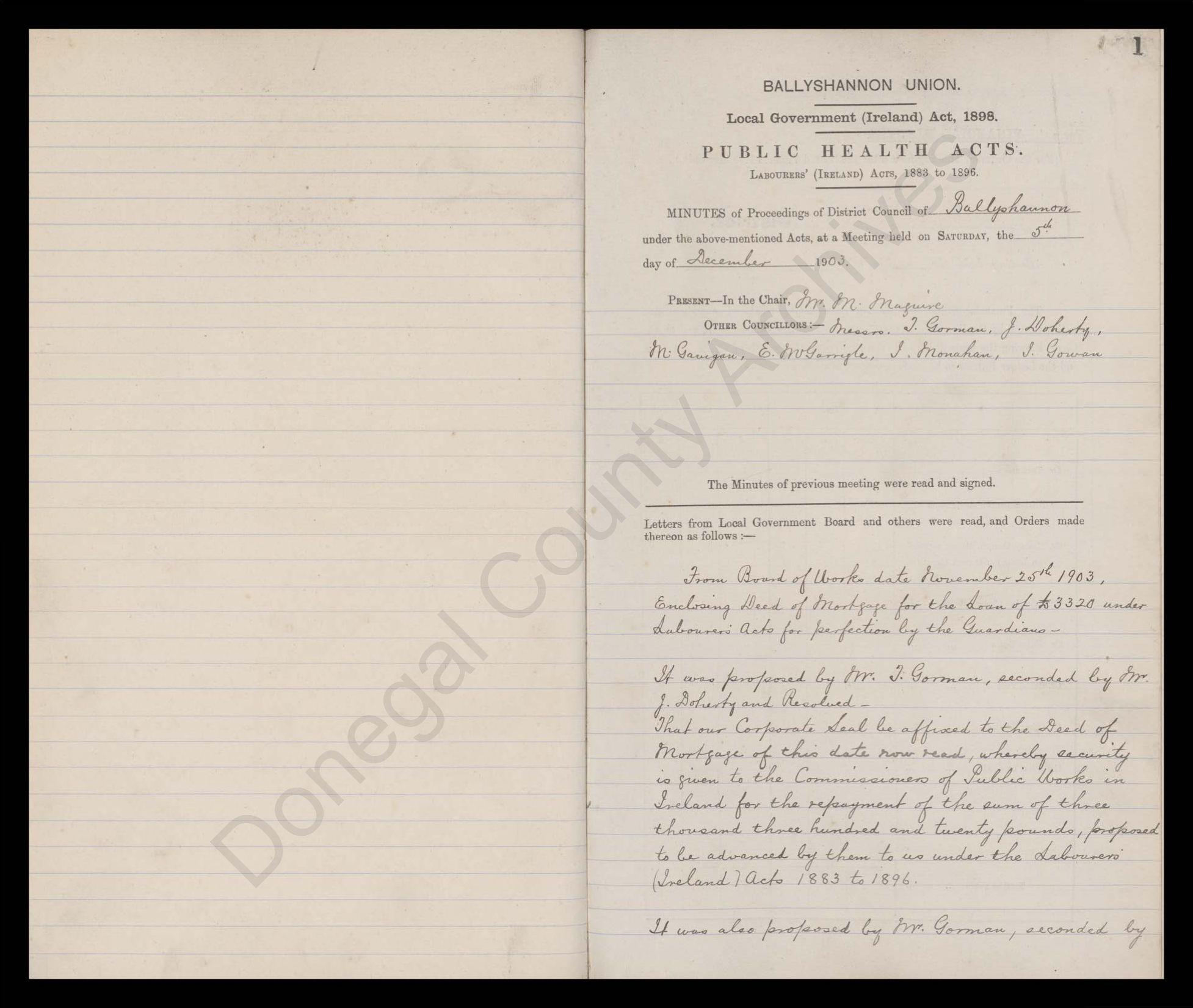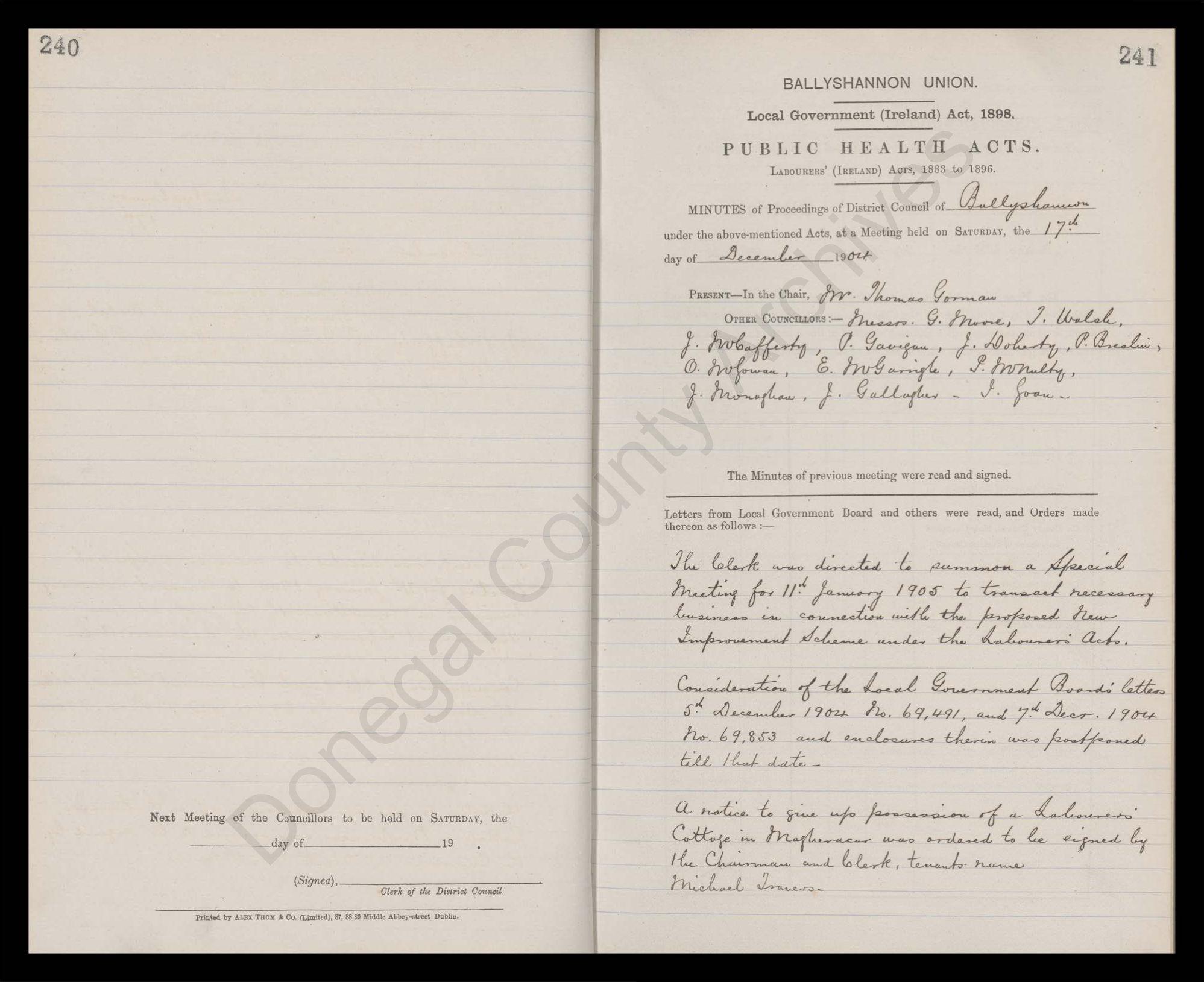Ballyshannon Rural District Council Minutes, Dec 1903 - Jan 1905