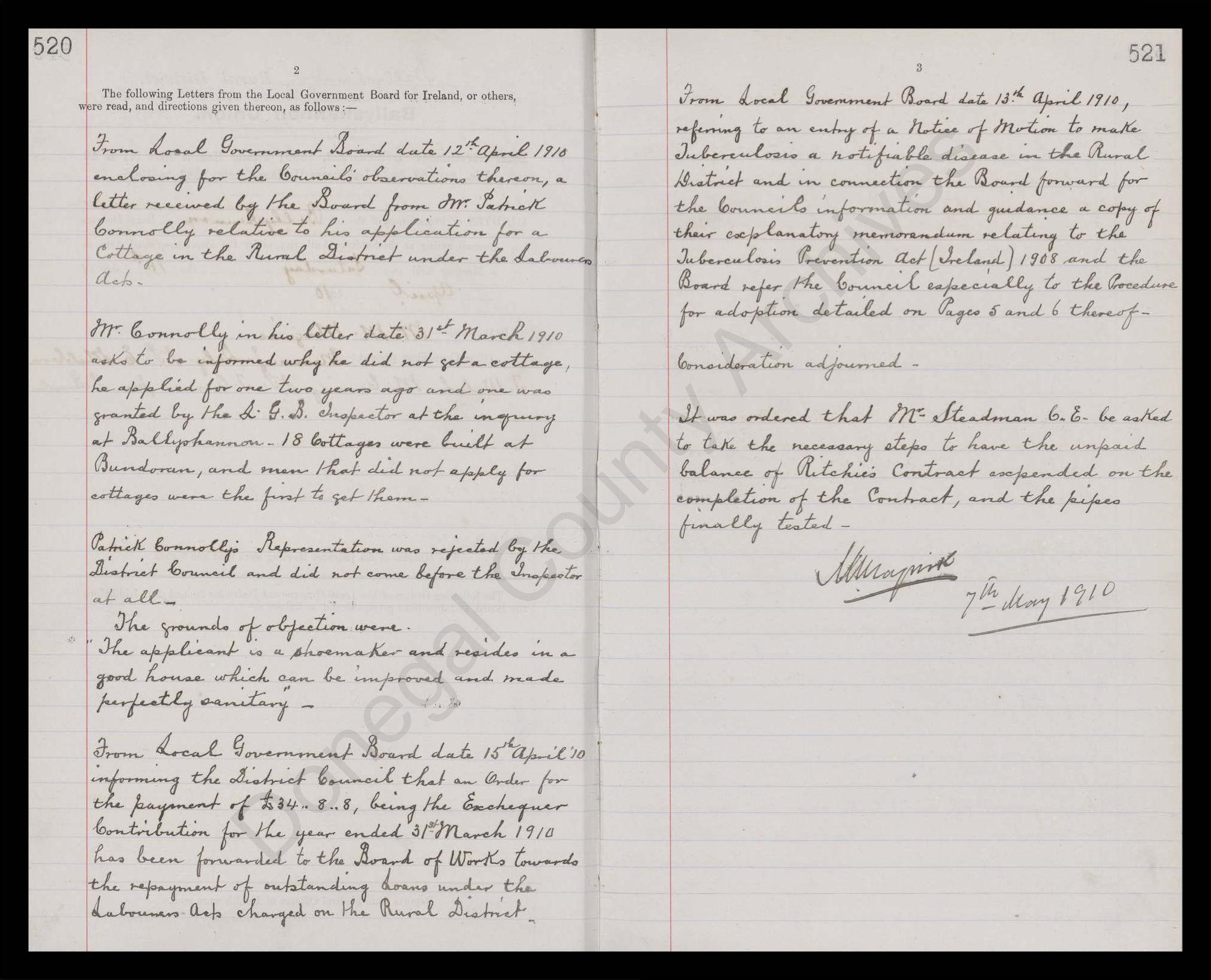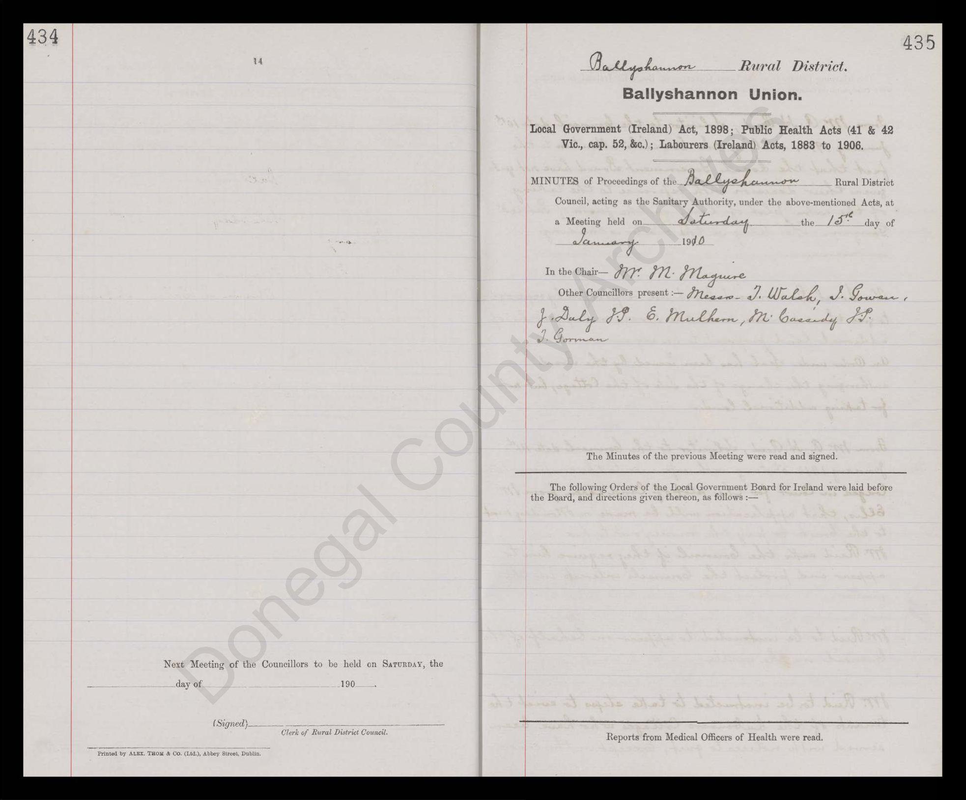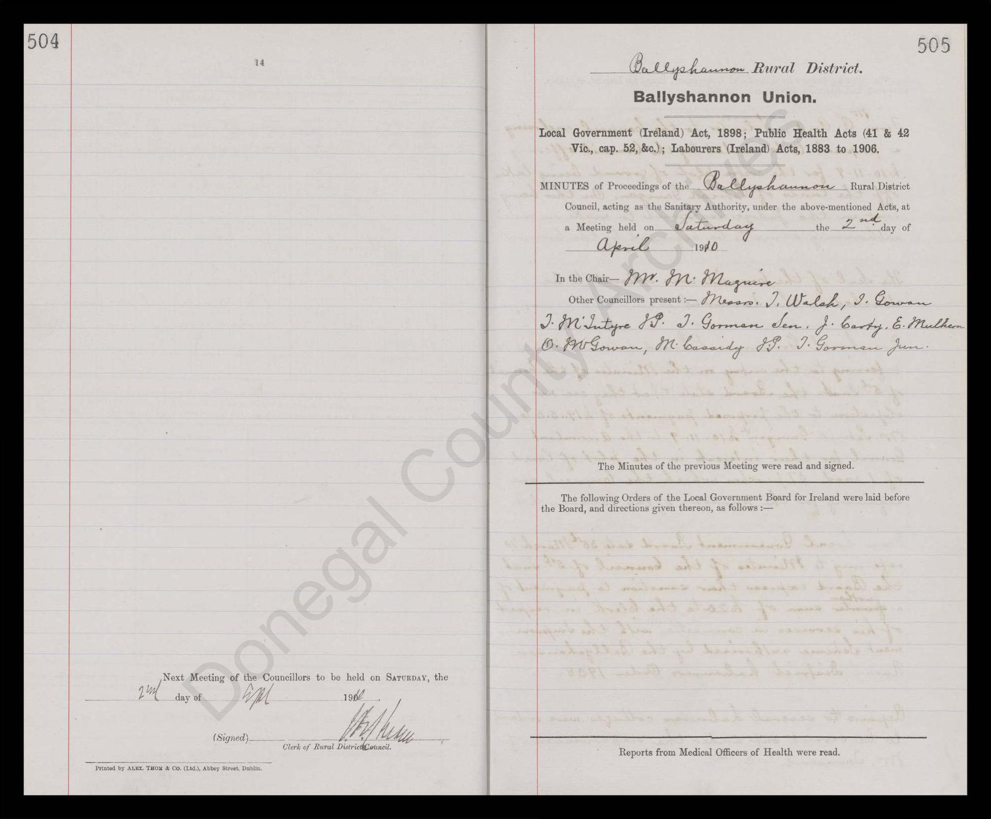 Ballyshannon Rural District Council Minutes, June 1909 - April 1910
