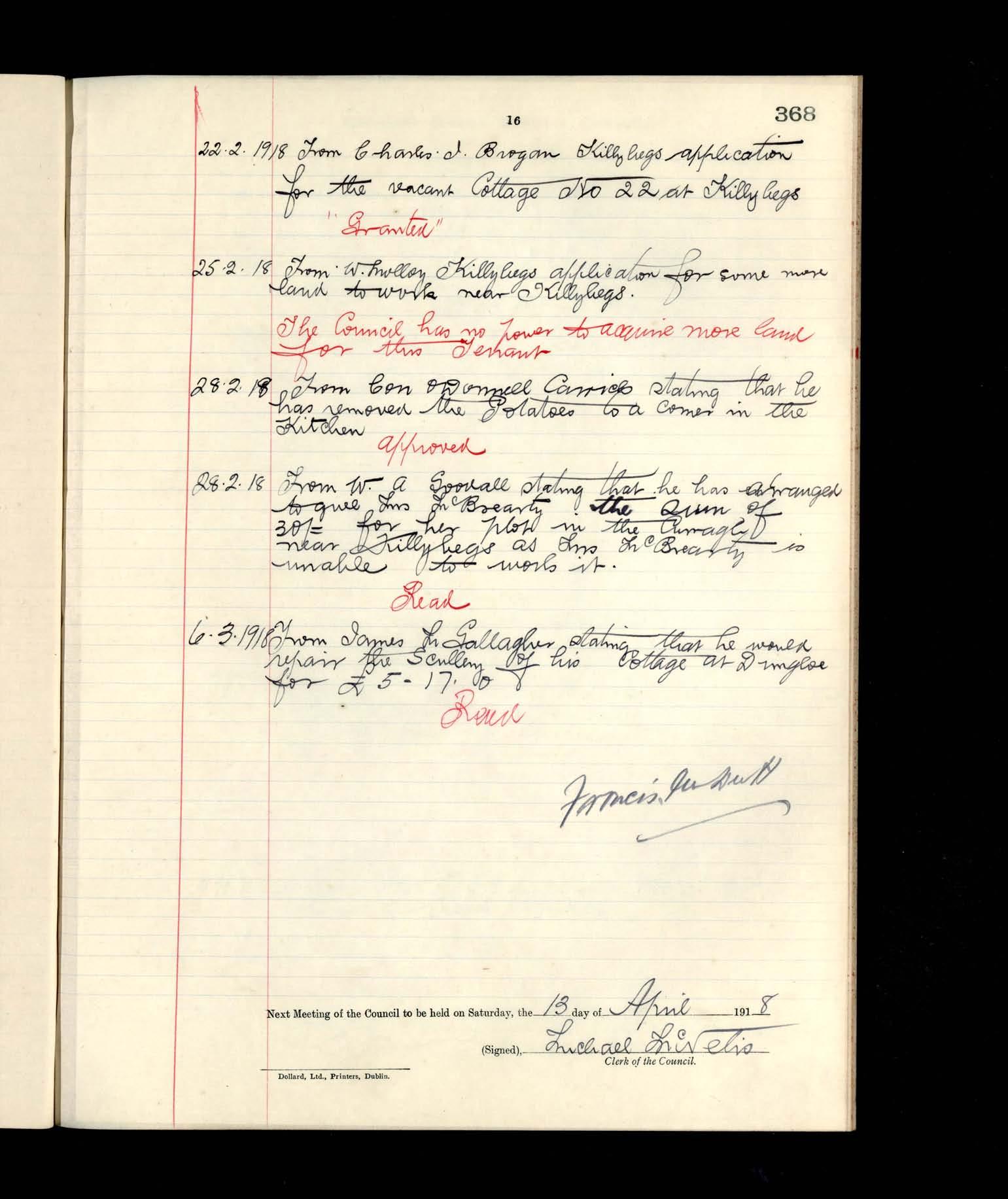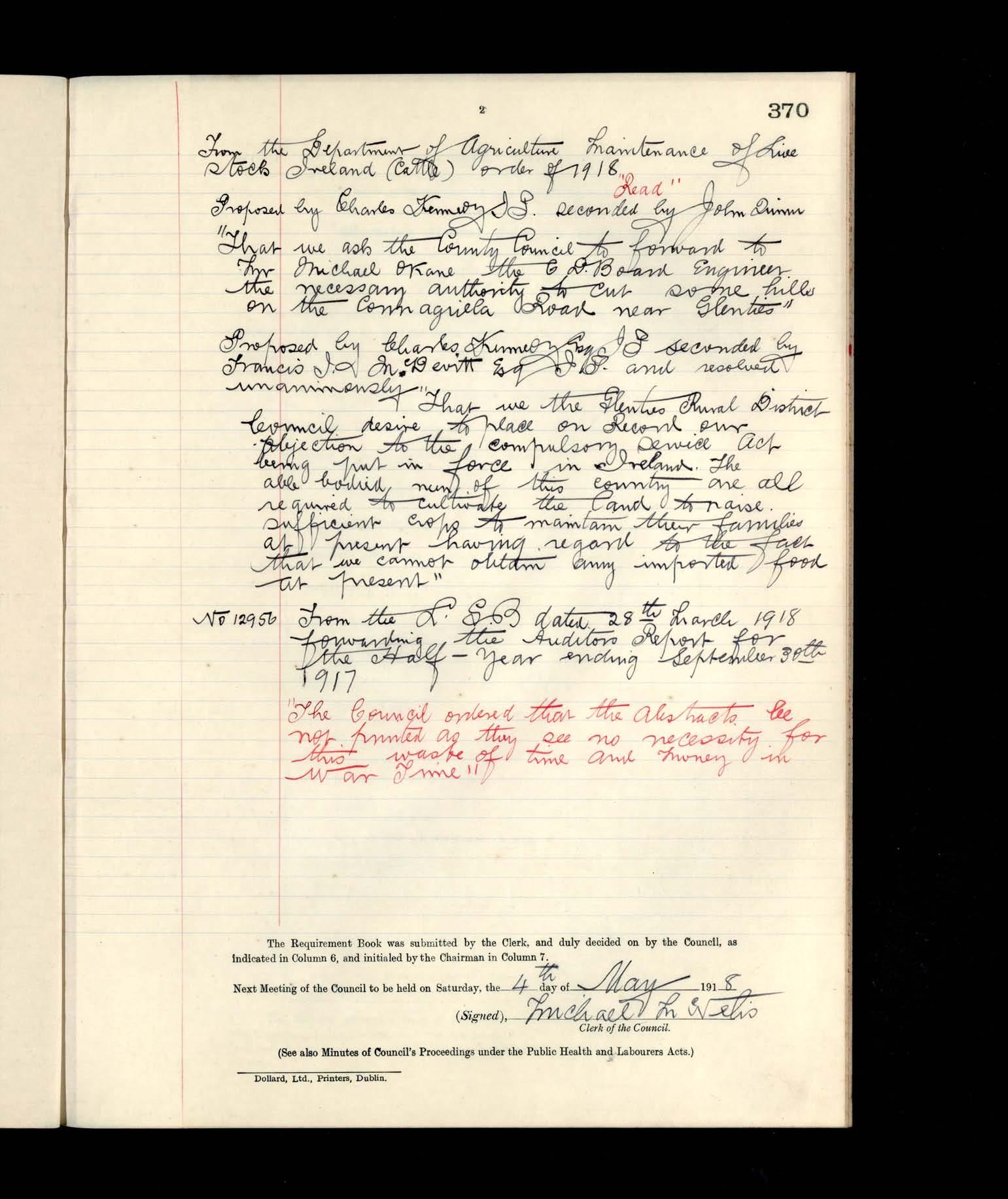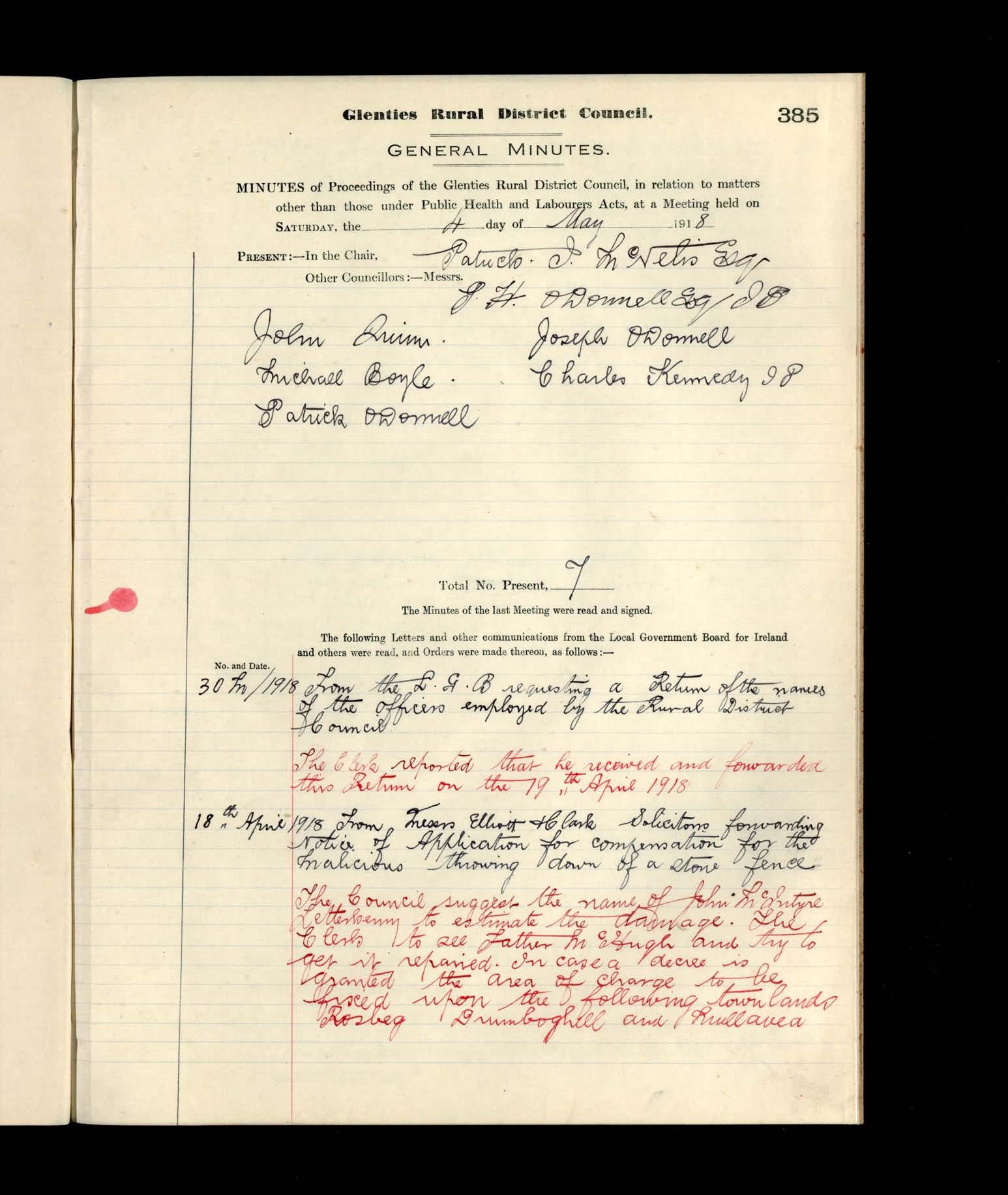 RDC_4_1_11 - Glenties Rural District Council - Minutes of Meetings - 28 October 1916 - 1 June 1918_P