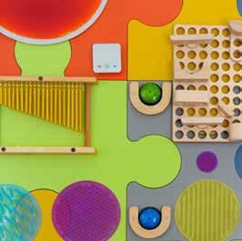The library has a sensory wall and a Tovertafel. I can play with all the fun toys on the wall and I can ask permission to use the Tovertafel.