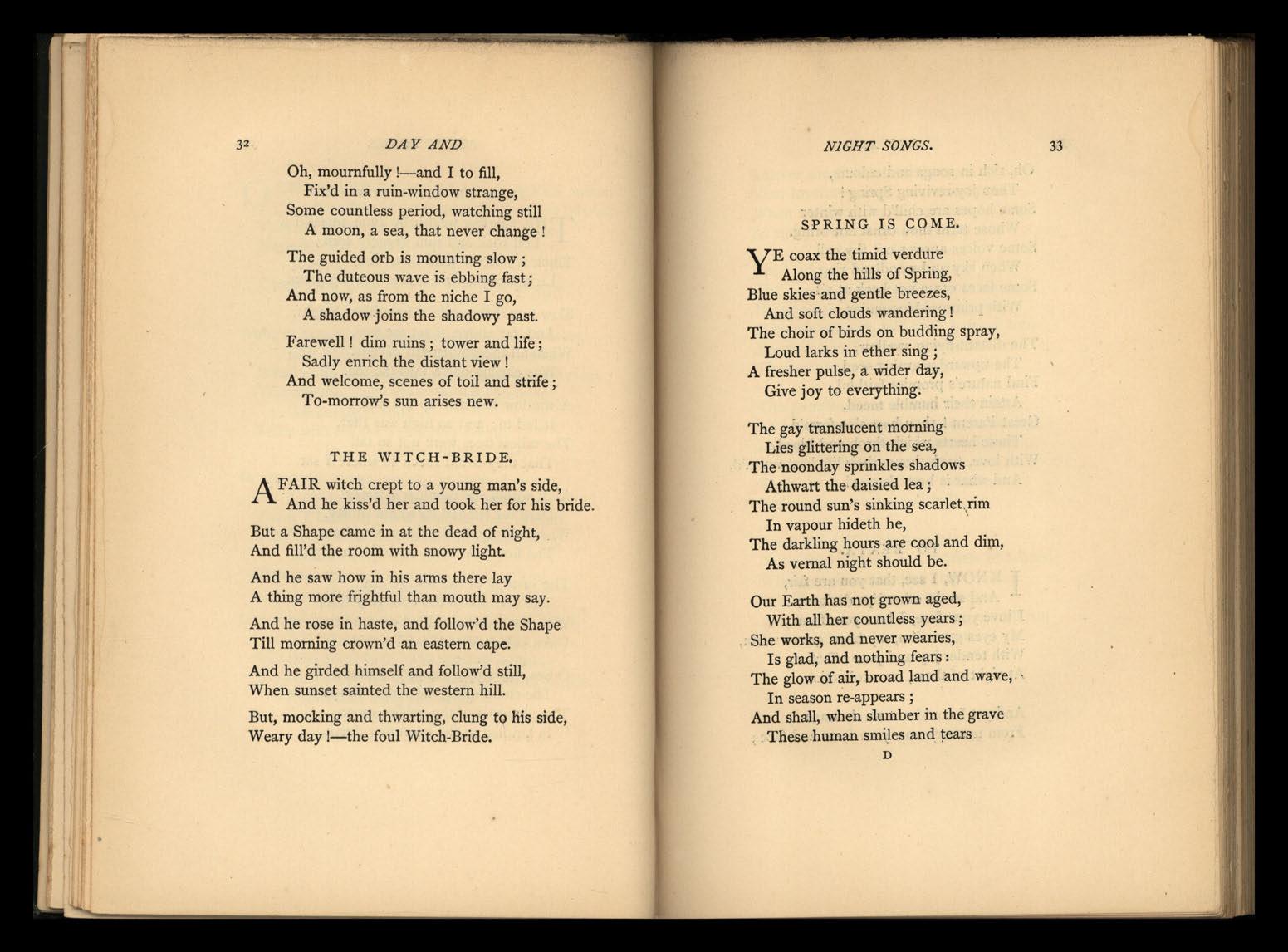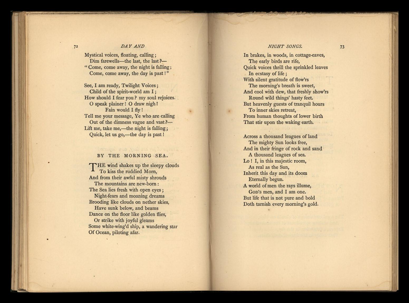 The sympathetic reader may be trusted to see that the division into" Day and Night Songs" and "Songs and Ballads," is not arbitrary; and also that the word "Songs" is not always or generally used in the strictest sense. ' But here and there comes a Song proper.