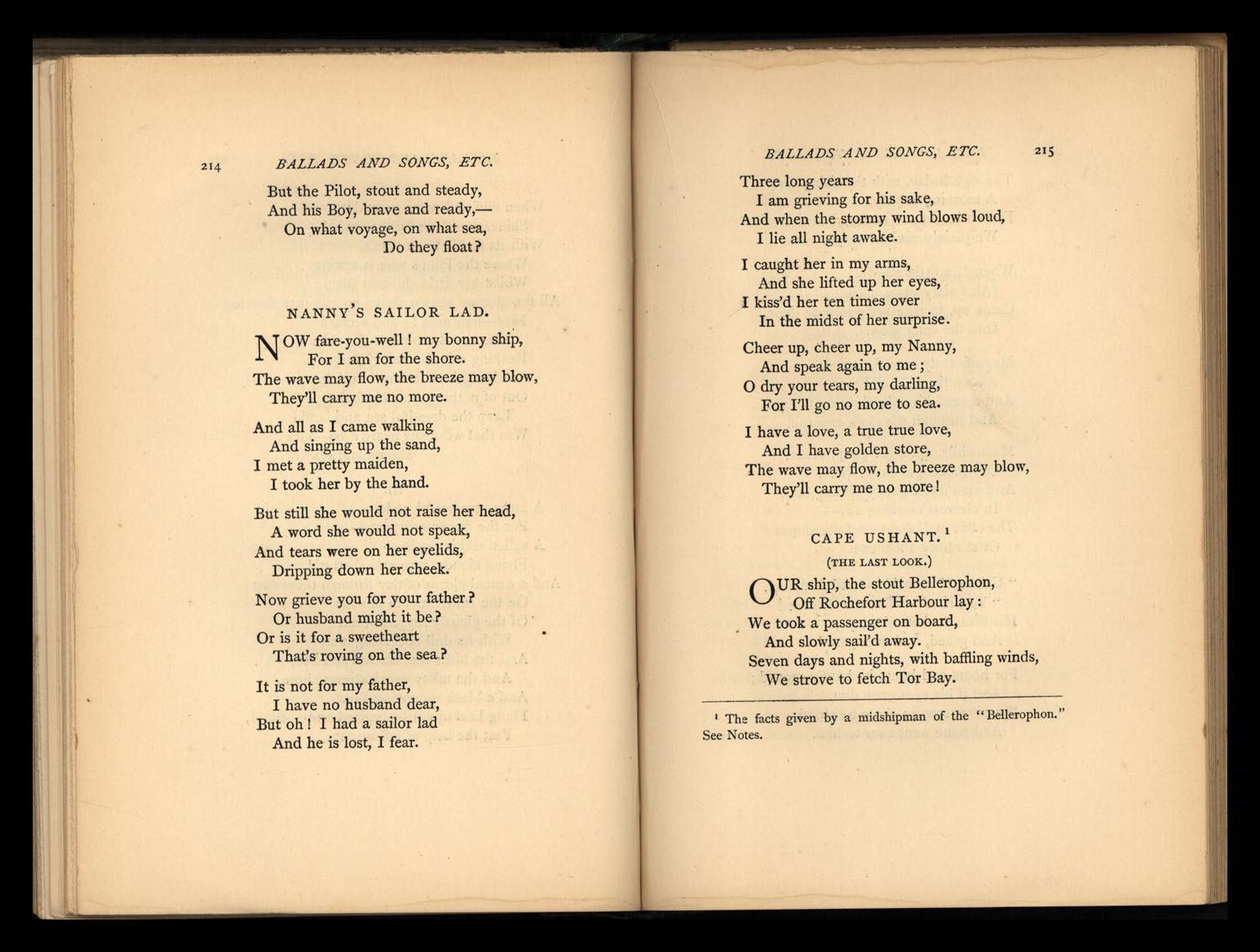 "Cape Ushant." A real incident. The day was Sunday, the 23rd of July, 1815. See Captain Maitland's Narrative of tile Surrender of Bonaparte, p. 109 (London: Colburn, 1826), also Memoirs of an Aristocrat, and A11ecdotes of Napolelm (London: Whittaker, 1837).