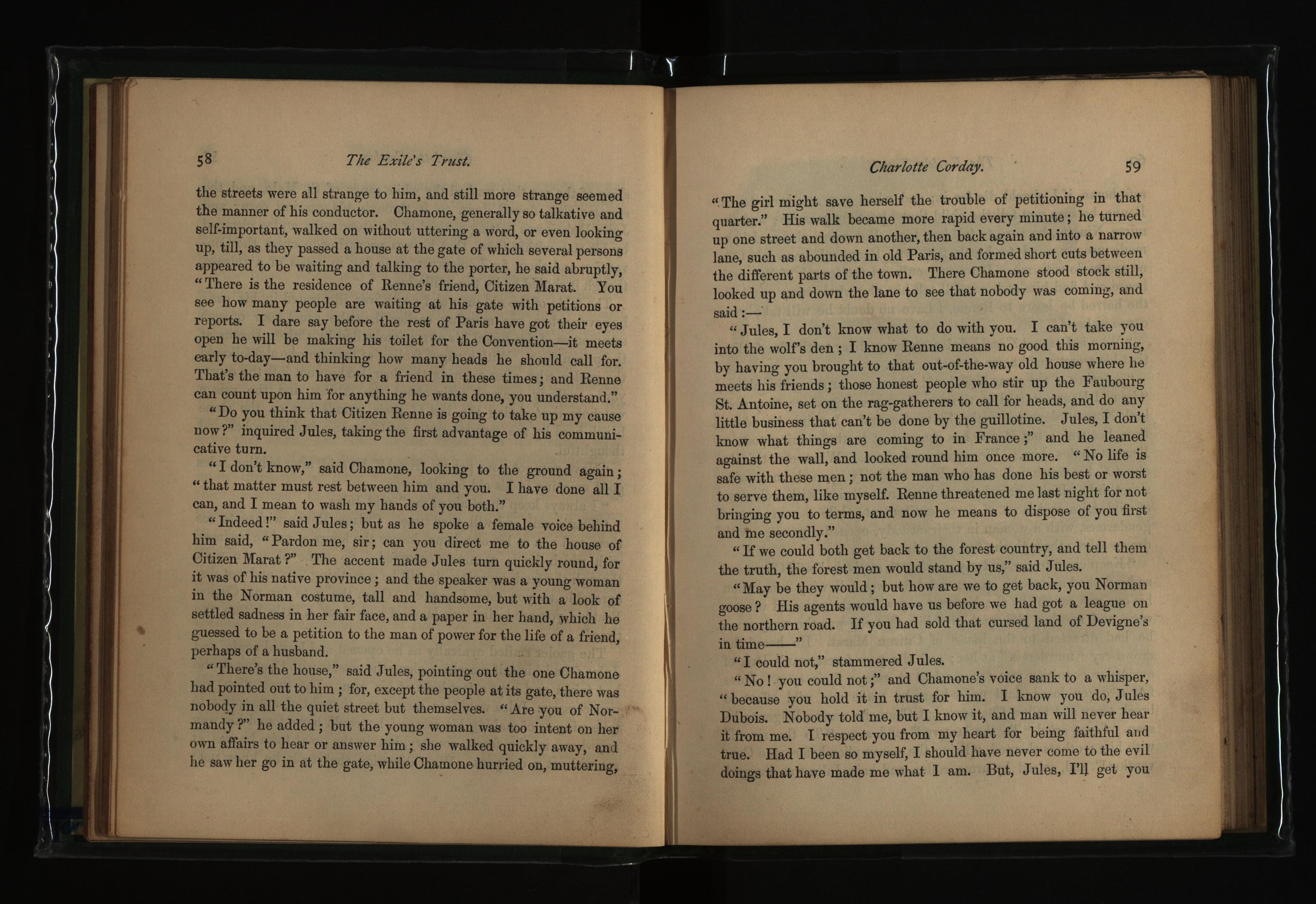 prudent man would dare to whisper a dissenting thought; and .Jules was prudent as man could be. The peasants saw him working in his fields, attired like themselves, or rather plainer; they knew that he lived in the kitchen of the chateau, and had nothing but common fare on his table; they were aware that he had walked a long way to get a certificate of good citizenship from the mayor of the commune, and had come forward as readily as any of them to take his chance of being chosen for the army of the North. The poor of St. Renne found Jules as good a friend as his master had been: and all these considerations, together with his having been the adopted son of the yet unforgotten Father Bernard, weighed so heavily in his favour, that, instead of envying ()r finding fault with him, his neighbours agreed that it was well he had got so good a bargain from the aristocrat; honest men ought to get the good places which tyrants had kept so long. But Jules was not to occupy his good place much longer in peace.