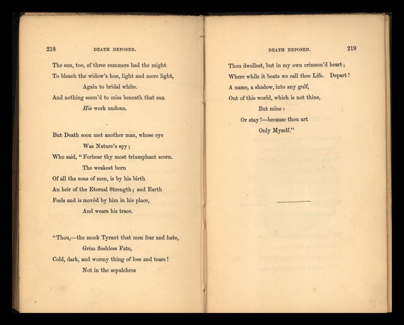DEATH stately came to a young man, and said " If thou wert dead, What matter?" The young man replied, " See my young bride,