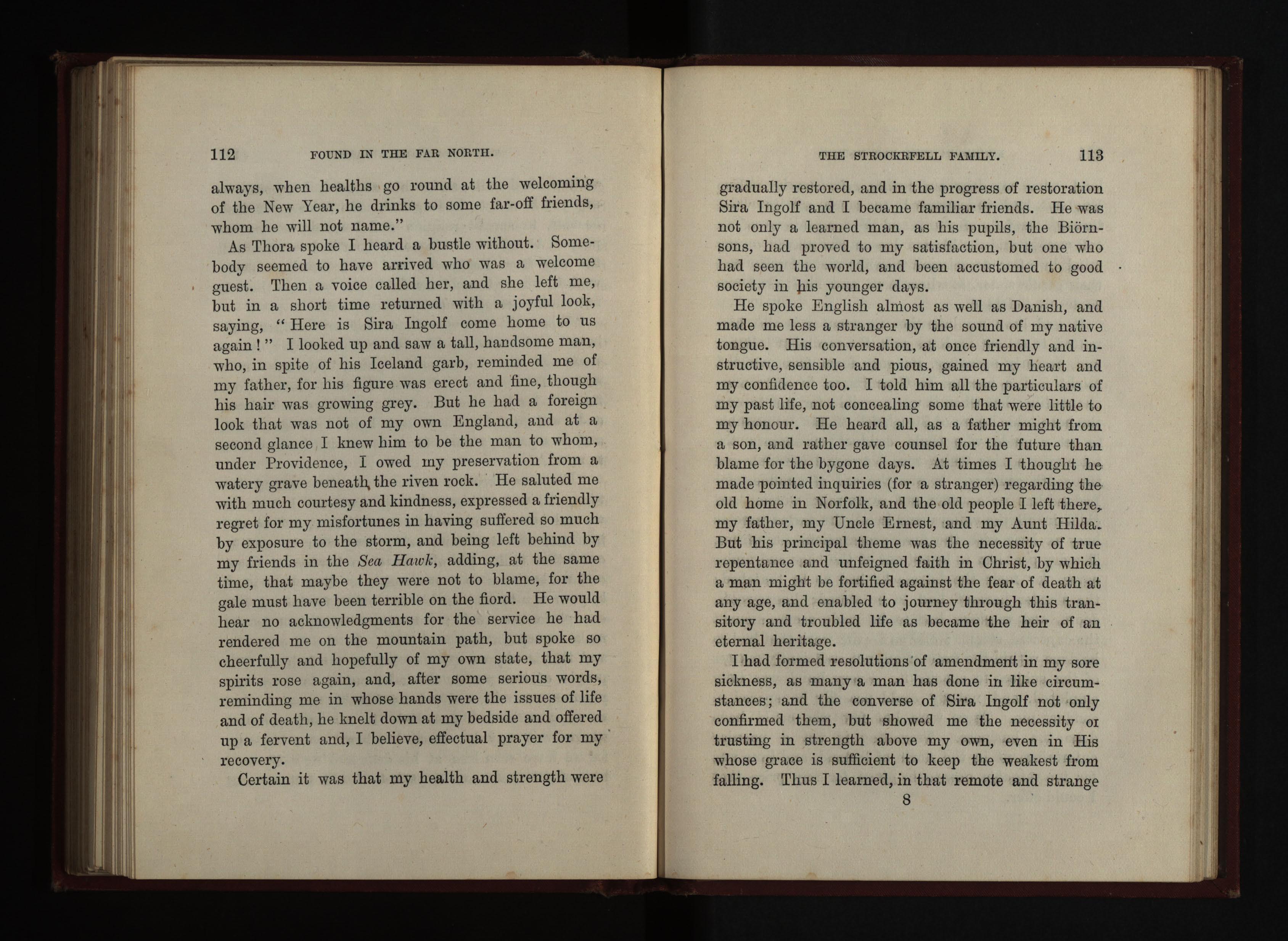 The young creature thus wonderfully preserved and saved from the storm and the sea, which had swallowed up the great ship and its strong men, was a beautiful boy, in the middle of his second year, as Eba guessed, with fair hair and a fair face, though somewhat of a foreign cast; and the small attempts which he made at speech had a foreign sound too.