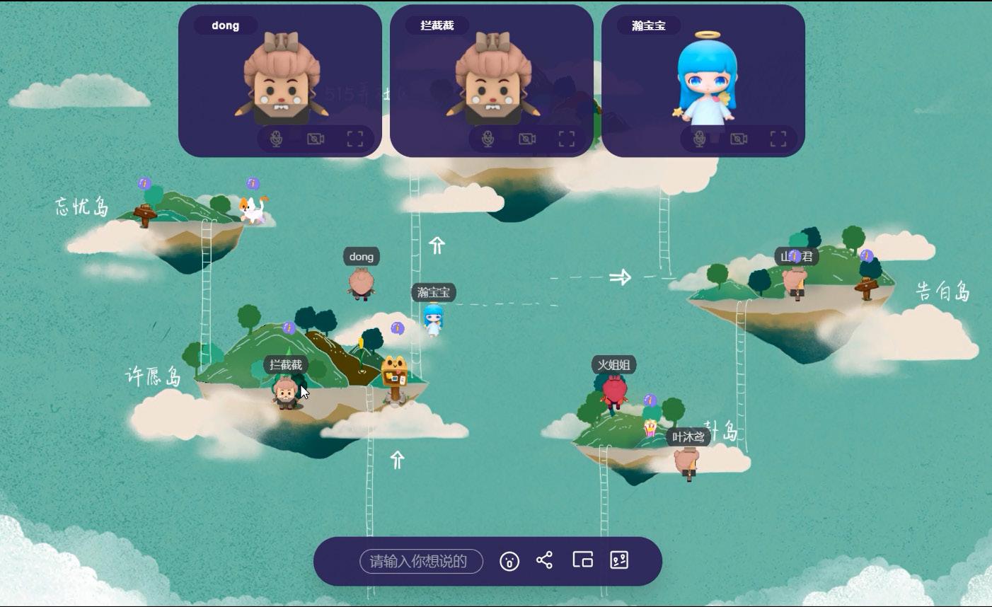 This is a real-time interactive community created on the online platform Vland, designed for friends to gather and chat online during home quarantine due to the pandemic. It features hand-drawn backgrounds and immersive experience with multiple story scenarios, including announcements, testing and health checks, group food purchases, and stargazing on the rooftop.