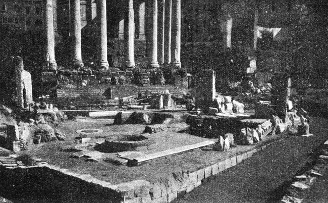 La Regia, questo centro religioso e politico di Roma monarchica, fu pure oggetto di cure speciali, che portarono al ritrovamento di una struttura quadrata in tufo con rialzo circolare nella superficie superiore, una specie di altare, o di sacrarium della Regia, forse il luogo di custodia delle tradizionali aste di Marte (ved. tav. 94-95).