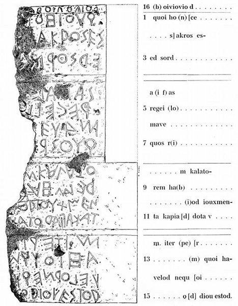 L'iscrizione della stele del Comizio, rinvenuta negli scavi del Foro Romano.