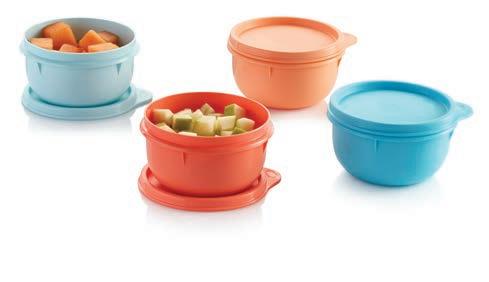 Includes 53/4-cup/1.4 L bowl with seal, 2-oz./60 mL Tupper® Mini container with seal, and snap-together fork and knife. Accessories attach to liquid-tight seal.