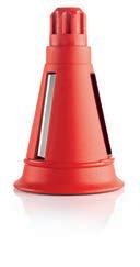 Slices, dices, and cuts into julienne, waffles, sticks, and more. Grooved pattern reduces friction, while v-shaped blade efficiently cuts a variety of ingredients.