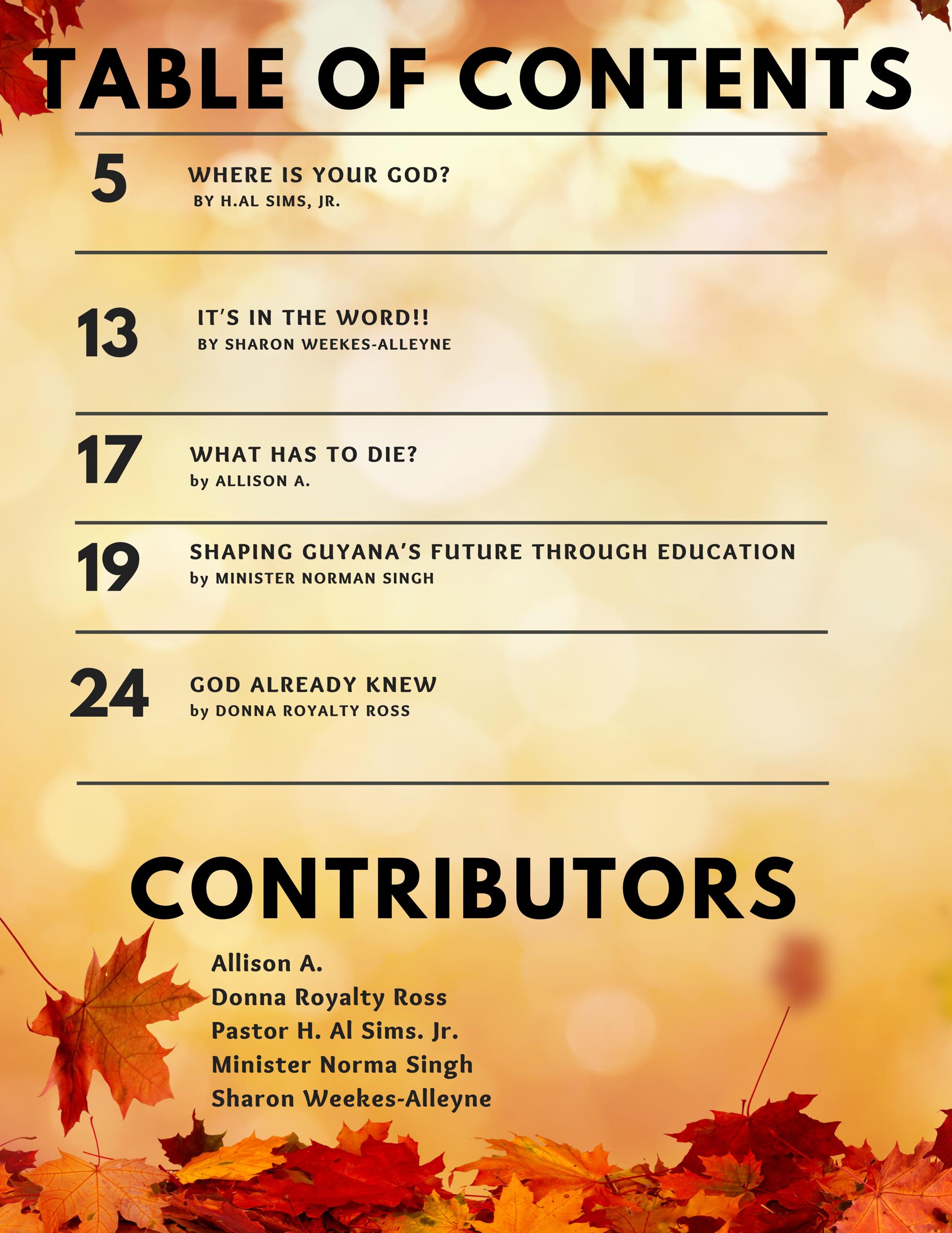 Our main objective in doing this interview is to consistently present our readers with articles that encourage heart transformation and mind renewal. With that said, would you please tell our readers how you, yourself, have been transformed by God and His Word ?