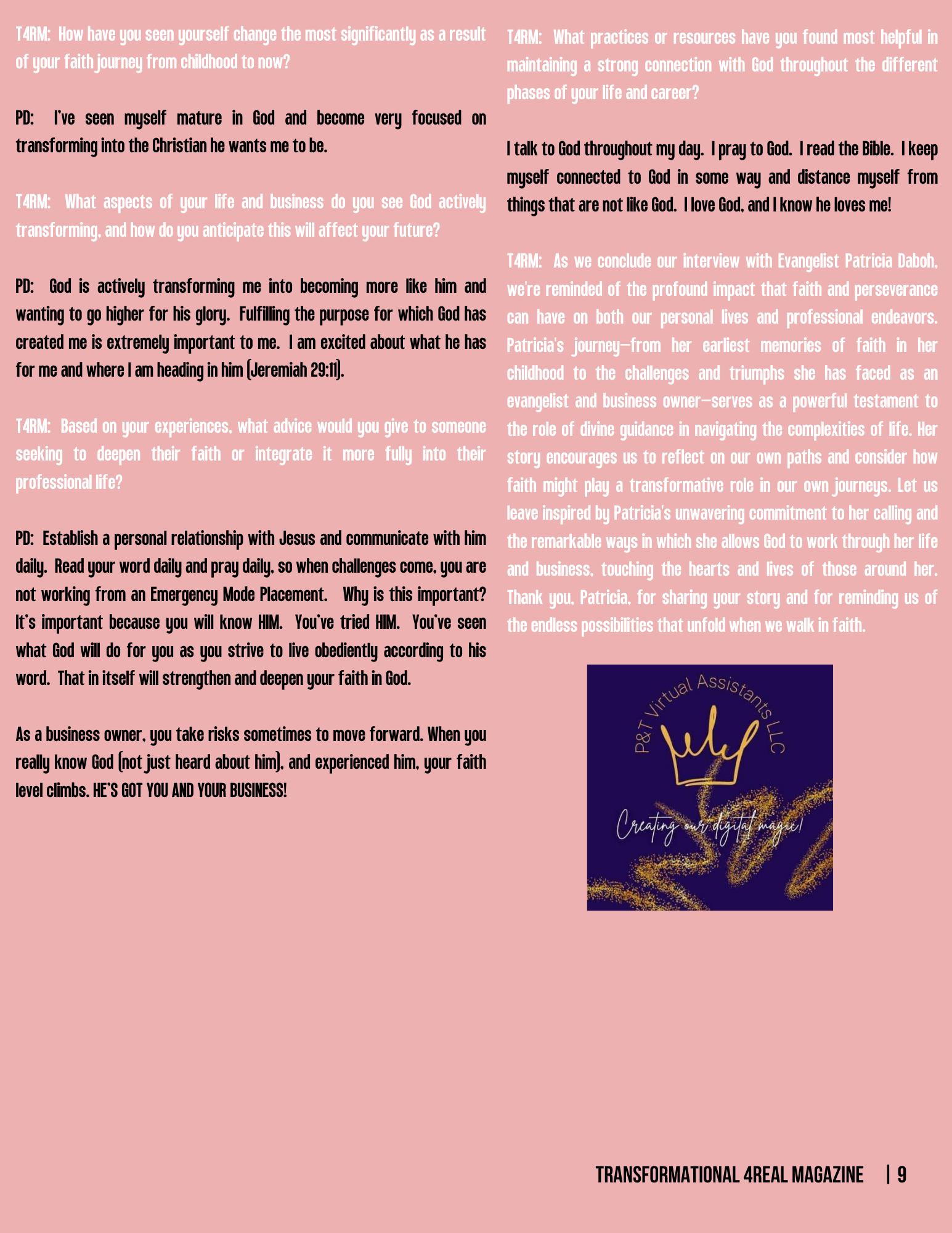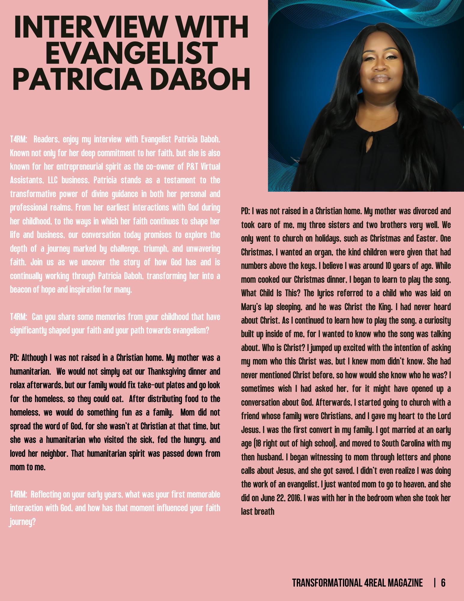 Transformational 4Real Magazine is your companion in discovering the boundless possibilities of a life transformed by the Word of God. It's not just about reading Scripture but living it out in every moment, decision, and relationship. Join us on this journey of faith, transformation, and real-life application of God’s Word, and experience the unparalleled joy of a life lived in true alignment with His promises and purposes.