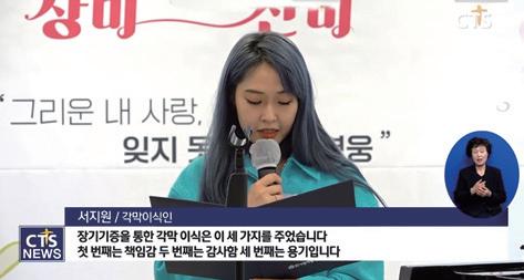각막을 이식받은 서지원 씨는 이날 이식인 대표로 나서서 장기