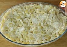 6. Mezclar las patatas + mezcla de bacalao y colocarlo en una fuente (apta para el horno) previamente engrasada con mantequilla.