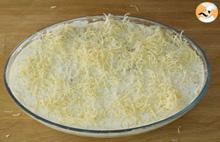 7. Verter la nata por encima y espolvorear el queso rallado.