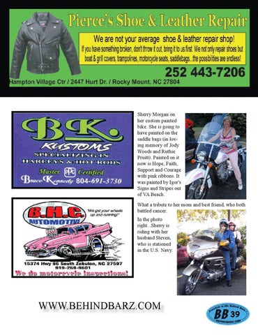 Sherry Morgan on her custom painted bike. She is going to have painted on the saddle bags (in loving memory of Jody Woods and Ruthie Pruitt). Painted on it now is Hope, Faith, Support and Courage with pink ribbons. It was painted by Igor's Signs and Stripes out of VA Beach. What a tribute to her mom and best friend, who both battled cancer.