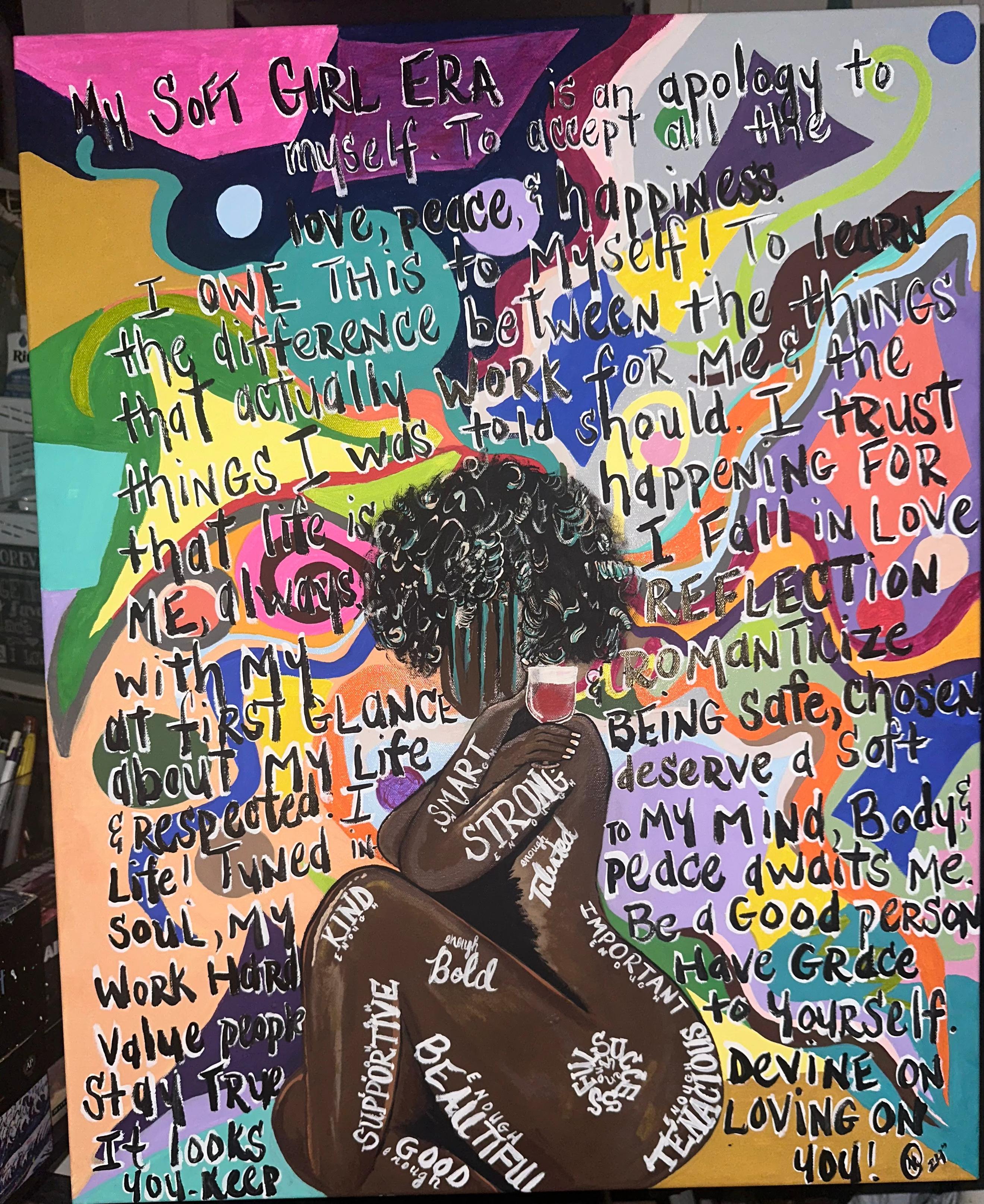 “My Mother is my motivation. After losing her, I lost a major part of me that I know will never be replenished so at least go harder than yesterday meanwhile having grace for myself. I push pain through paint, not painting from a dark place because I accept the reality I am still here so show the world who you are, is my mentality My Mother was beautiful inside and out and raised me just that way. ”