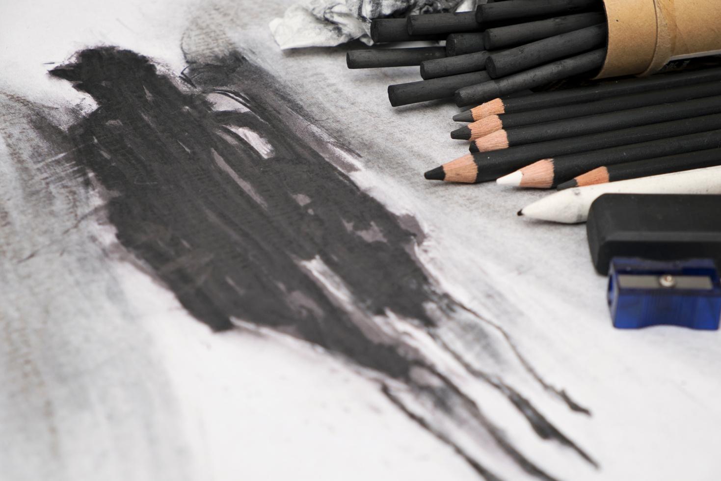 Lines and shapes coming together to form images using tools such as pens and ink.
