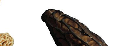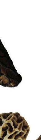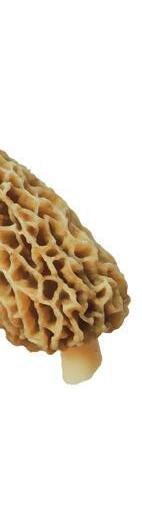 There are several types of common (true) morels in Door County. The black one is o en the rst to appear in late April and is frequently seen near conifer trees. It tends to have a more pointed top than the yellow variety. Some experts say that this species may cause digestive upset when eaten.