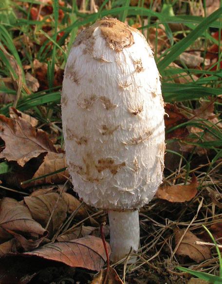 That’s why September and October seem to be the best times to nd the greatest variety of mushrooms. Shaggy manes, Coprinus comatus (ko-PRY-nus ko-MAY-tus), are one of the easiest to identify. They grow in lawns and along roadsides from late August into October. Once thought to be , they are actually quite edible when thoroughly cooked. They give o a lot of water when fried; then the heat can be turned to low to allow them to brown slowly until they’re almost crisp.