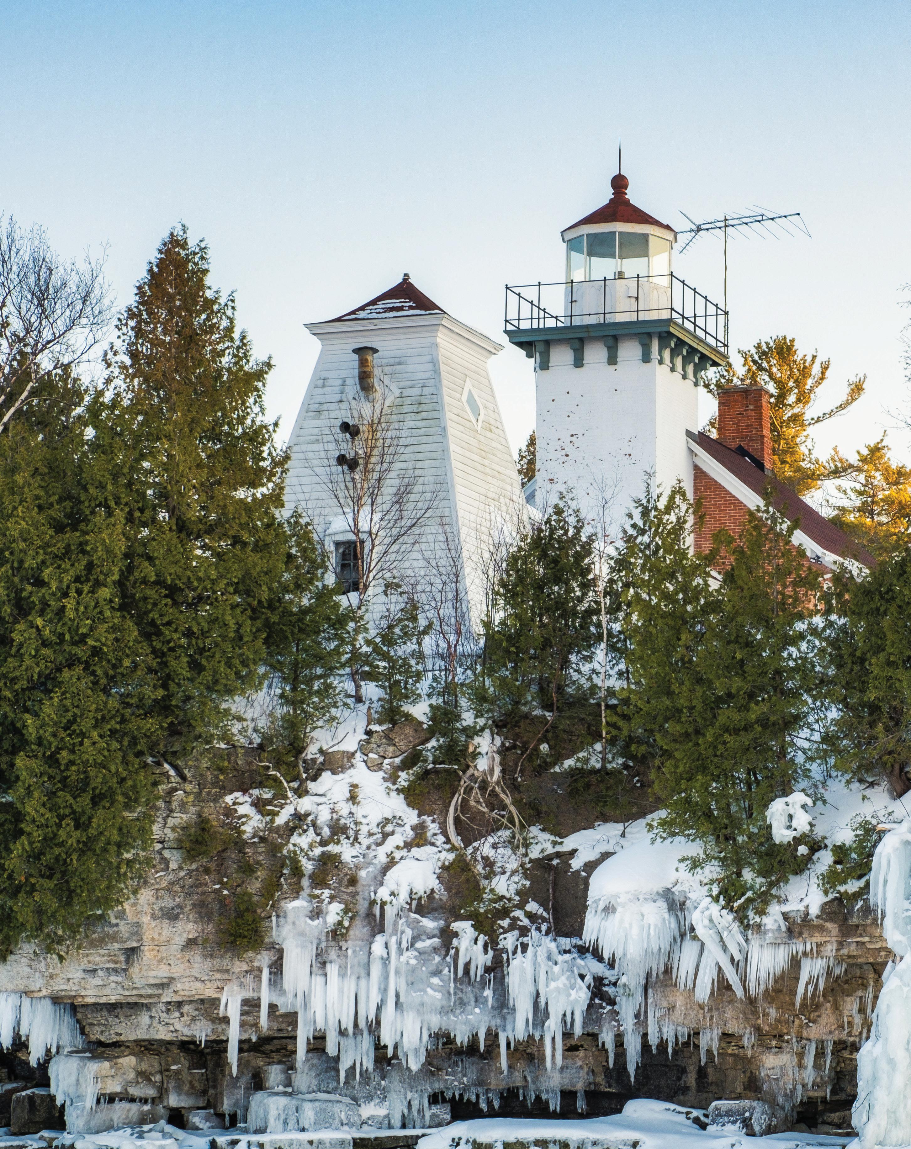 The Sherwood Point Lighthouse in Sturgeon Bay, as seen from the ice.