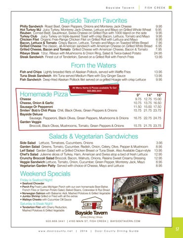 9 2 0 . 8 6 8 . 3 4 4 1 | 416 0 M A I N S T, F I S H C R E E K | B AY S I D E TAV E R N . C O M