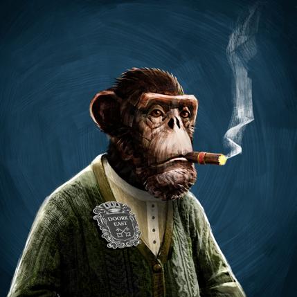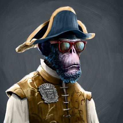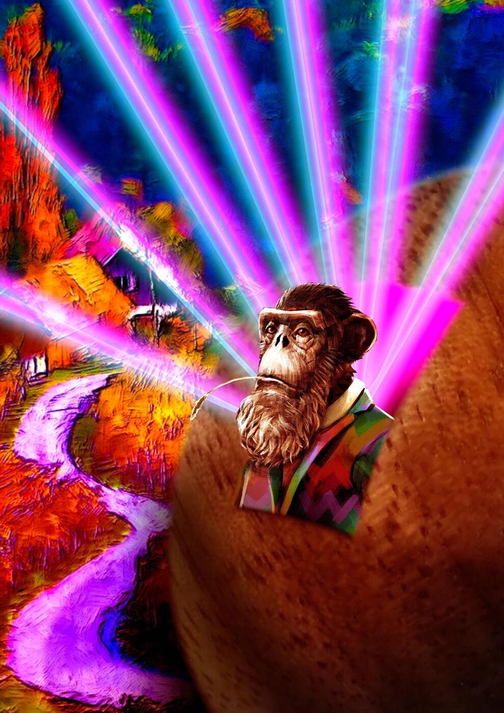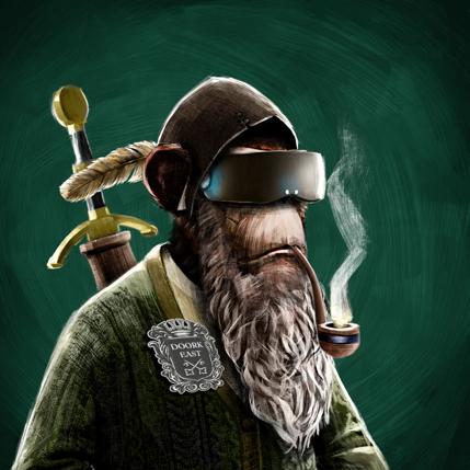 A fine wine connoisseur, his favourite pastime is to explore new territories to plant his vineyards. He has developed an advanced system of artificial intelligence that probes the soil for ideal conditions. He receives automatic reports on the left lens of his VR headset. His right lens remains permanently connected to the multiple Discord channels of The Ape Society.