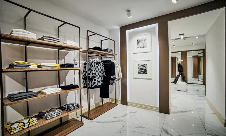 I materiali utilizzati si fondono per accogliere al meglio la shopping experience. Dagli arredi in legno di noce ai complementi in ferro bronzato, tutti si fonde per dar vita ad un’eleganza mai banale.