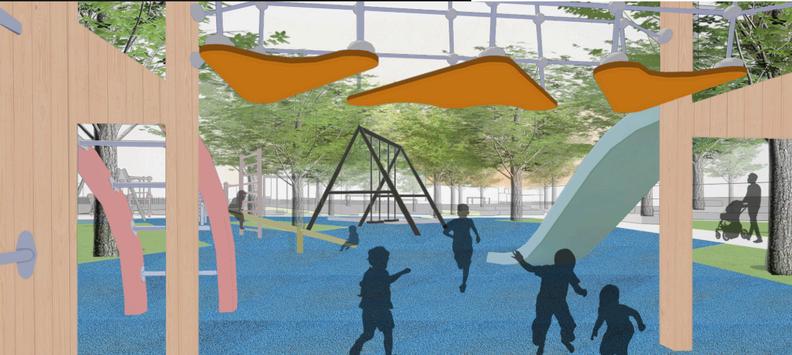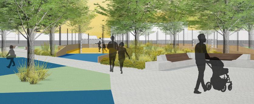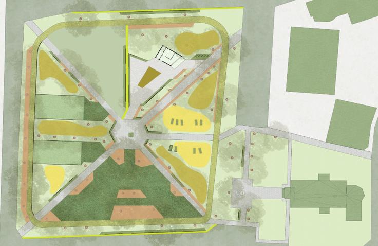 In designing the school, we wanted to take advantage of our location and create several smaller units instead of one large building. This way, separate buildings were created for the primary-, middle-, and high school students These are connected by a large internal courtyard, which can be accessed from the main building It includes an auditorium, a dining area, and rooms for dance, music, and drama Not far from the community building, there is also a sports hall, which is complemented by a sunken outdoor sports field. We placed smaller relaxation areas throughout the school's outdoor spaces, which the children can access via different pathways Here, they can read, chat, or even engage in community games