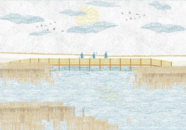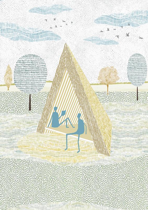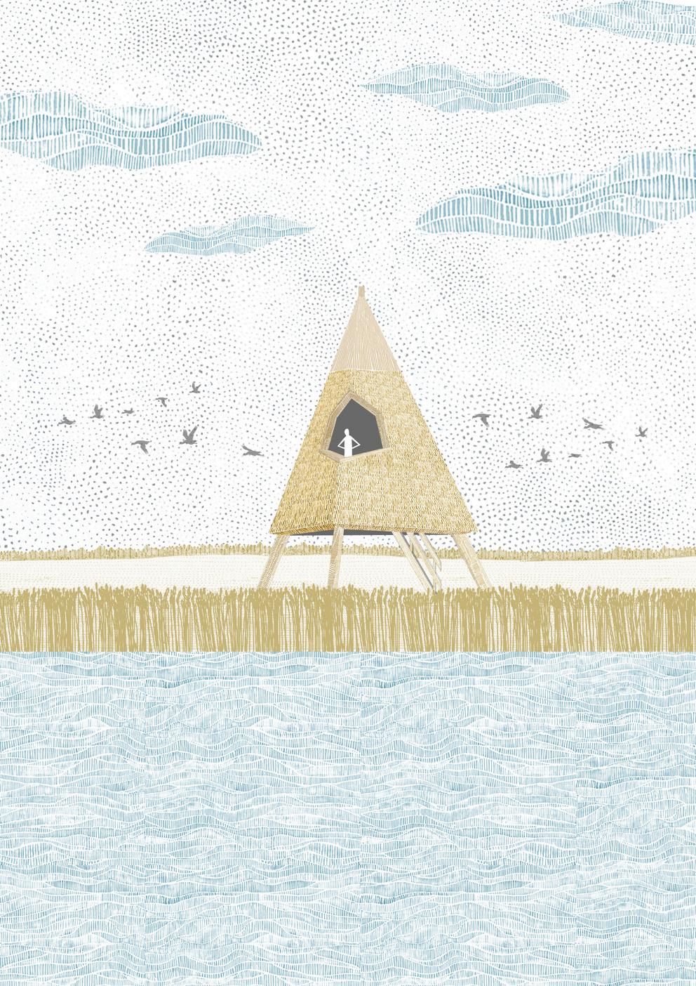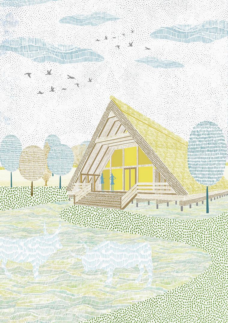We used the rendered 3D images from Archicad as a base. The added details and shading was done in Procreate by hand.