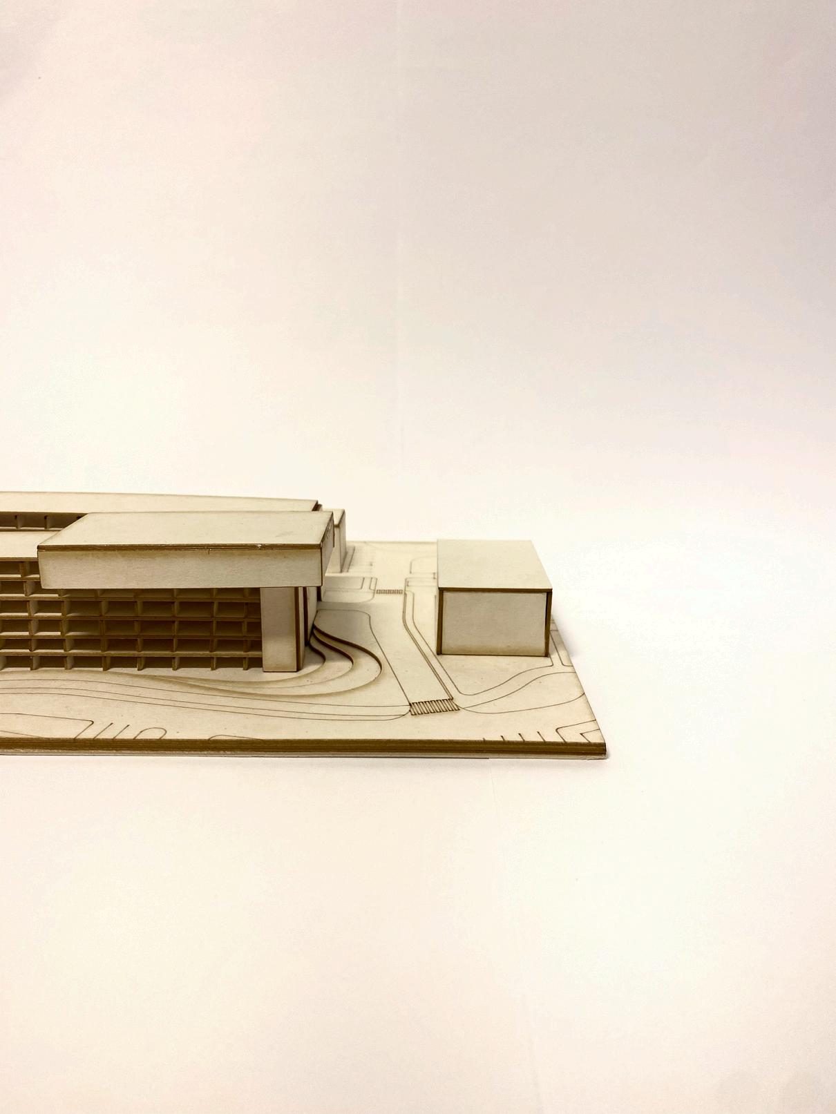 For the end of the 6th semester, my design task involved planning a water sports and leisure center in Mosonmagyaróvár, Hungary. The longitudinal layout was shaped by the characteristics of the site. I broke the wavy riverbank with a regular rectangular prism system, positioned perpendicular to the flow direction This was partly because the buildings served as spatial dividers in addition to their function, opening up different zones for visitors and people who train here Depending on their function, the buildings formed various coveredopen spaces, each created by "cutting out" sections from the prisms. This was greatly influenced by both the function and the space requirements.