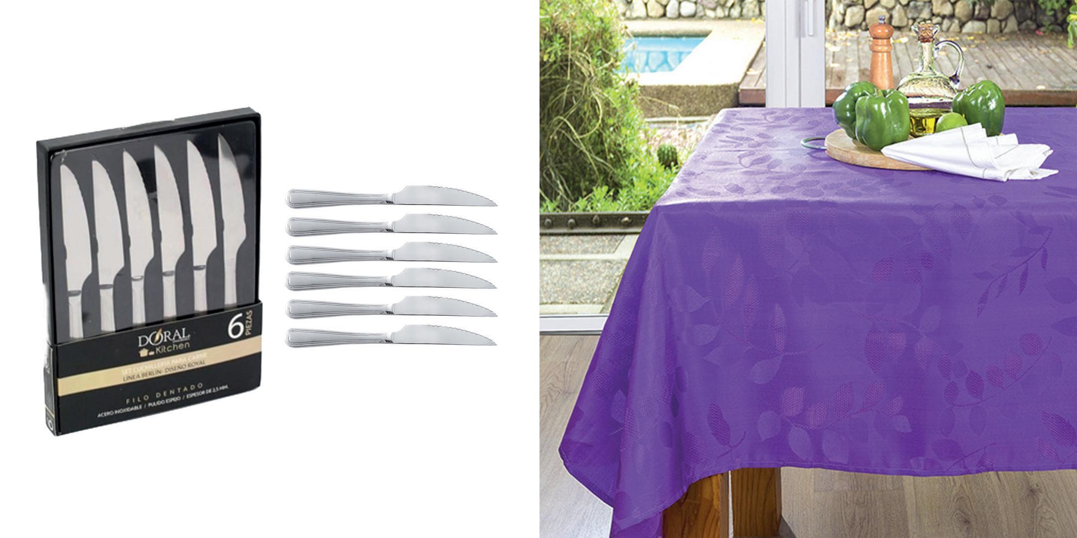 Juego Cuchillos Carne 6 Piezas - Gift Box - Línea Berlín + Mantel Texturizado Silver Rectangular 1,50 X 2,10 cms