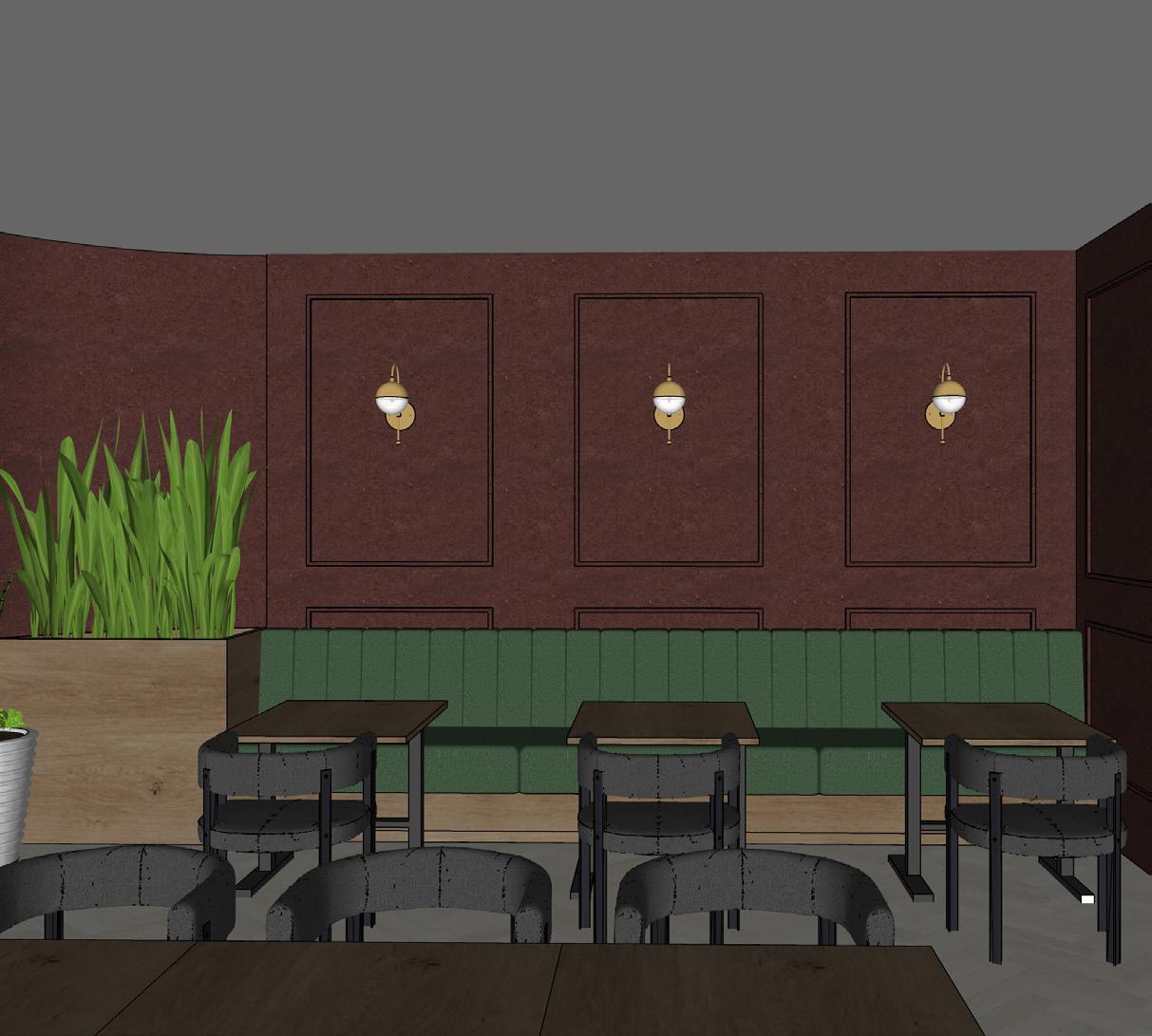 First stage of design started with an earthy tone because she wanted her restaurant to reflect her personality ‘down to earth’, clean, minimalistic, natural, with a pop of colour, because those are all the things she puts into her food.