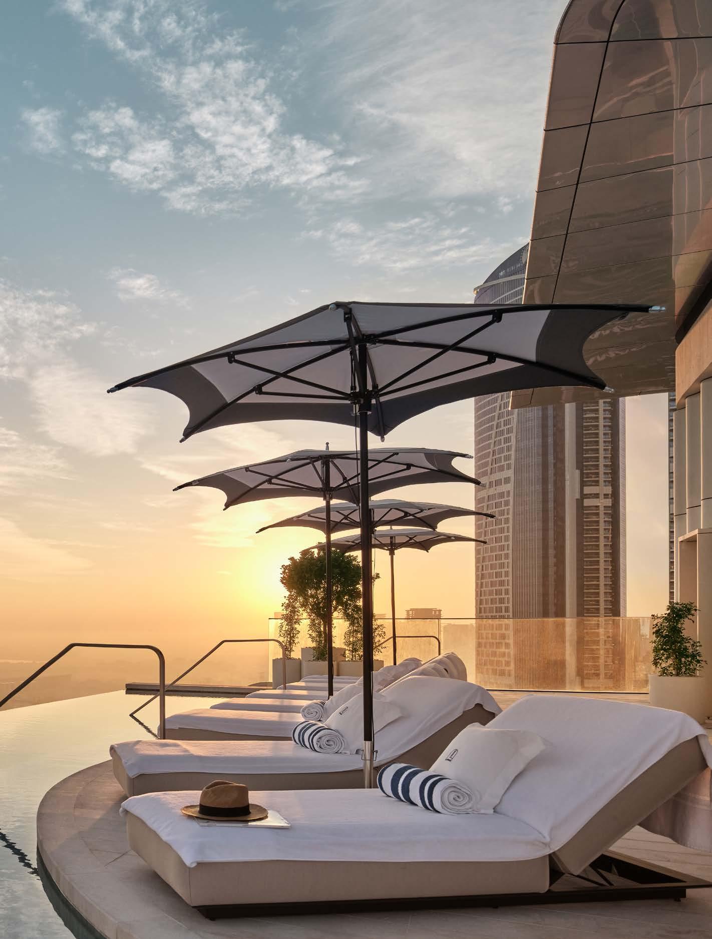 moments. At over 100 metres high, the Sky Amenities Deck is an elevated sanctuary with an infinity pool, double-height gym, and yoga studio.