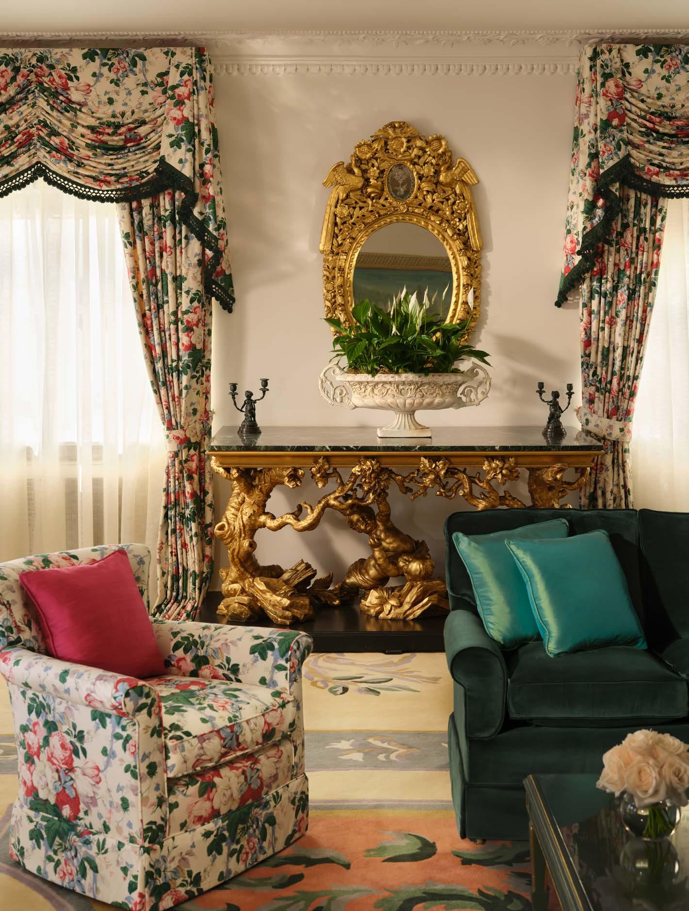 The Dorchester’s Oliver Messel Suite has been meticulously restored, honouring the theatrical spirit of the 1953 original. Bespoke silk fabrics, gilded mouldings, have been revived by skilled artisans.